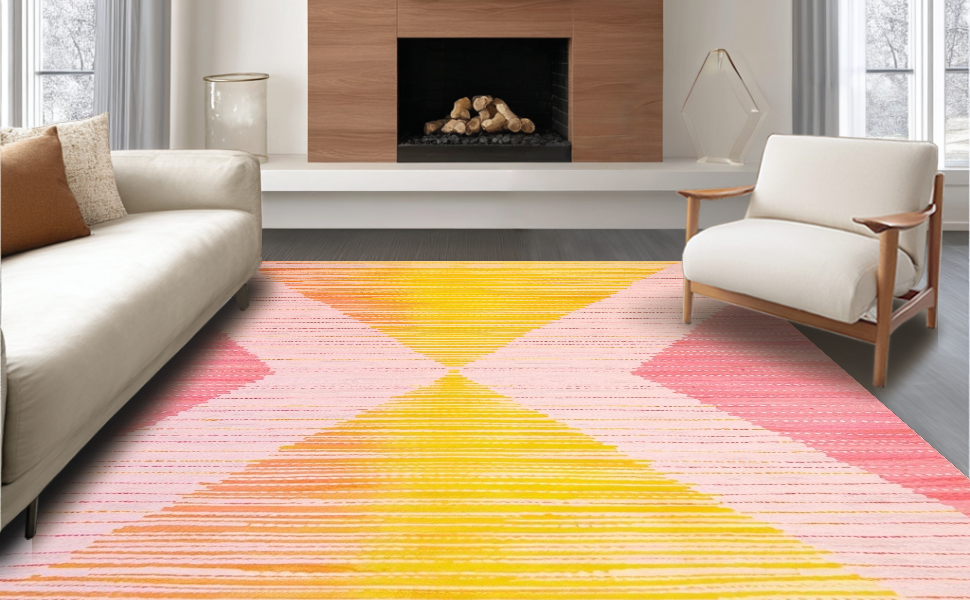 Ultra Soft Area Rug, Non Slip, Stain Resistant, Washable Area Rugs for Living Room, Bedroom, Contemporary Soft Ombre Aesthetic(Yellow) Overview: