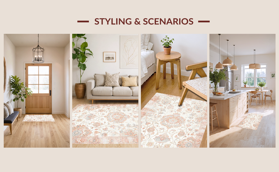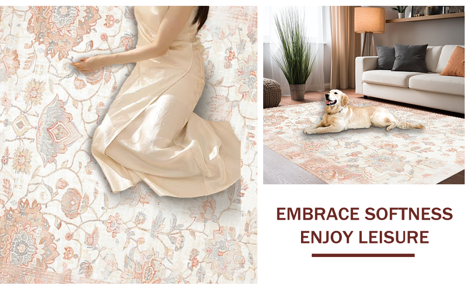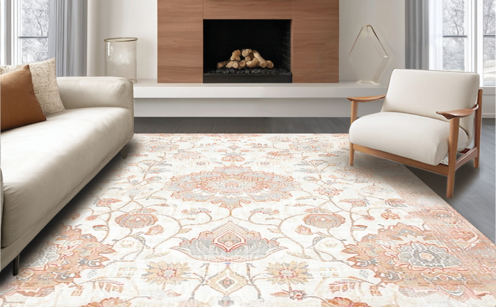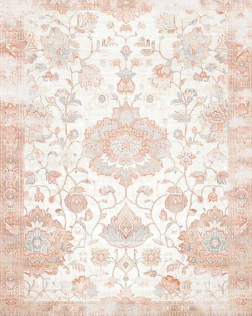 Ultra Soft Area Rug, Non Slip, Stain Resistant, Washable Area Rugs for Living Room, Bedroom, Contemporary Soft Pastel Blooms(Ivory) Overview: