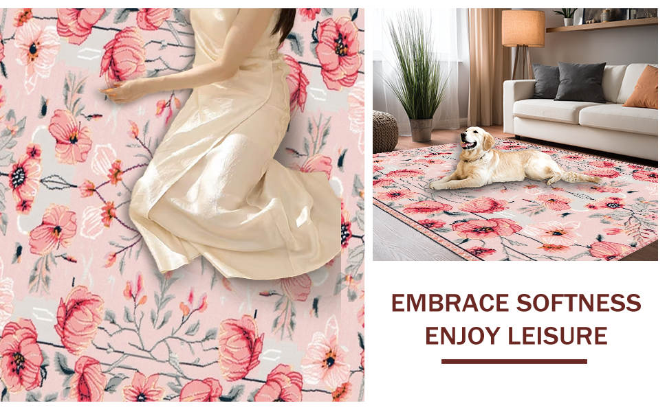 Ultra Soft Area Rug, Non Slip, Stain Resistant, Washable Area Rugs for Living Room, Bedroom, Contemporary Soft Petal Design(Pink) Overview: