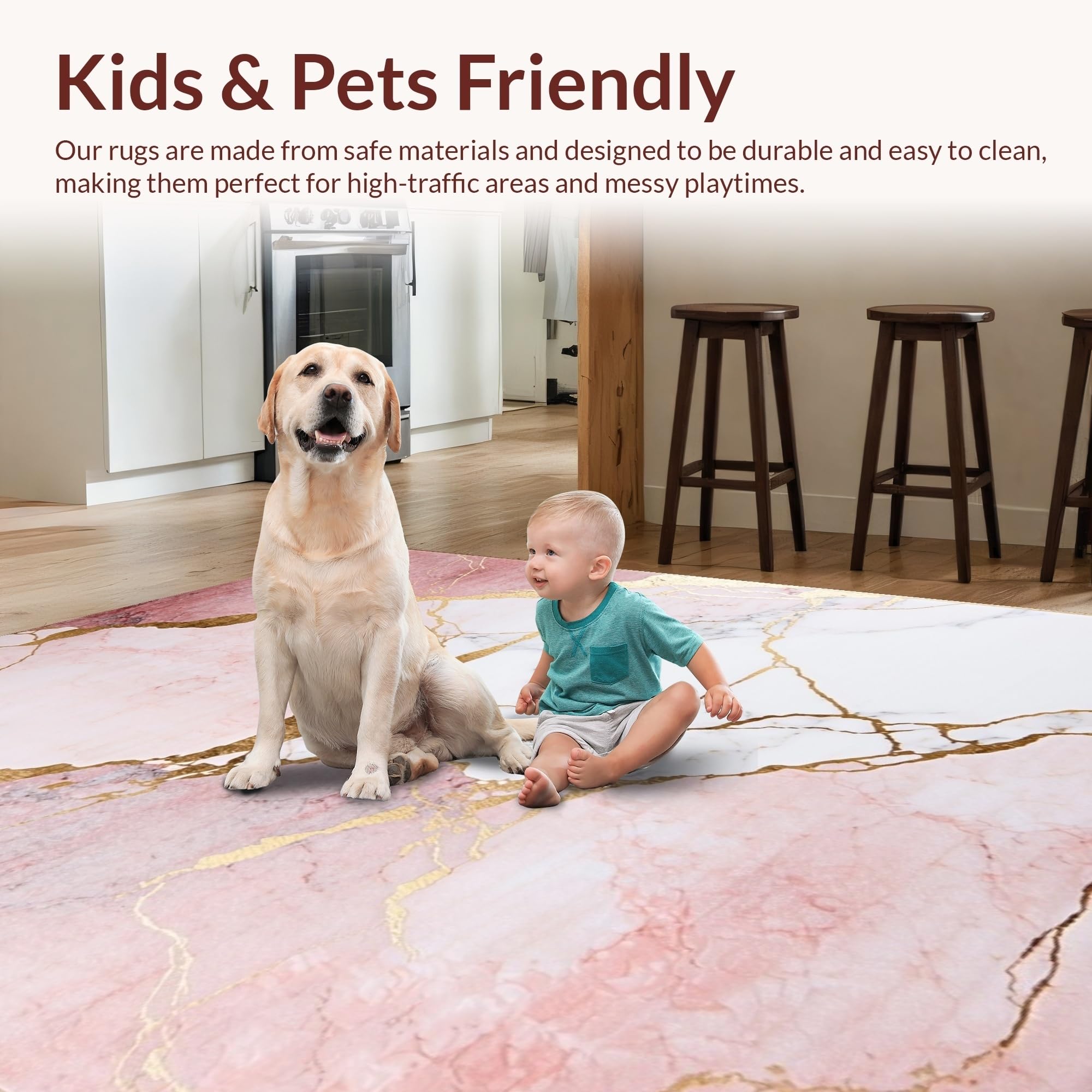 Ultra Soft Area Rug, Non Slip, Stain Resistant, Washable Area Rugs for Living Room, Bedroom, Contemporary Soft Pink Elegance(Pink) Overview: