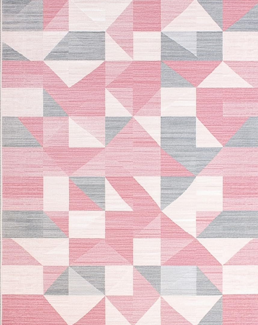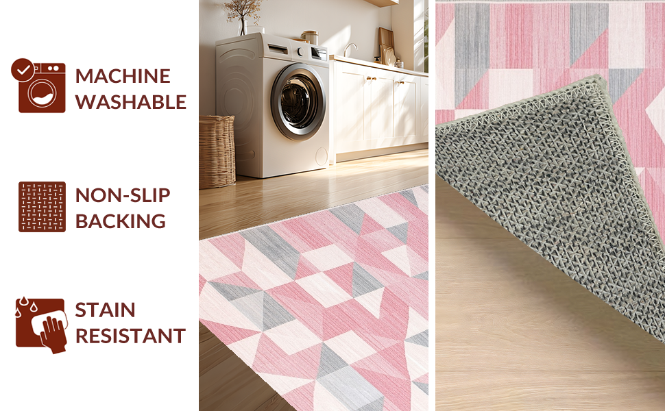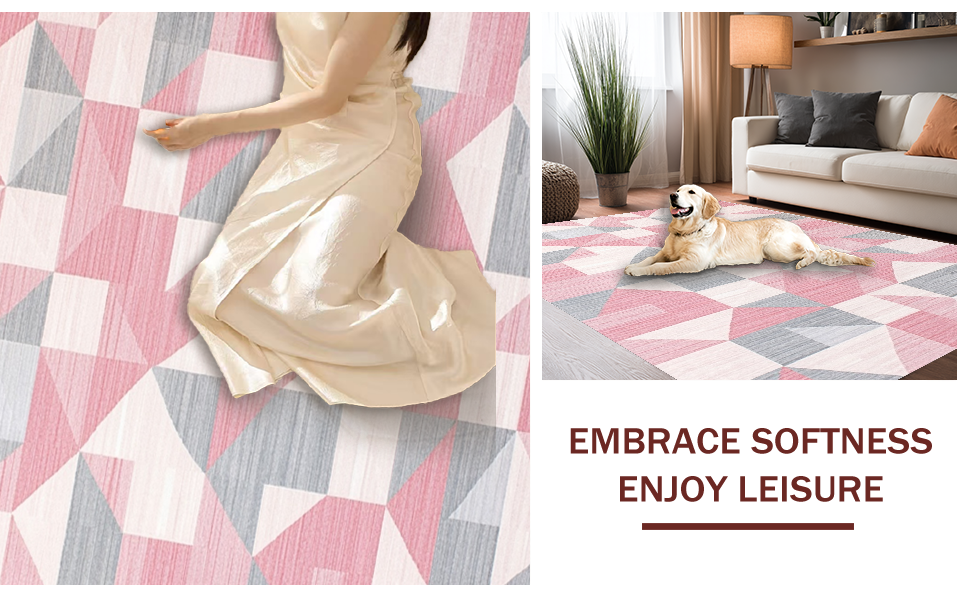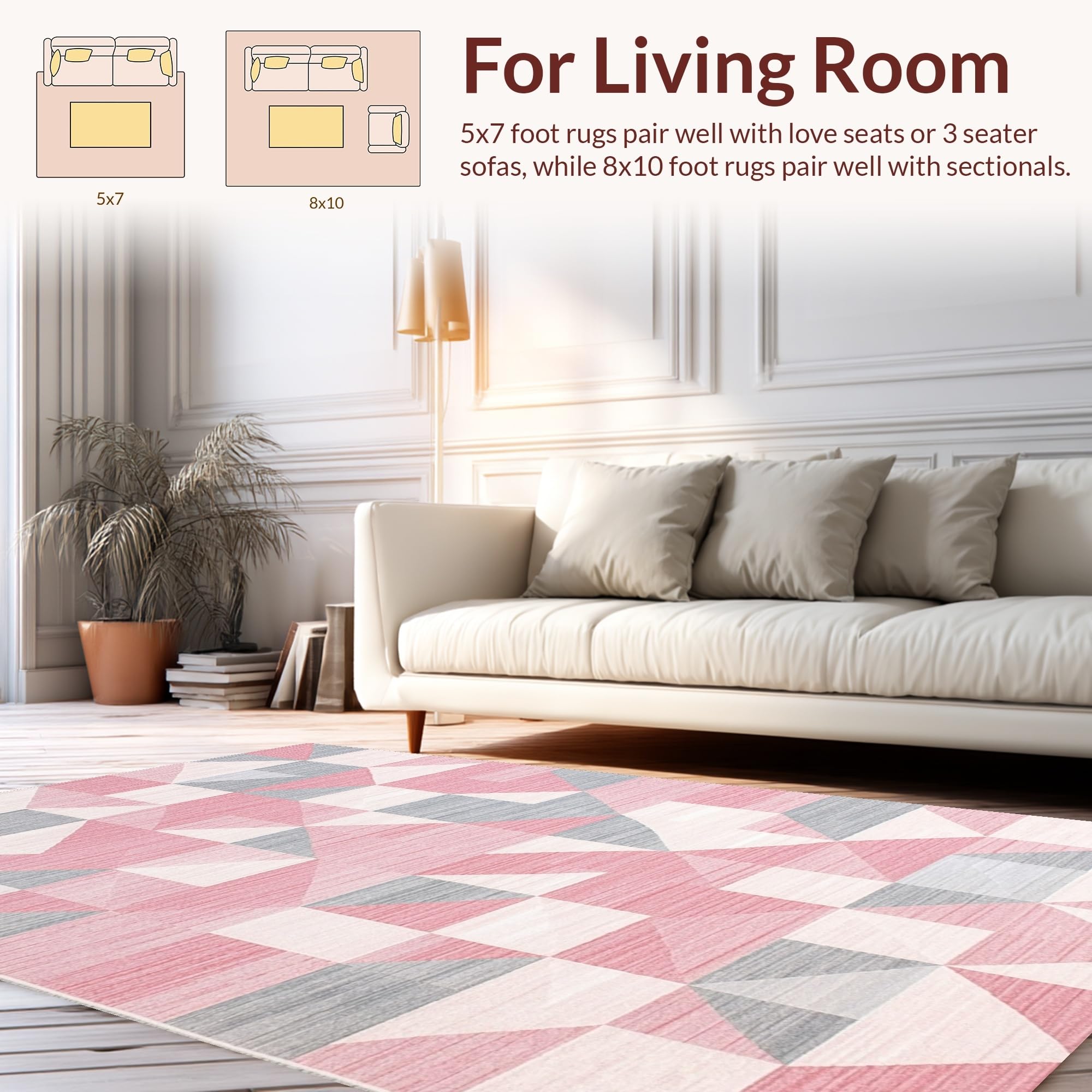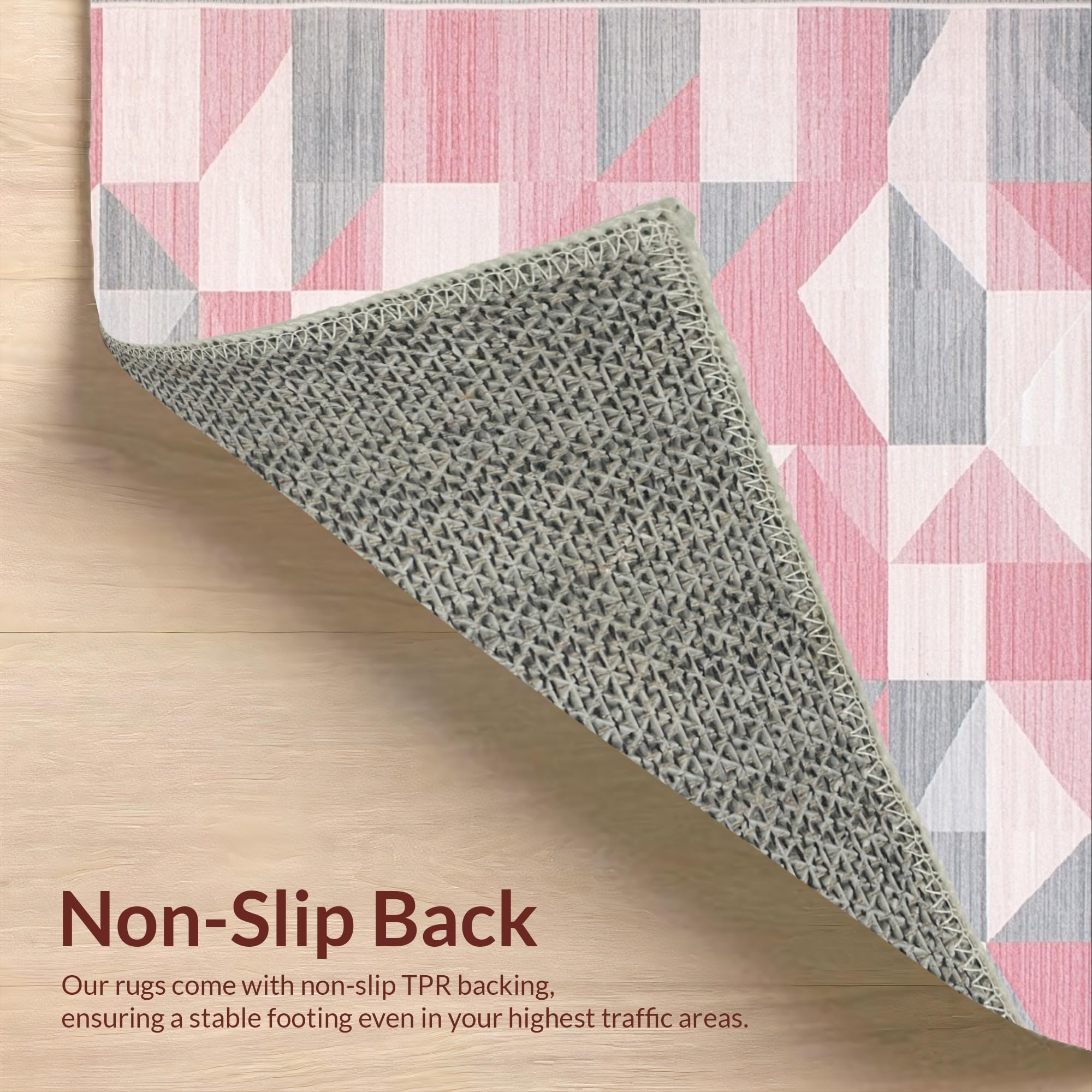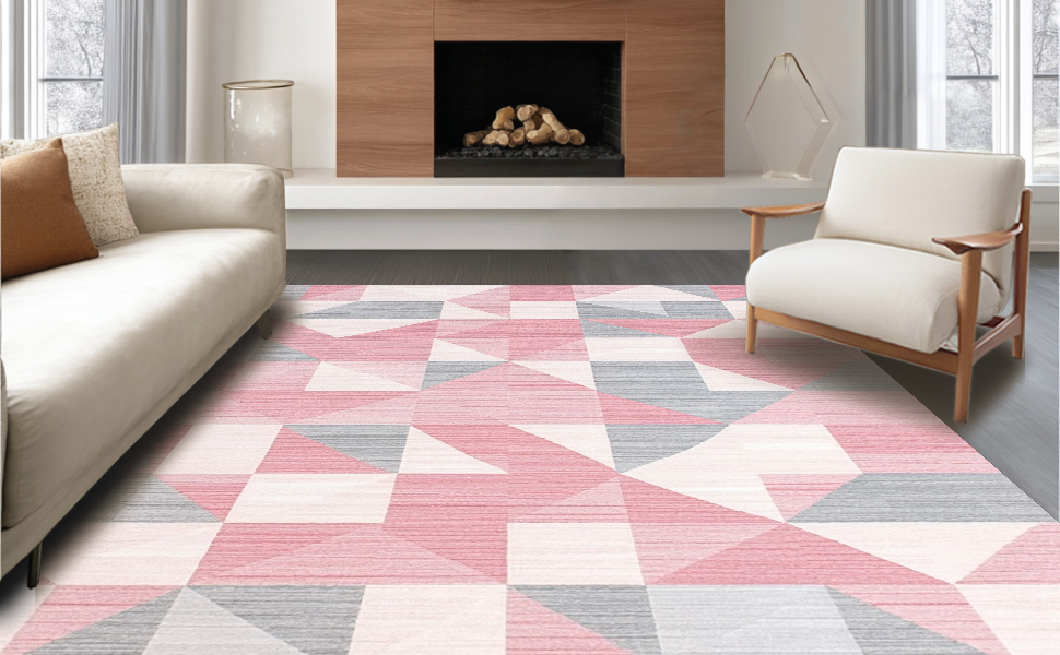 Ultra Soft Area Rug, Non Slip, Stain Resistant, Washable Area Rugs for Living Room, Bedroom, Contemporary Soft Plush Geometrics(Pink) Overview: