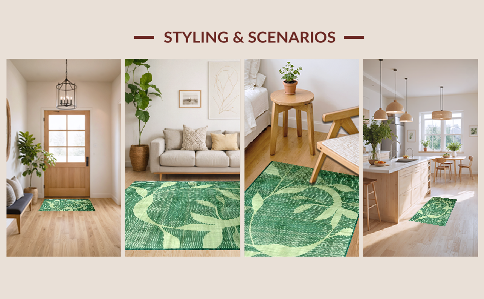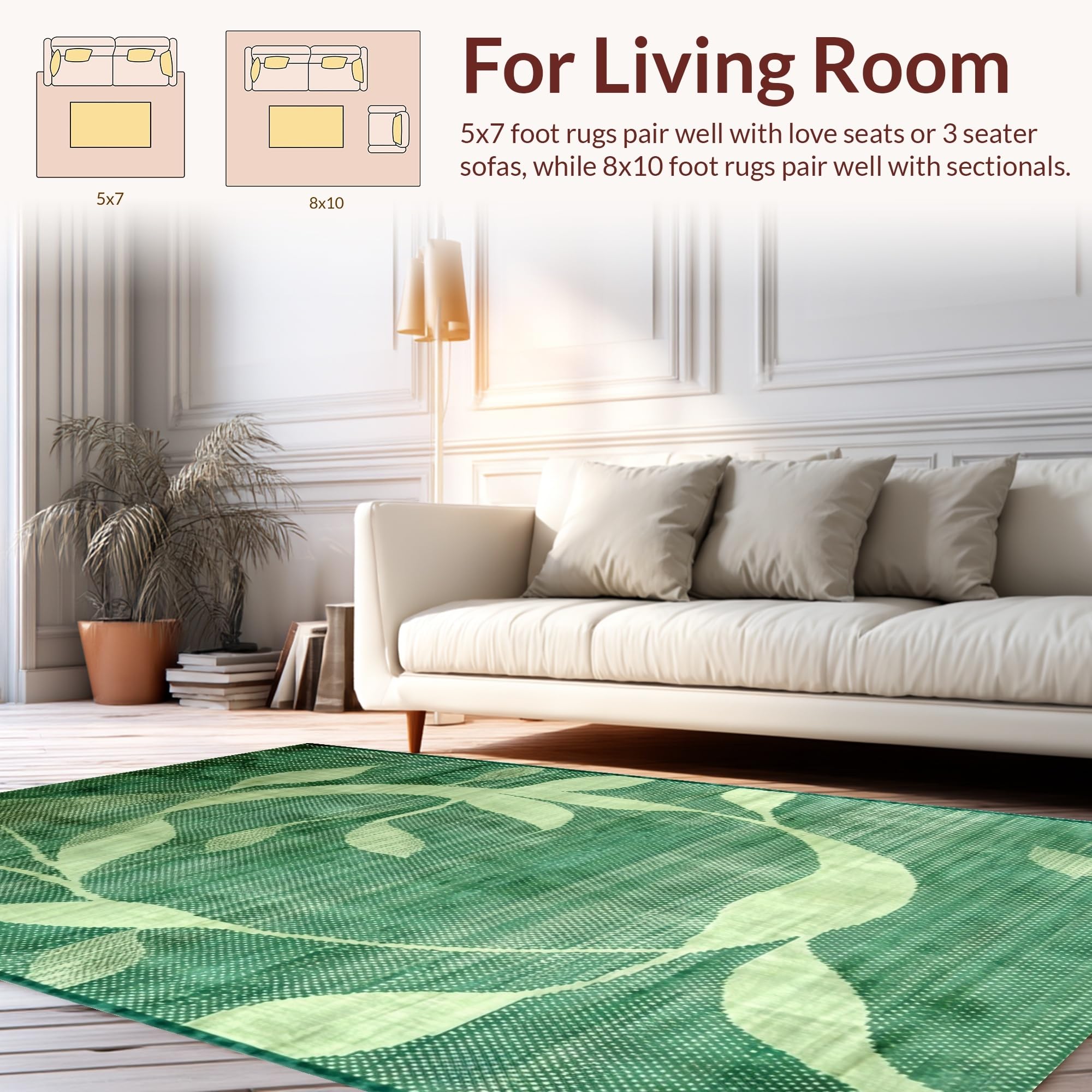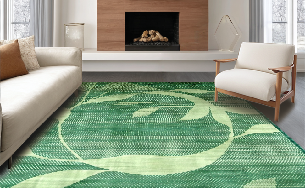 Ultra Soft Area Rug, Non Slip, Stain Resistant, Washable Area Rugs for Living Room, Bedroom, Contemporary Soft Plush Swirl Motif(Green) Overview:
