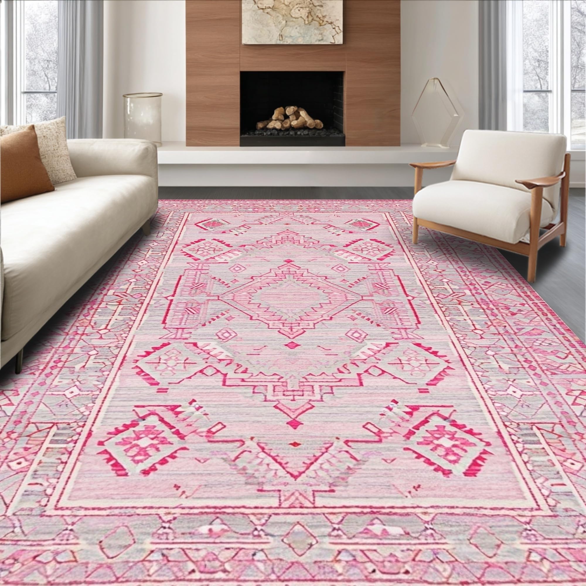 Ultra Soft Area Rug, Non Slip, Stain Resistant, Washable Area Rugs for Living Room, Bedroom, Contemporary Soft Shaggy Motif(Pink) Overview: