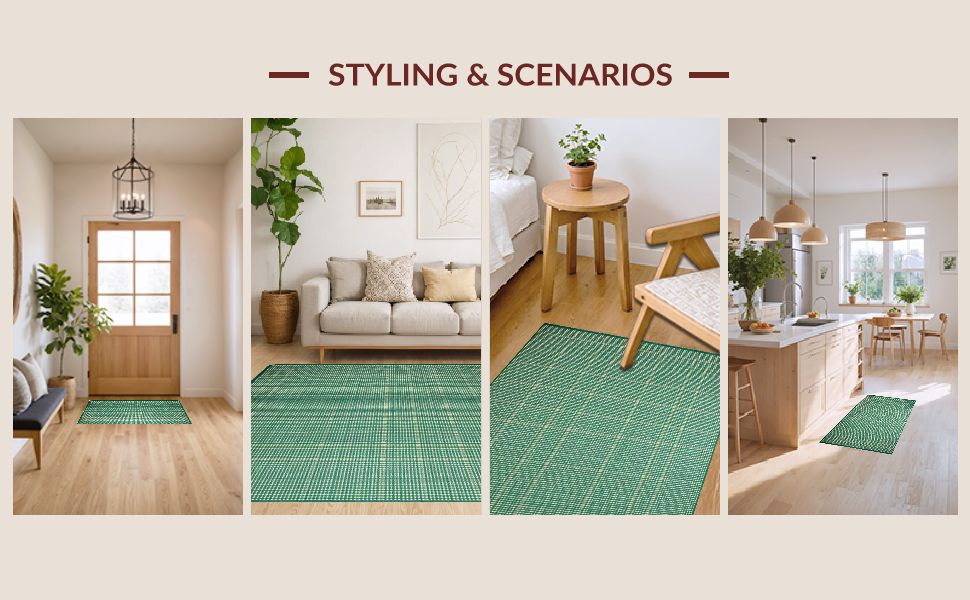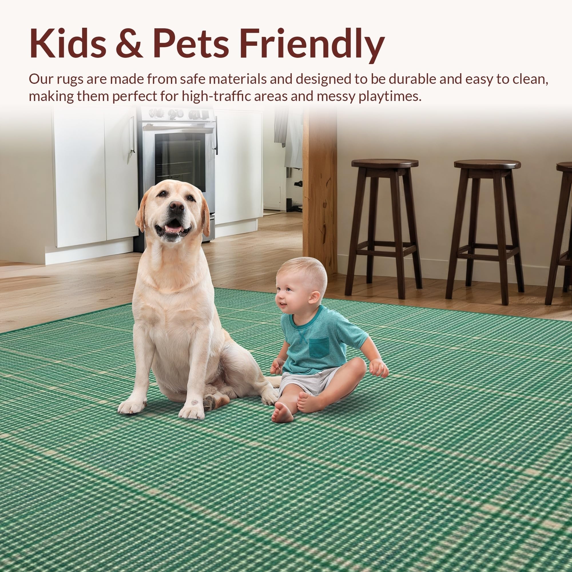 Ultra Soft Area Rug, Non Slip, Stain Resistant, Washable Area Rugs for Living Room, Bedroom, Contemporary Soft Symmetrical Design(Green) Overview: