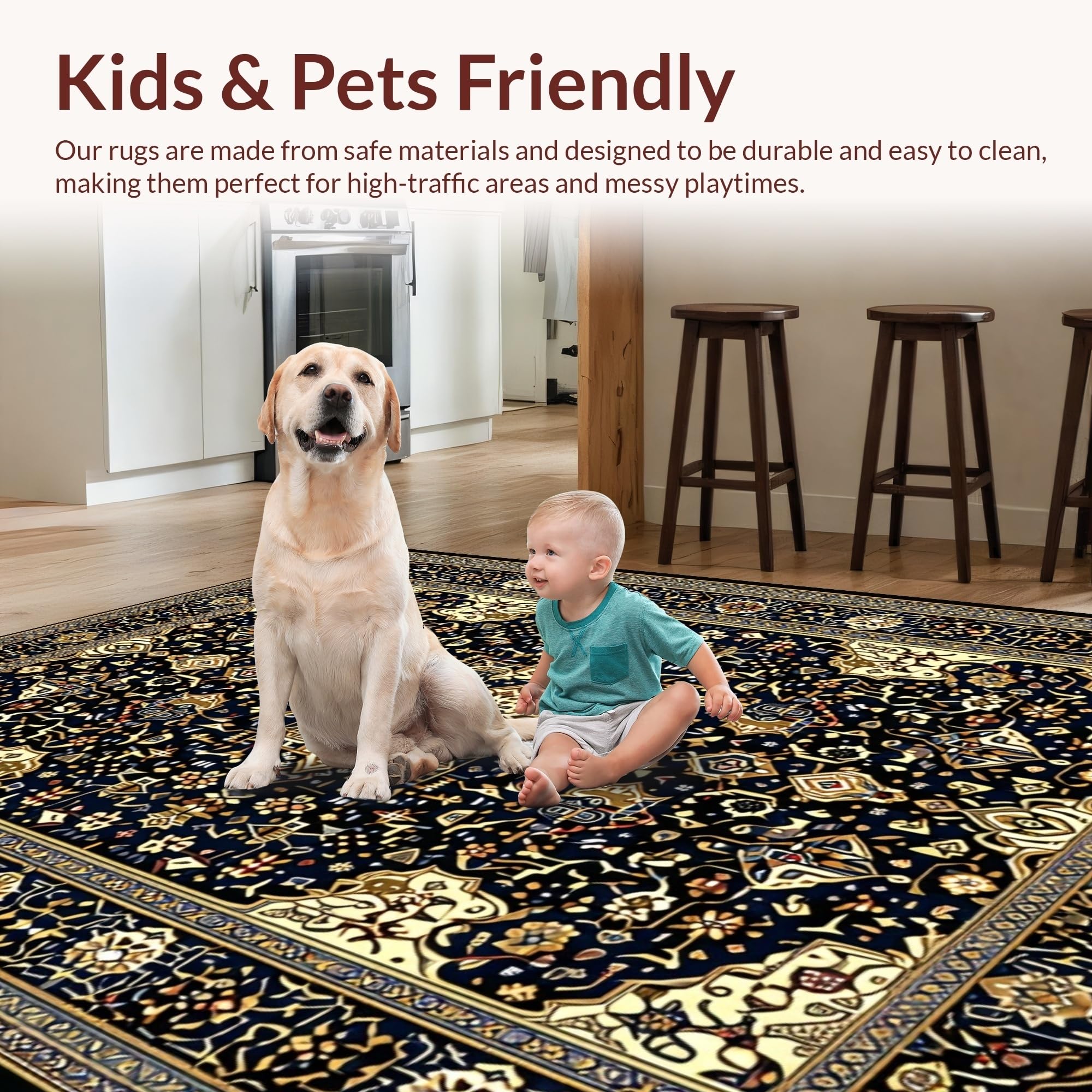 Ultra Soft Area Rug, Non Slip, Stain Resistant, Washable Area Rugs for Living Room, Bedroom, Contemporary Soft Symmetrical Elements(Blue) Overview: