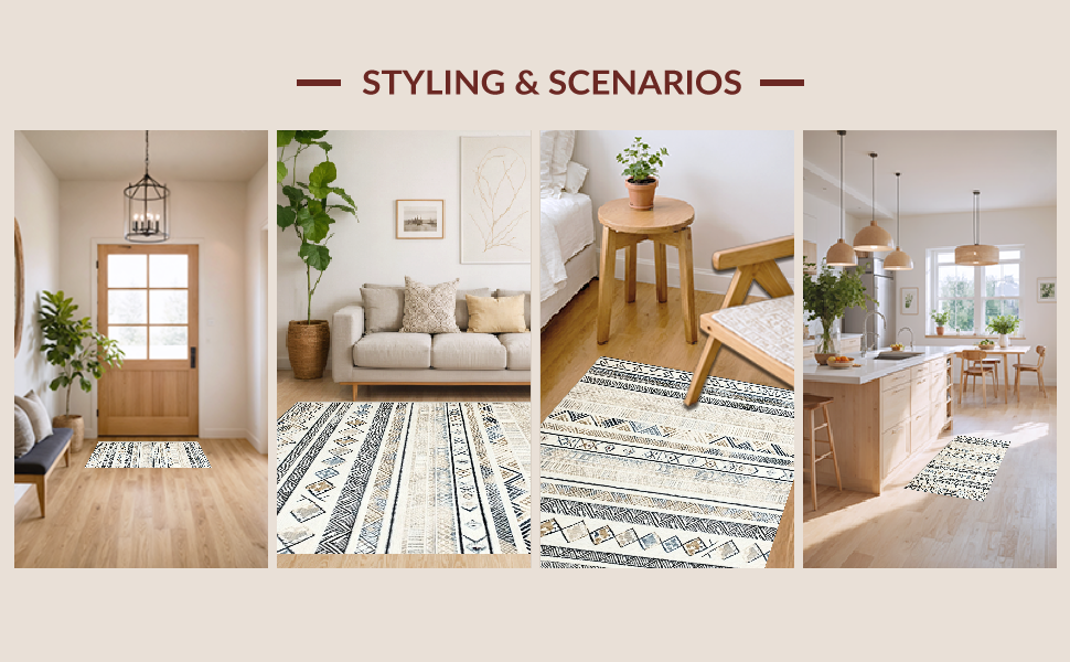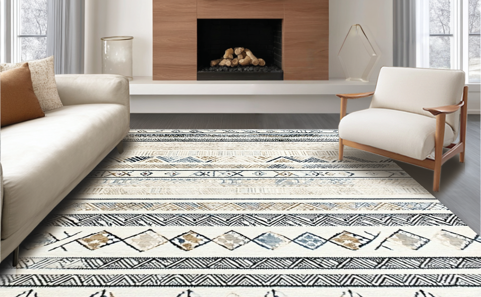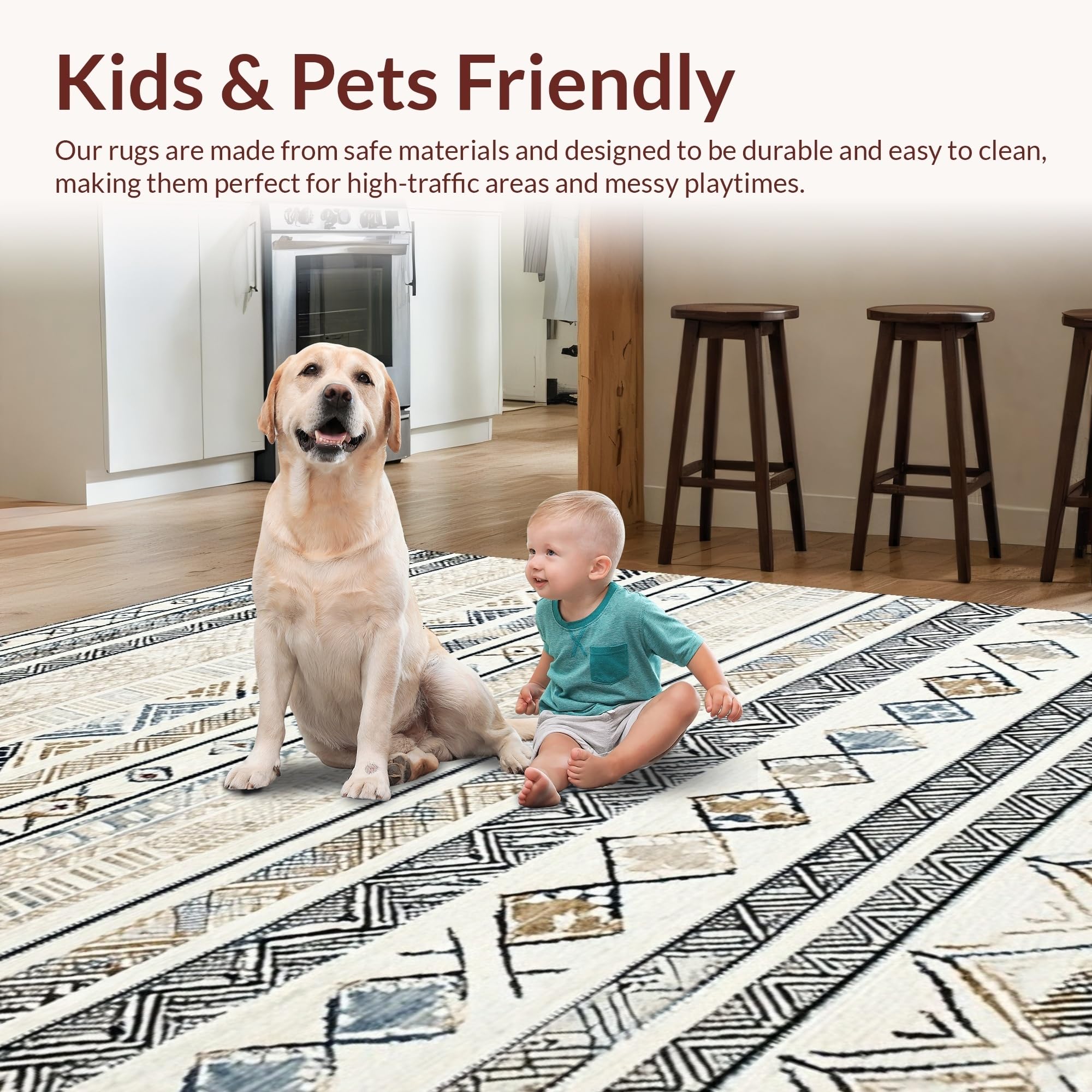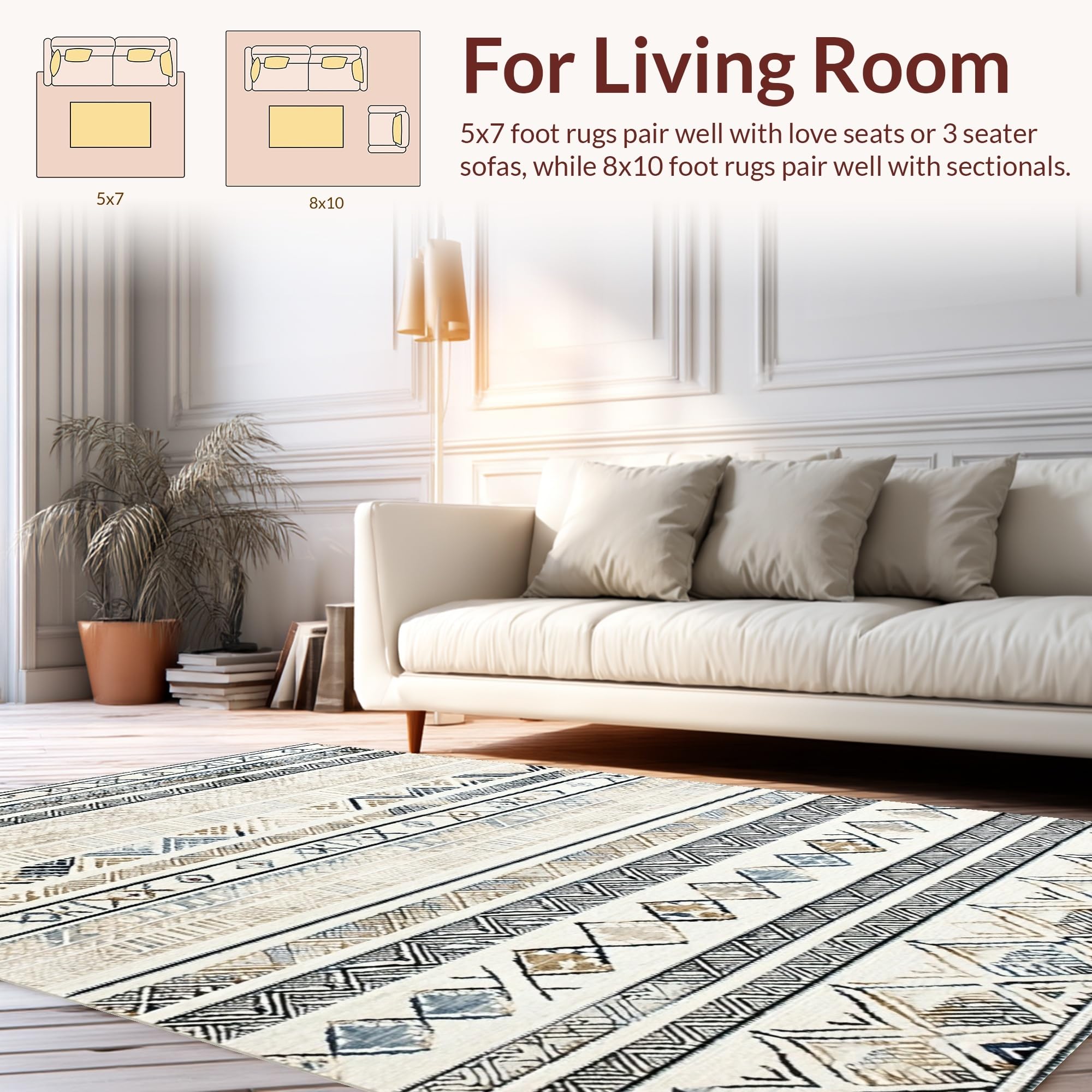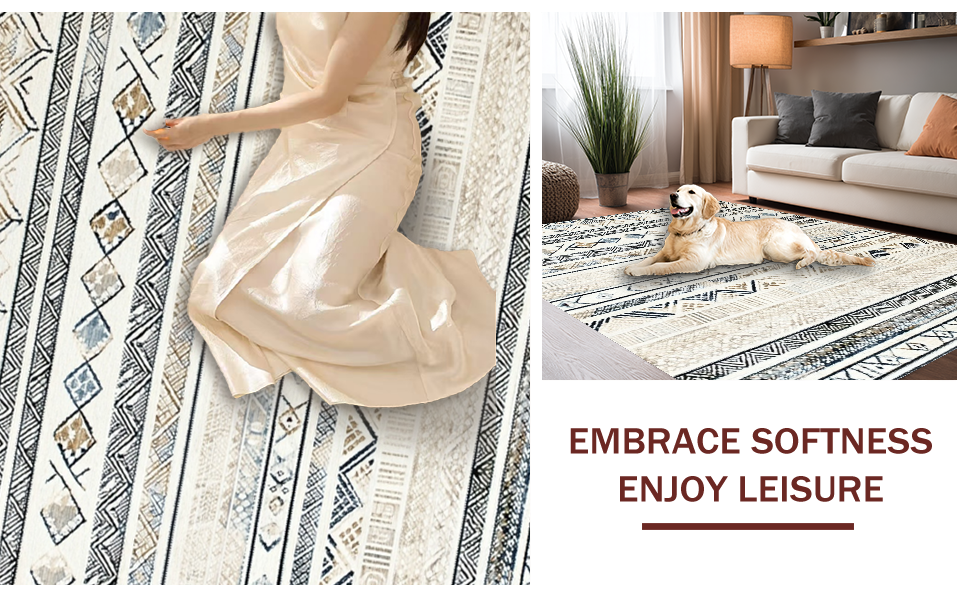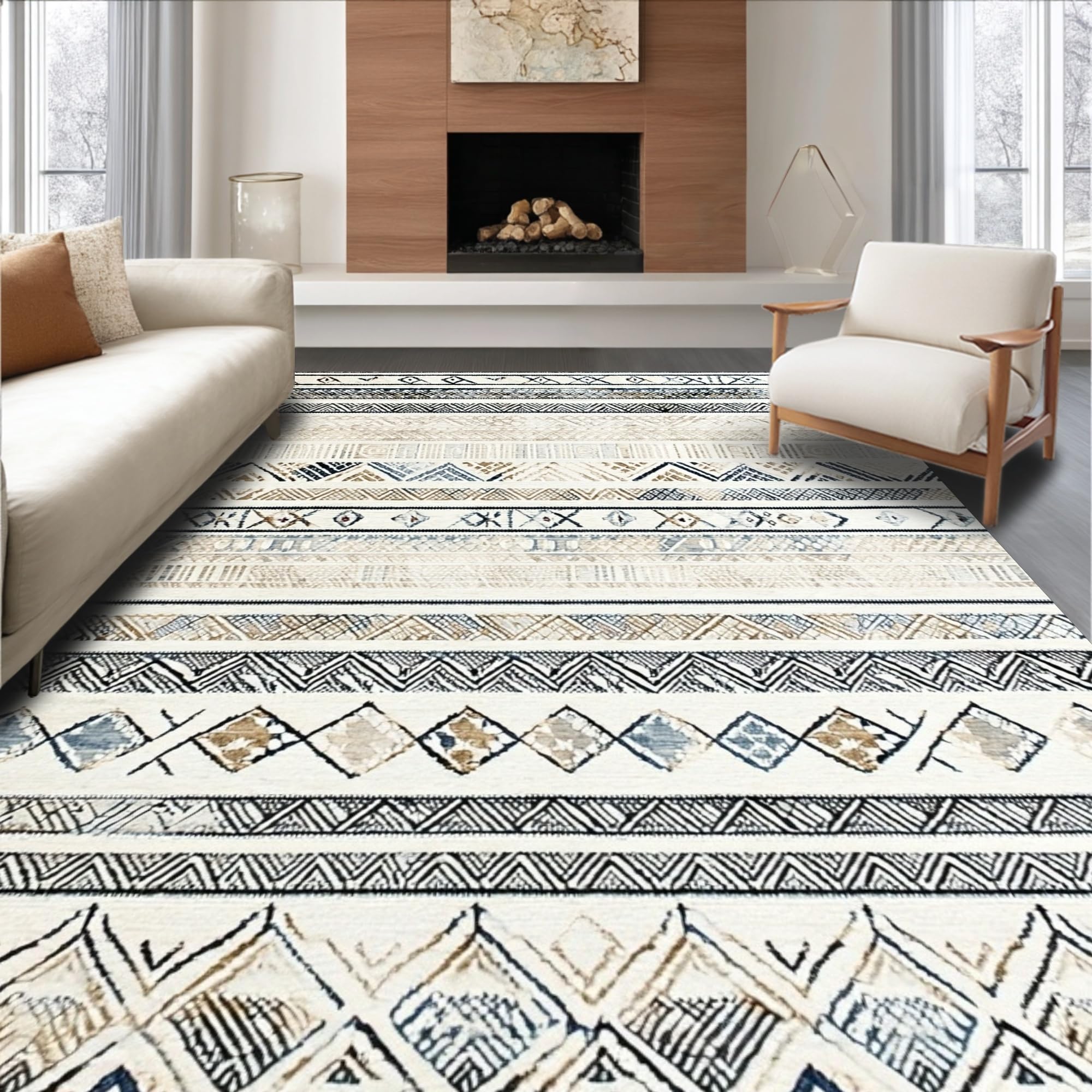 Ultra Soft Area Rug, Non Slip, Stain Resistant, Washable Area Rugs for Living Room, Bedroom, Contemporary Soft-Toned Design(Beige) Overview: