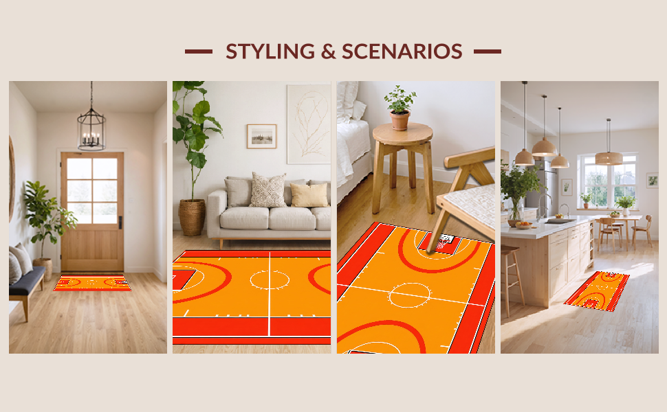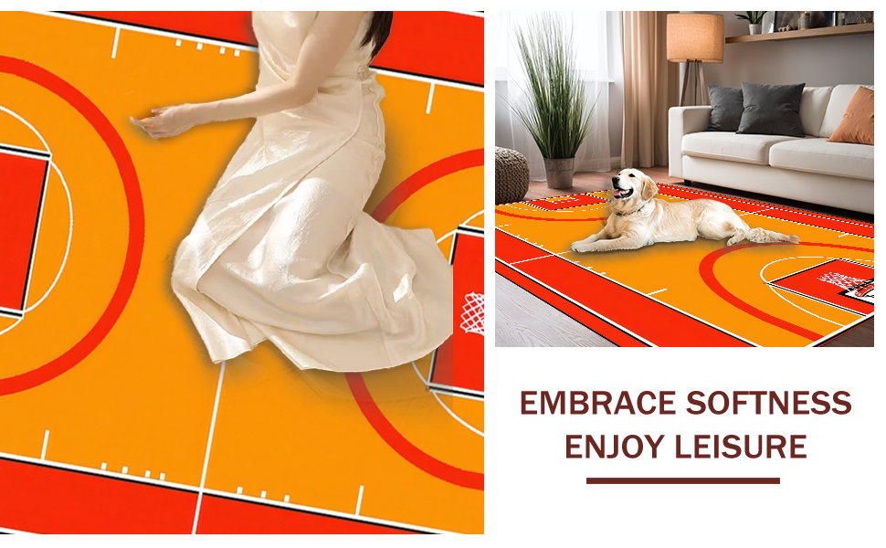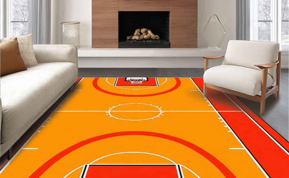 Ultra Soft Area Rug, Non Slip, Stain Resistant, Washable Area Rugs for Living Room, Bedroom, Contemporary Sports Motif Rug(Orange) Overview: