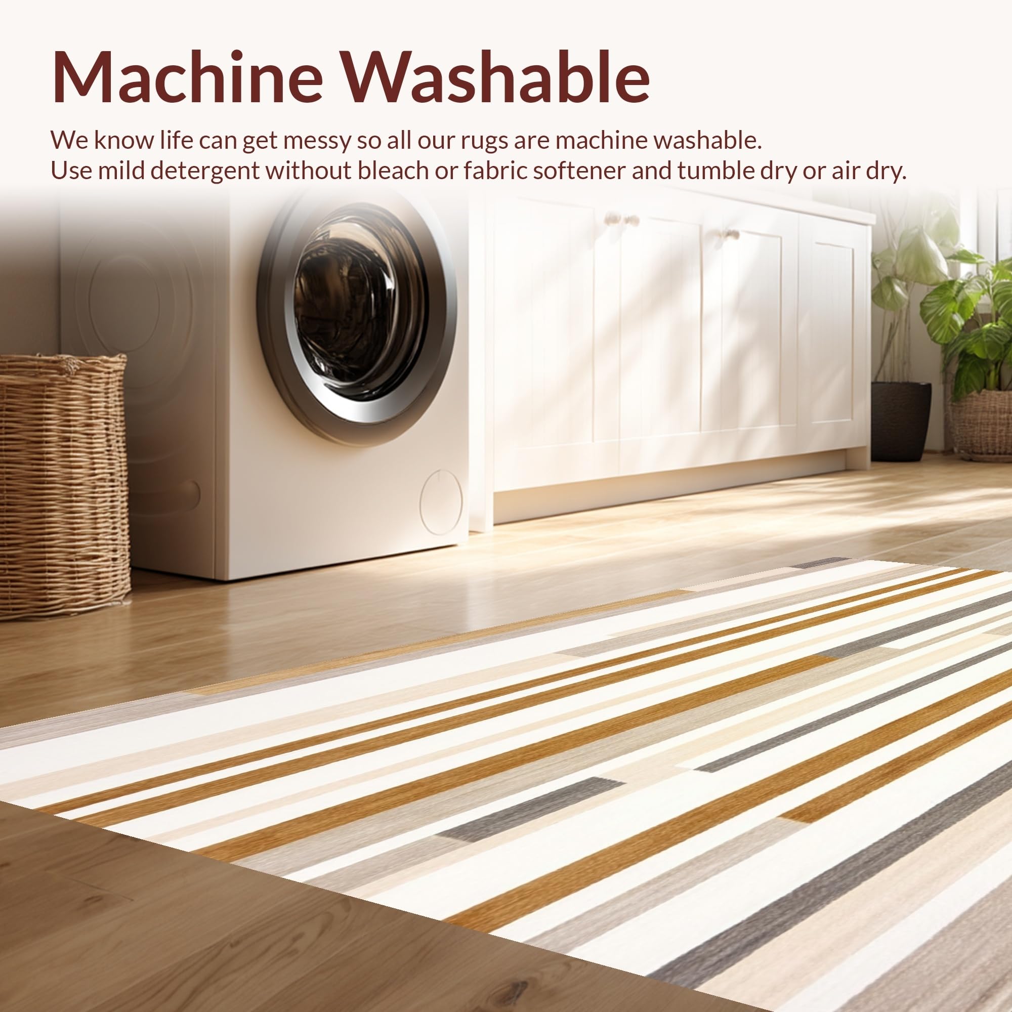 - Machine Washable: Our rugs can be easily thrown in the wash machine.