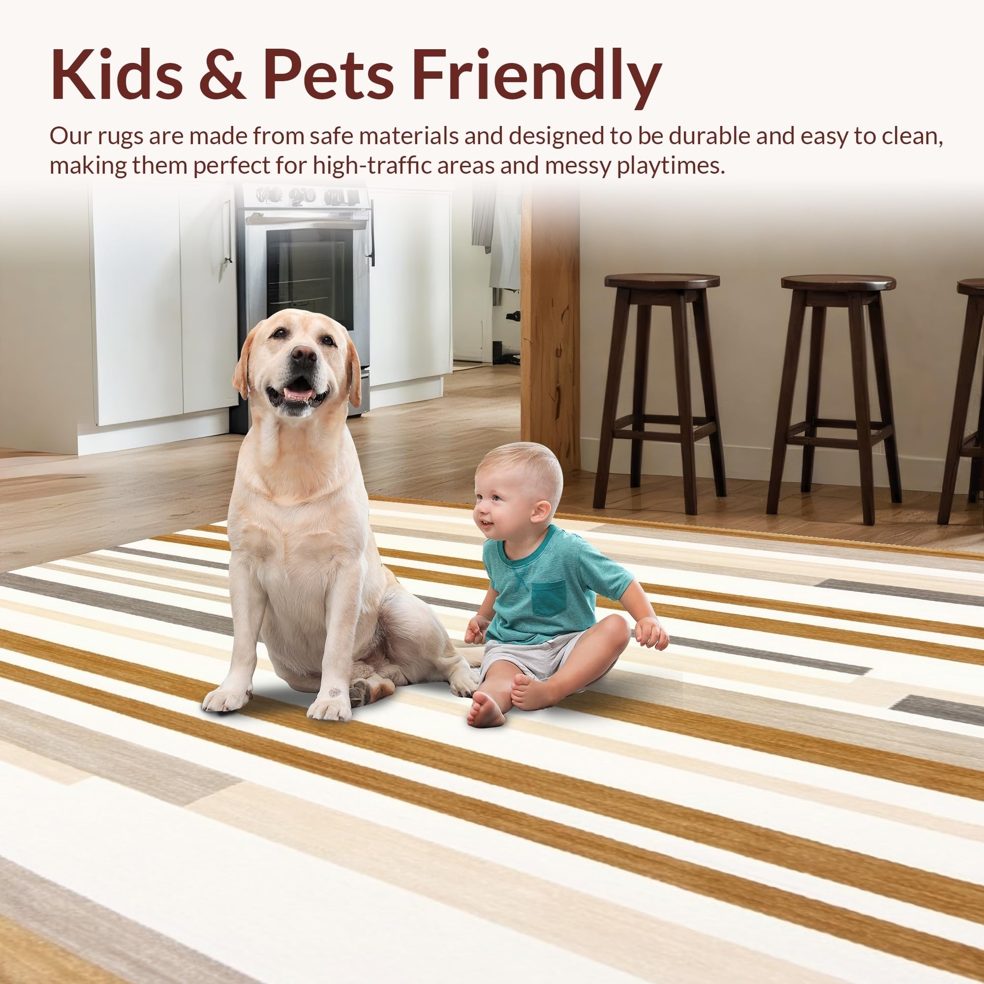 Ultra Soft Area Rug, Non Slip, Stain Resistant, Washable Area Rugs for Living Room, Bedroom, Contemporary Stripe Area Neutral Tone Non Slip Stain Proof(Beige) Overview: