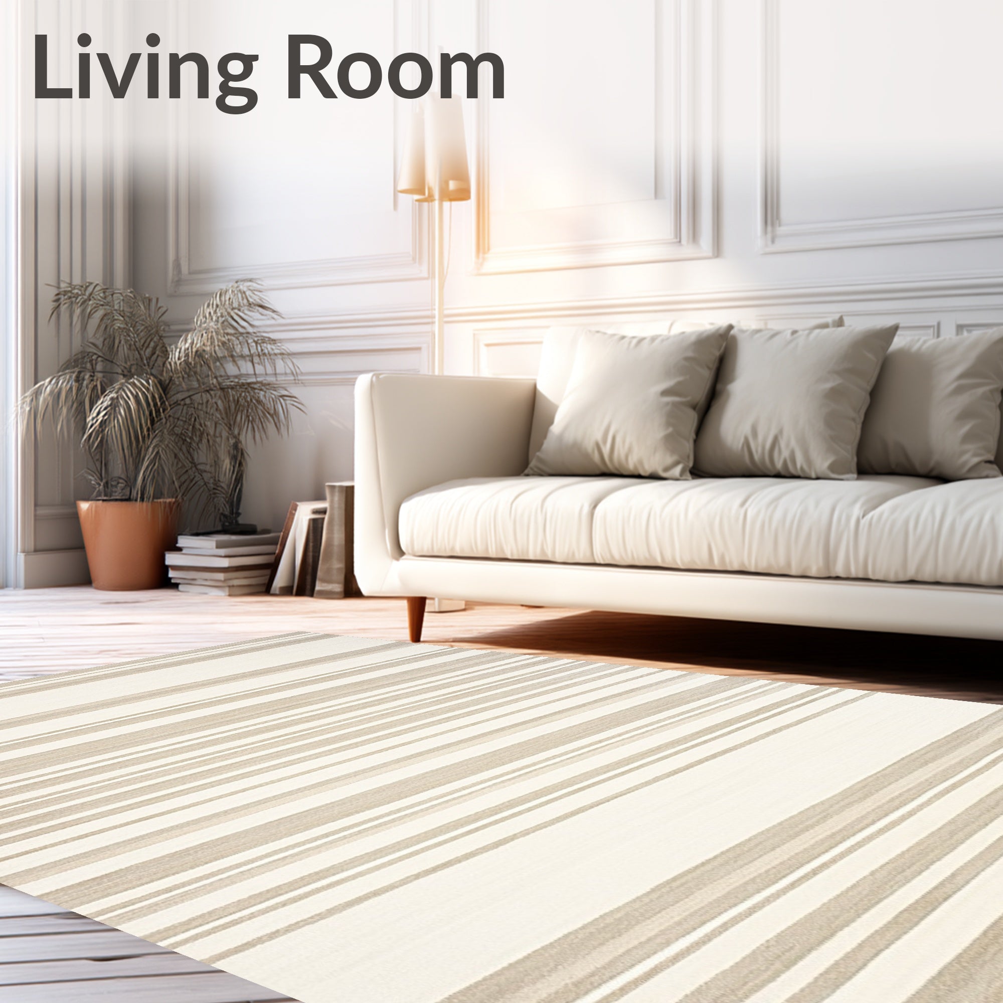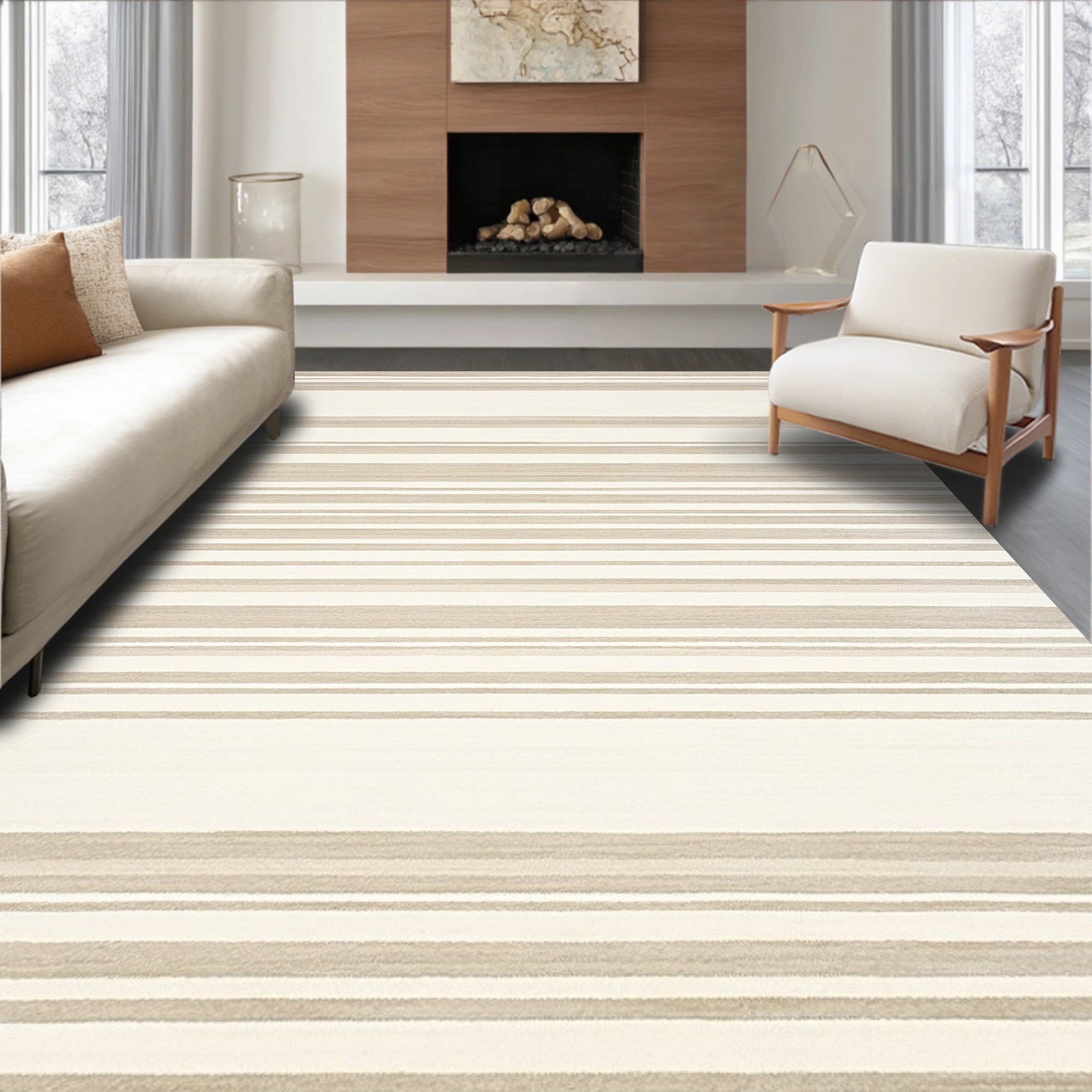 Ultra Soft Area Rug, Non Slip, Stain Resistant, Washable Area Rugs for Living Room, Bedroom, Contemporary Stripe Design with Subtle Textured Look(Beige) Overview:
