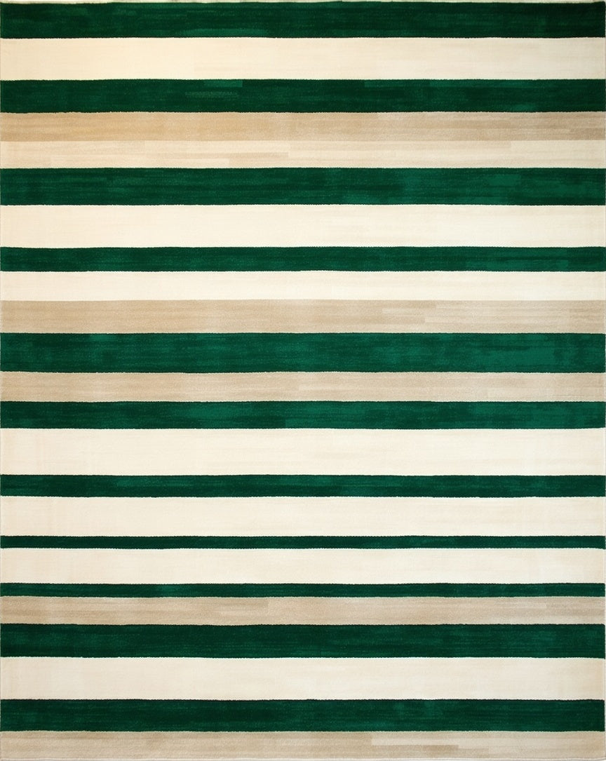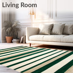Ultra Soft Area Rug, Non Slip, Stain Resistant, Washable Area Rugs for Living Room, Bedroom, Contemporary Striped Area in Rich Beige and Emerald Green Tones(Green) Overview: