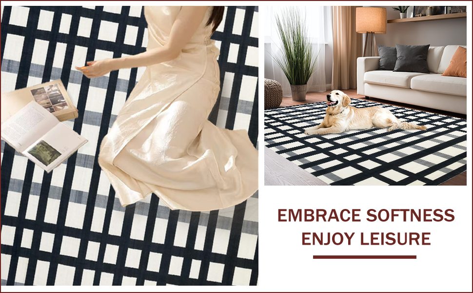 Ultra Soft Area Rug, Non Slip, Stain Resistant, Washable Area Rugs for Living Room, Bedroom, Contemporary Striped Black and White Theme(Black) Overview: