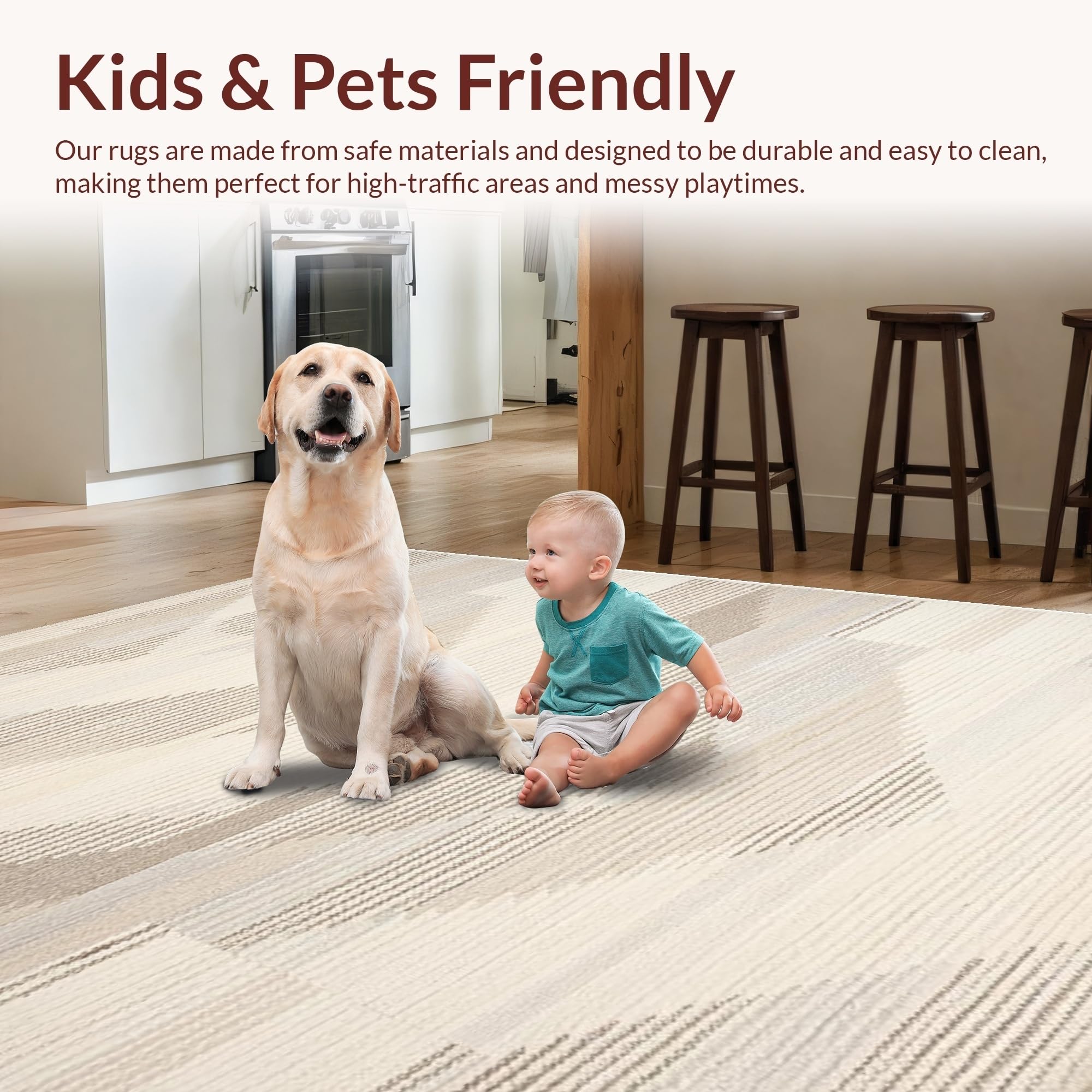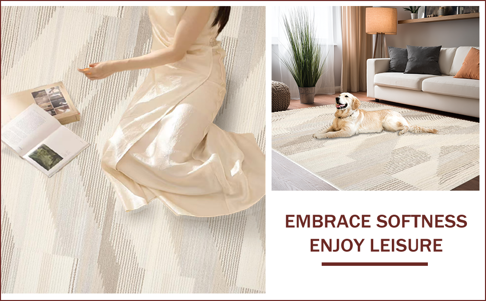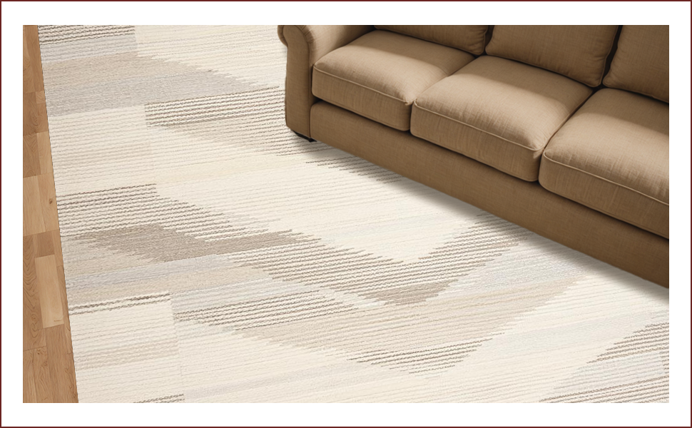 Ultra Soft Area Rug, Non Slip, Stain Resistant, Washable Area Rugs for Living Room, Bedroom, Contemporary Striped Earthy Elegance(Beige) Overview:
