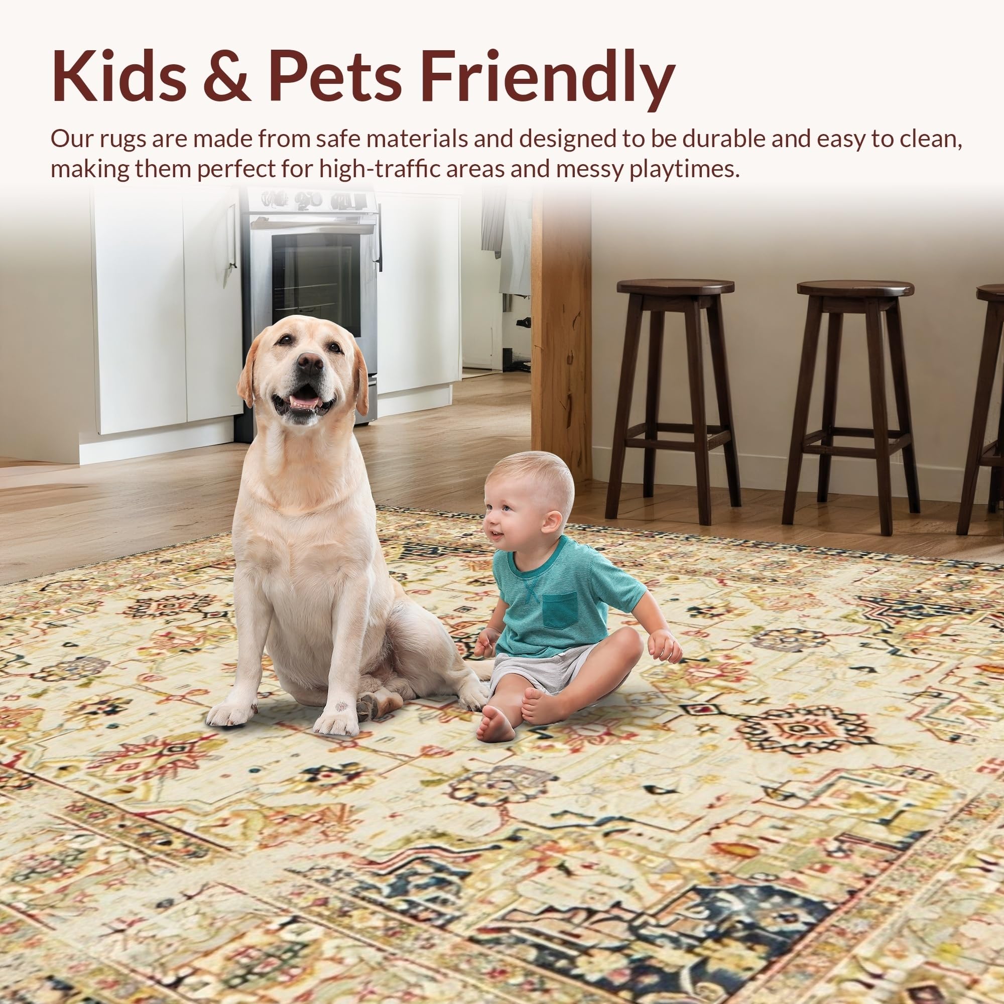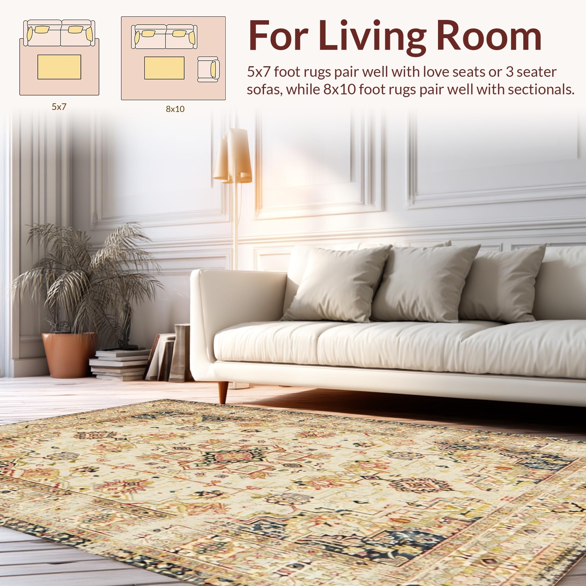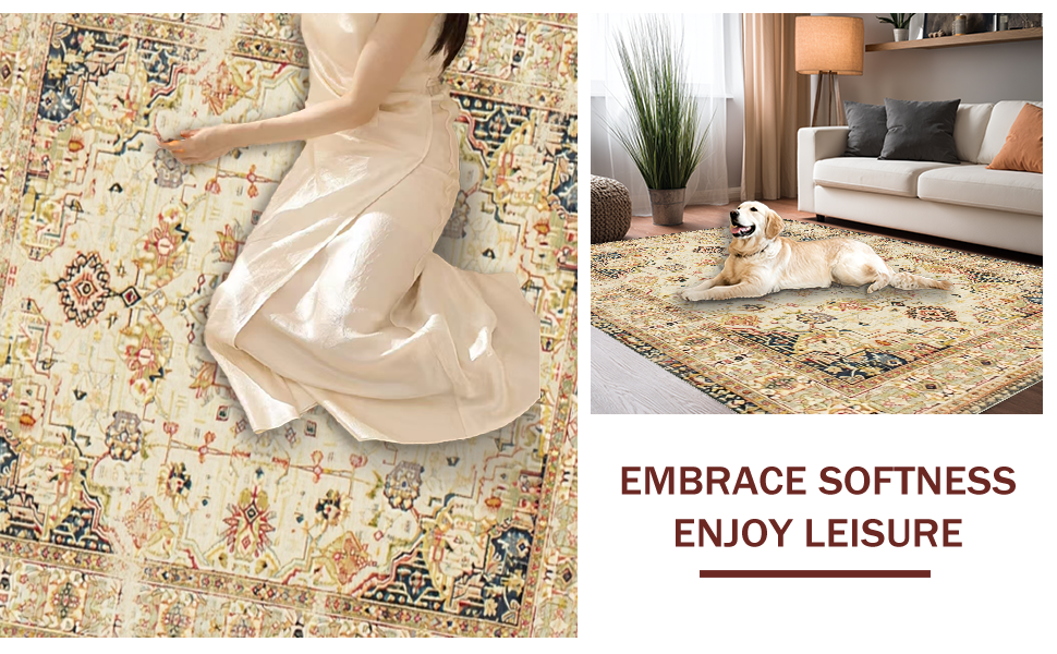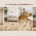 Ultra Soft Area Rug, Non Slip, Stain Resistant, Washable Area Rugs for Living Room, Bedroom, Contemporary Striped Floral Aesthetic(Beige) Overview: