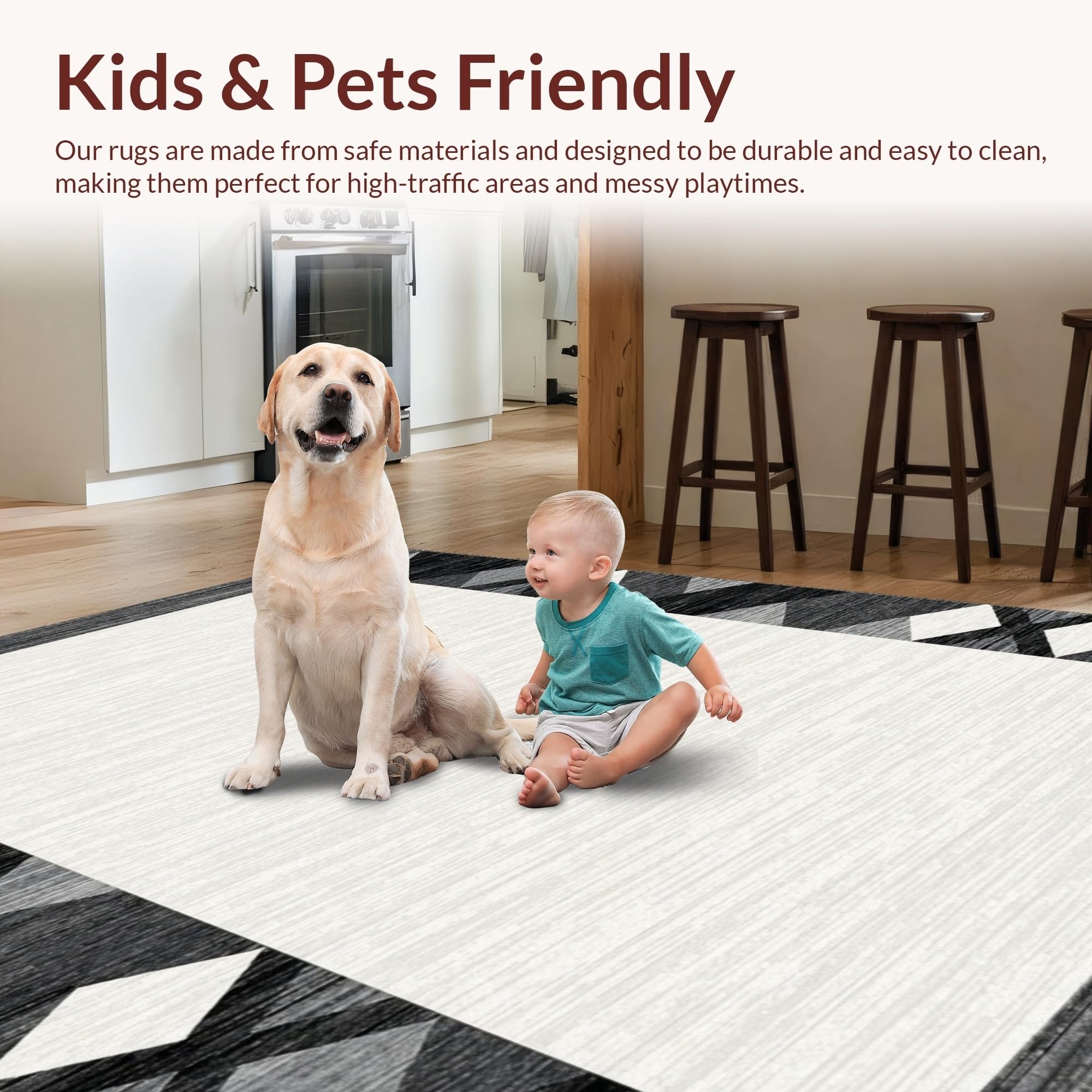 Ultra Soft Area Rug, Non Slip, Stain Resistant, Washable Area Rugs for Living Room, Bedroom, Contemporary Stylish Ogee Visual Appeal(Gray) Overview:
