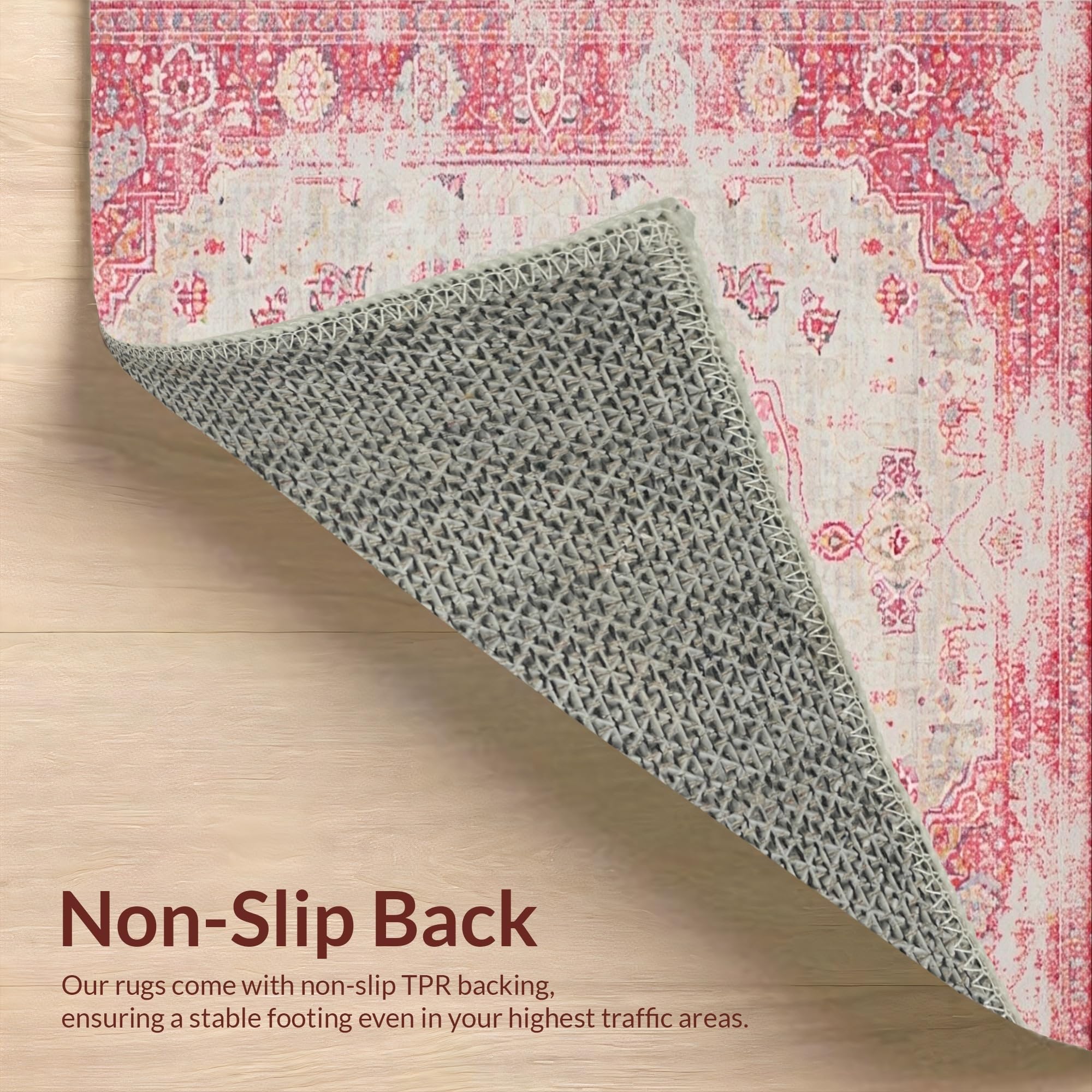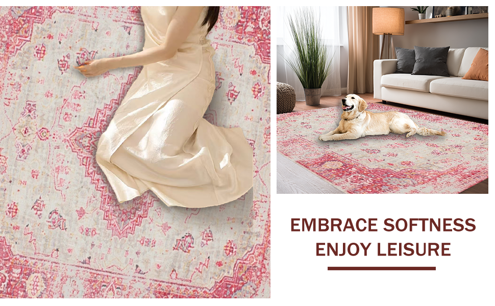 Ultra Soft Area Rug, Non Slip, Stain Resistant, Washable Area Rugs for Living Room, Bedroom, Contemporary Subtle Floral Silhouette(Red) Overview: