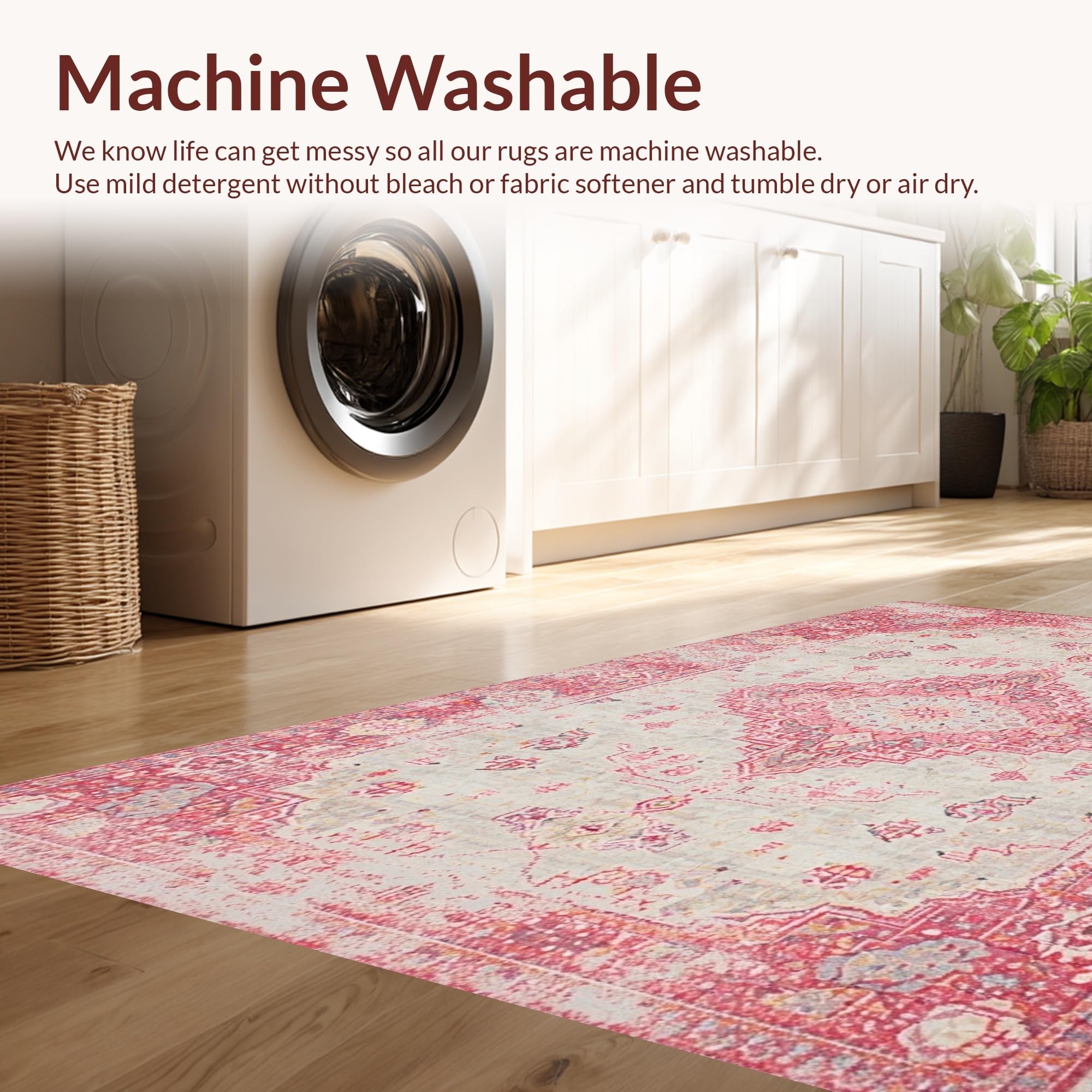 - Machine Washable: Our rugs can be easily thrown in the wash machine.