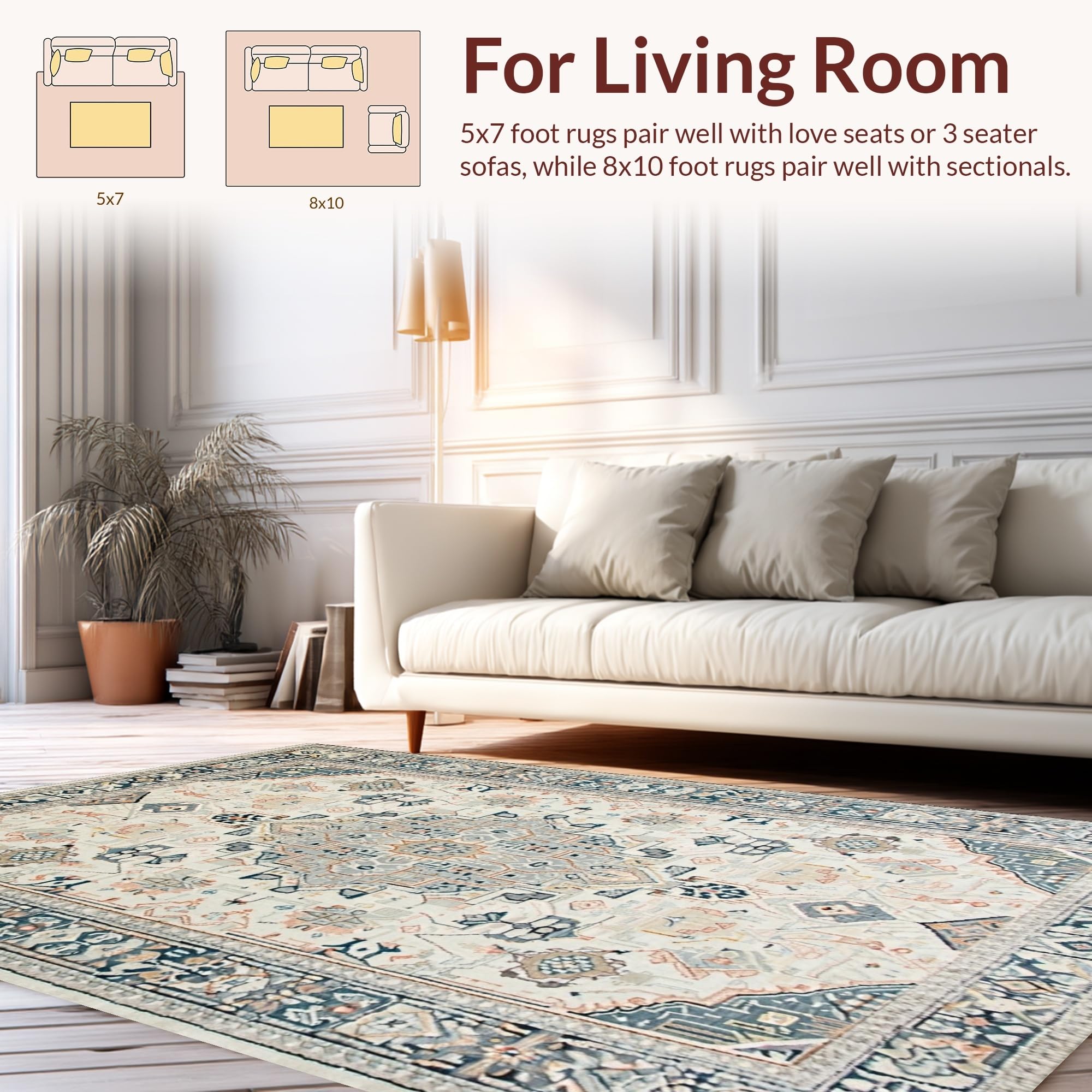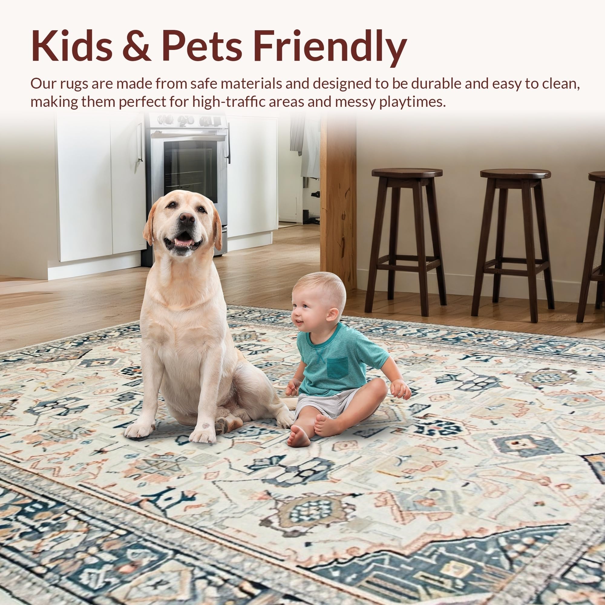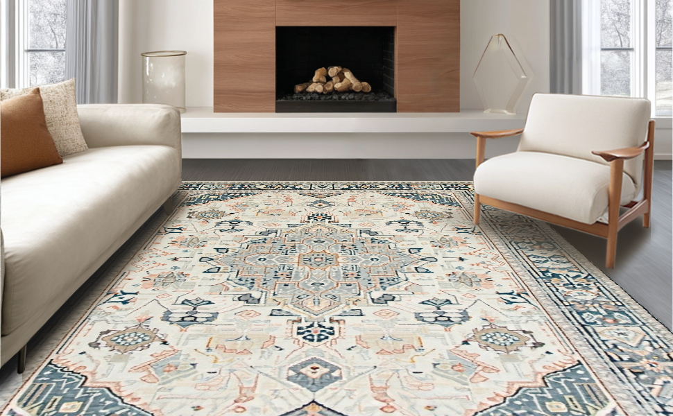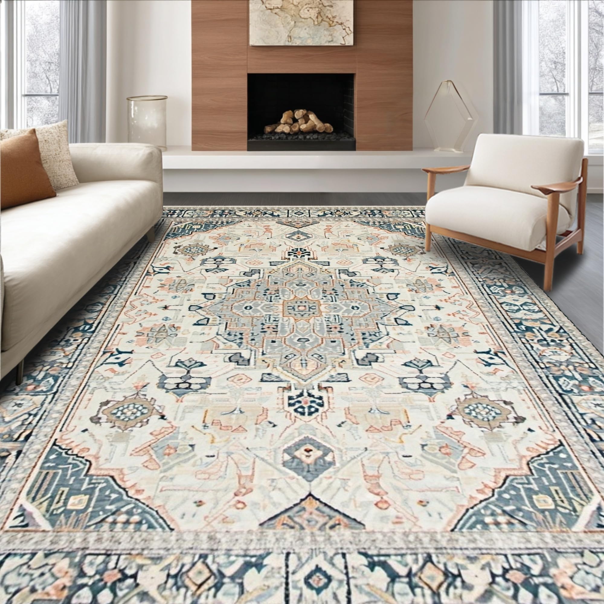 Ultra Soft Area Rug, Non Slip, Stain Resistant, Washable Area Rugs for Living Room, Bedroom, Contemporary Subtle Geometric Fusion(Beige) Overview: