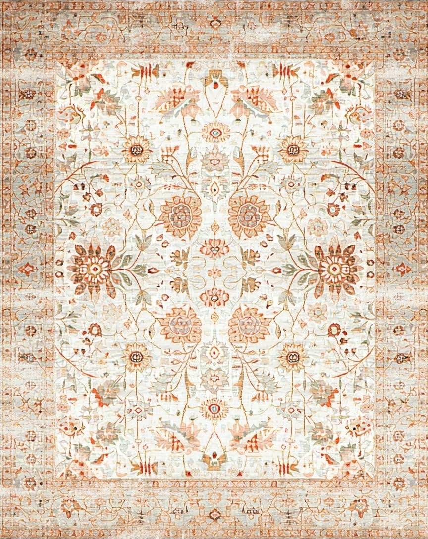 Ultra Soft Area Rug, Non Slip, Stain Resistant, Washable Area Rugs for Living Room, Bedroom, Contemporary Subtle Geometric Print(Ivory) Overview: