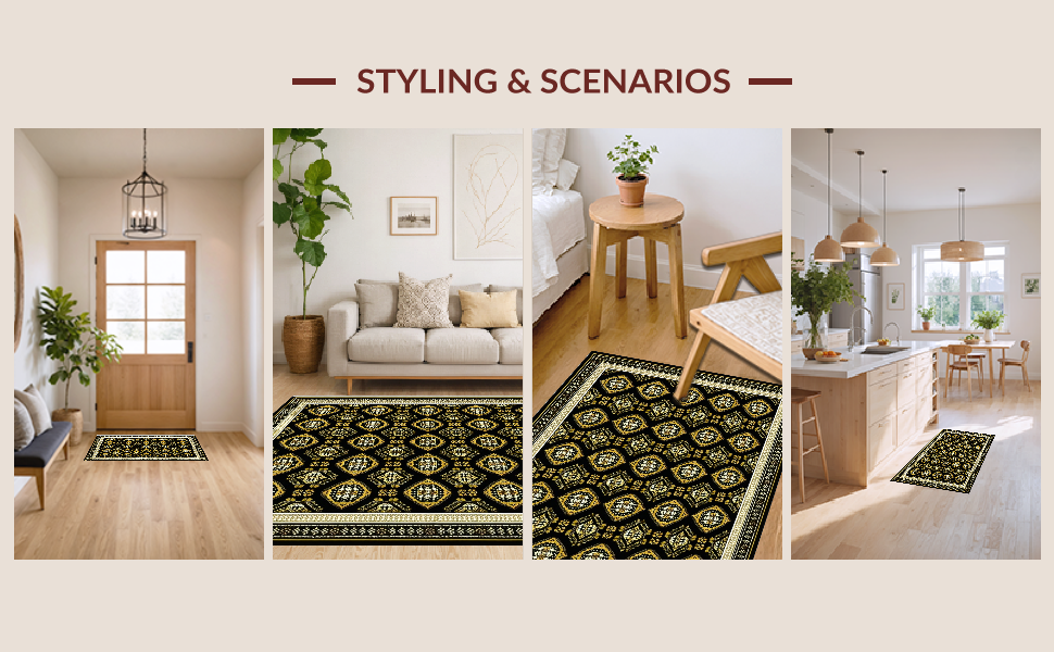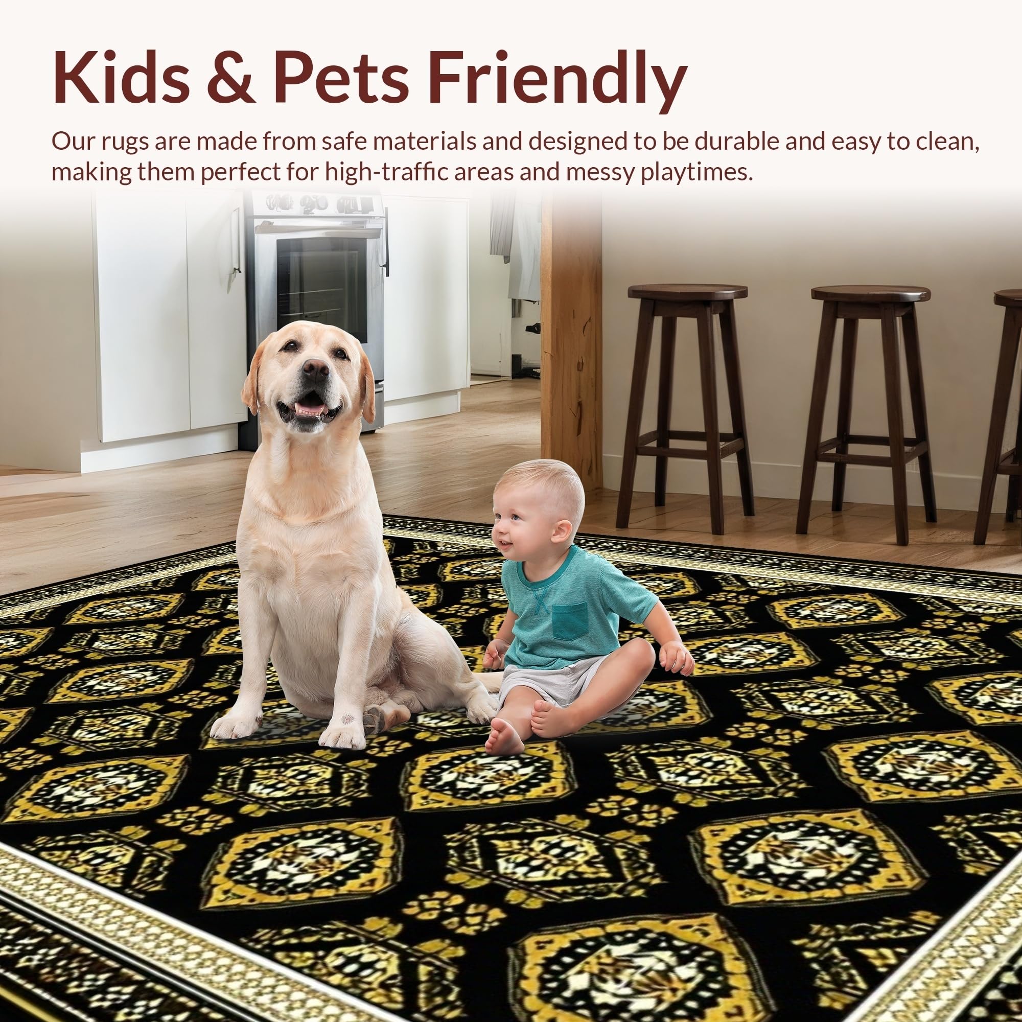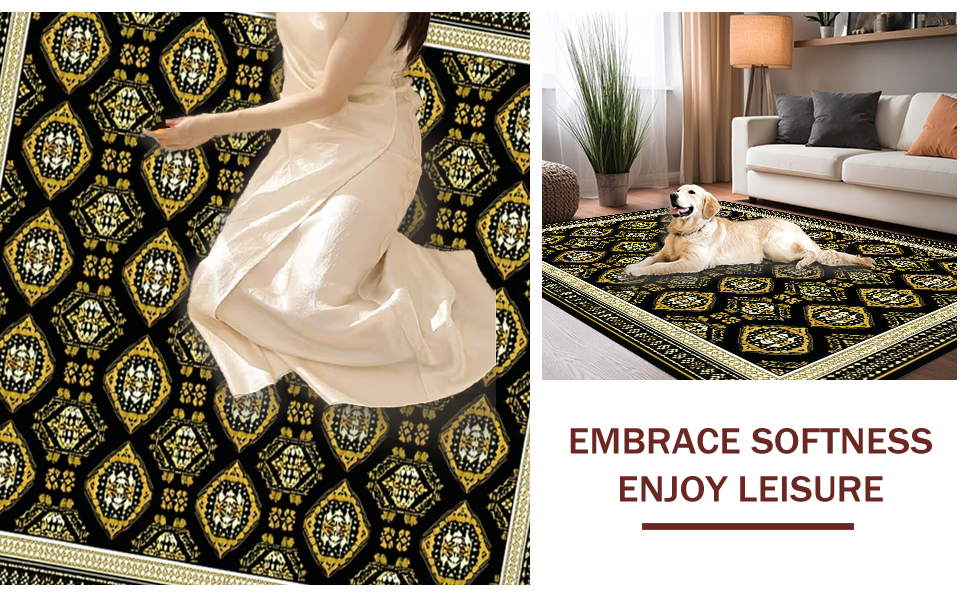 Ultra Soft Area Rug, Non Slip, Stain Resistant, Washable Area Rugs for Living Room, Bedroom, Contemporary Symmetrical Pattern Play(Black) Overview: