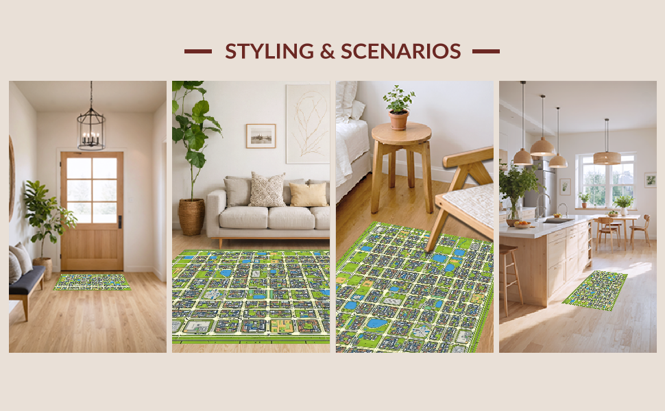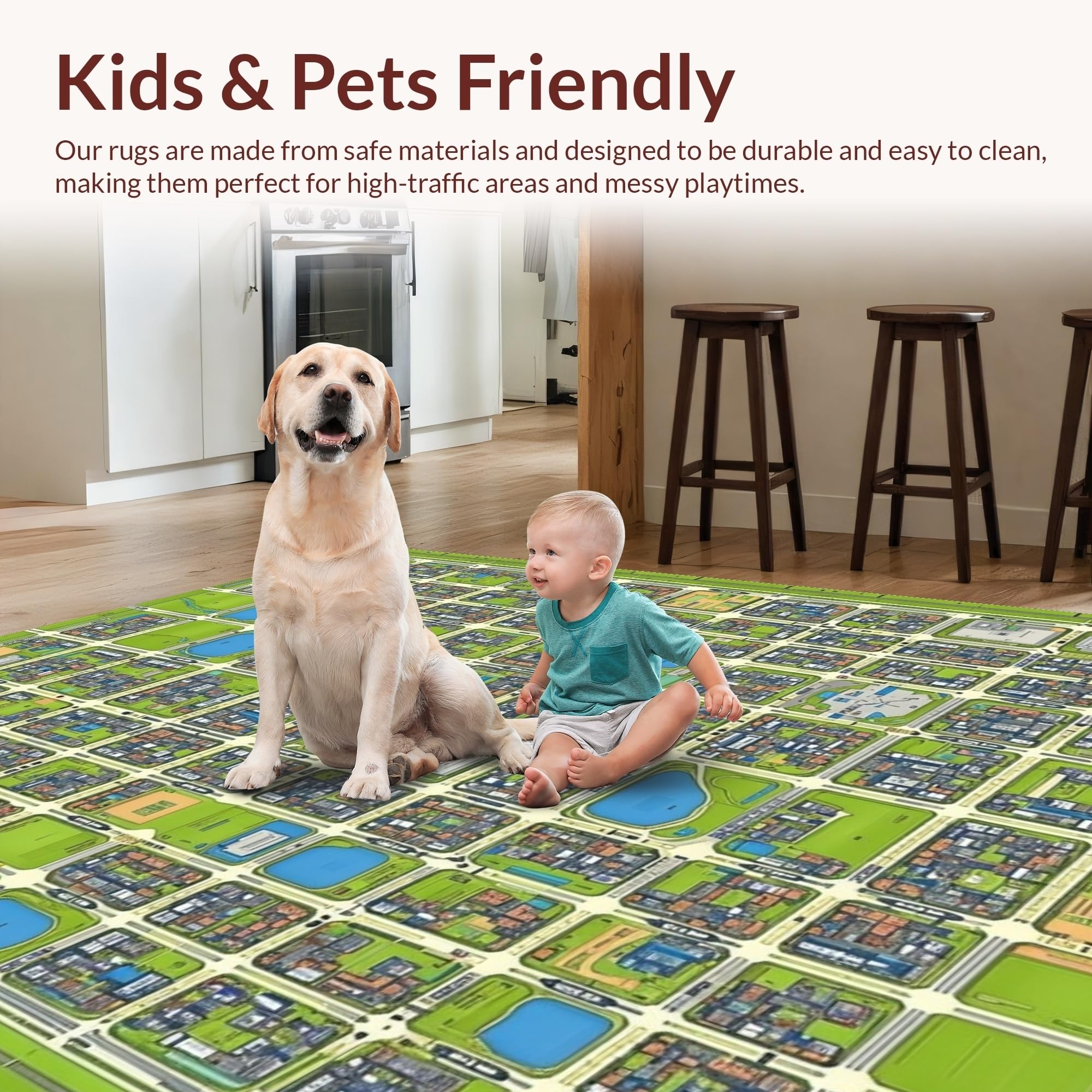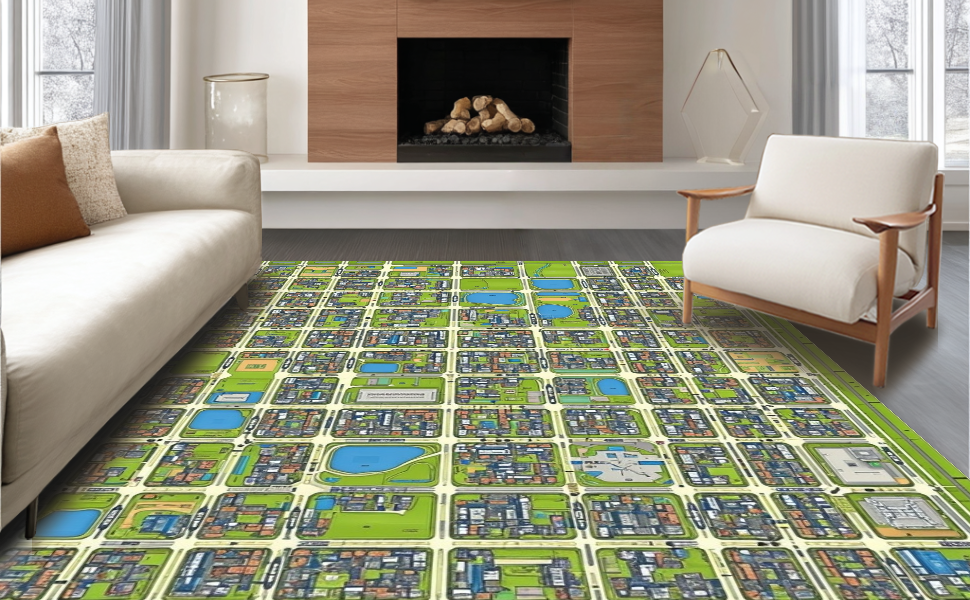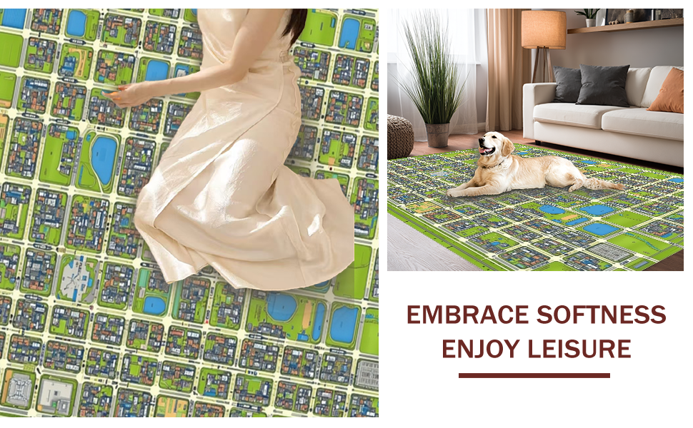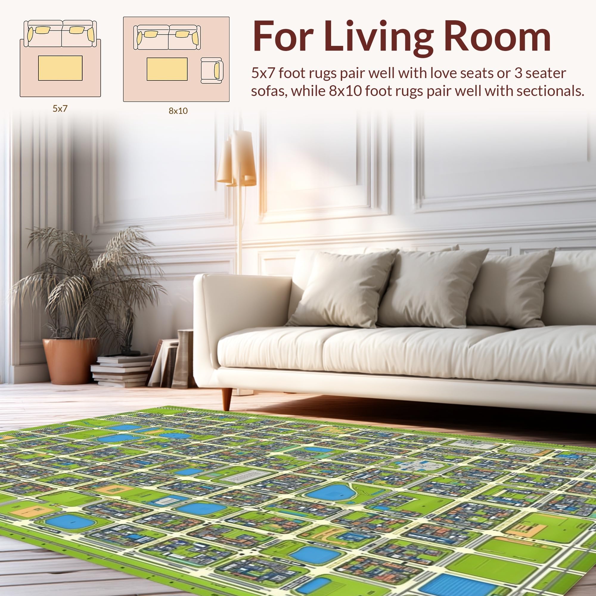 Ultra Soft Area Rug, Non Slip, Stain Resistant, Washable Area Rugs for Living Room, Bedroom, Contemporary Tan Cityscape(Gray) Overview: