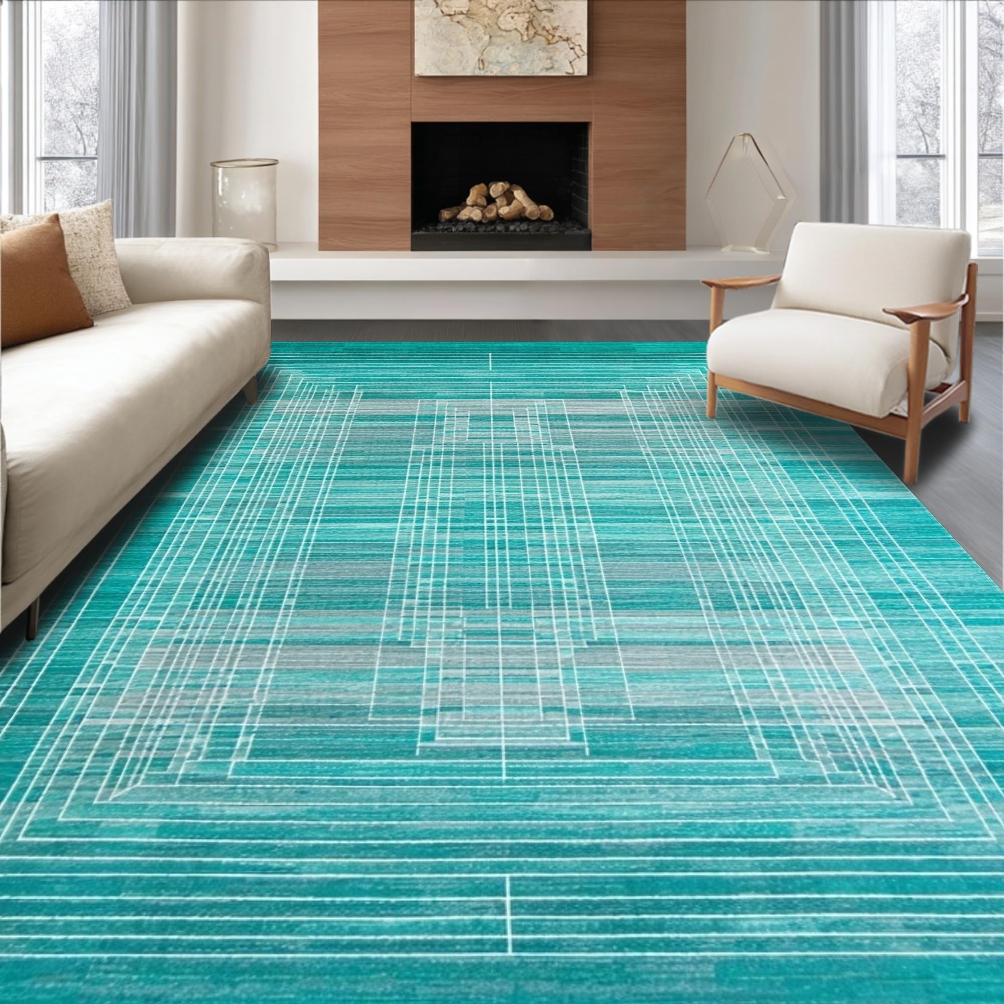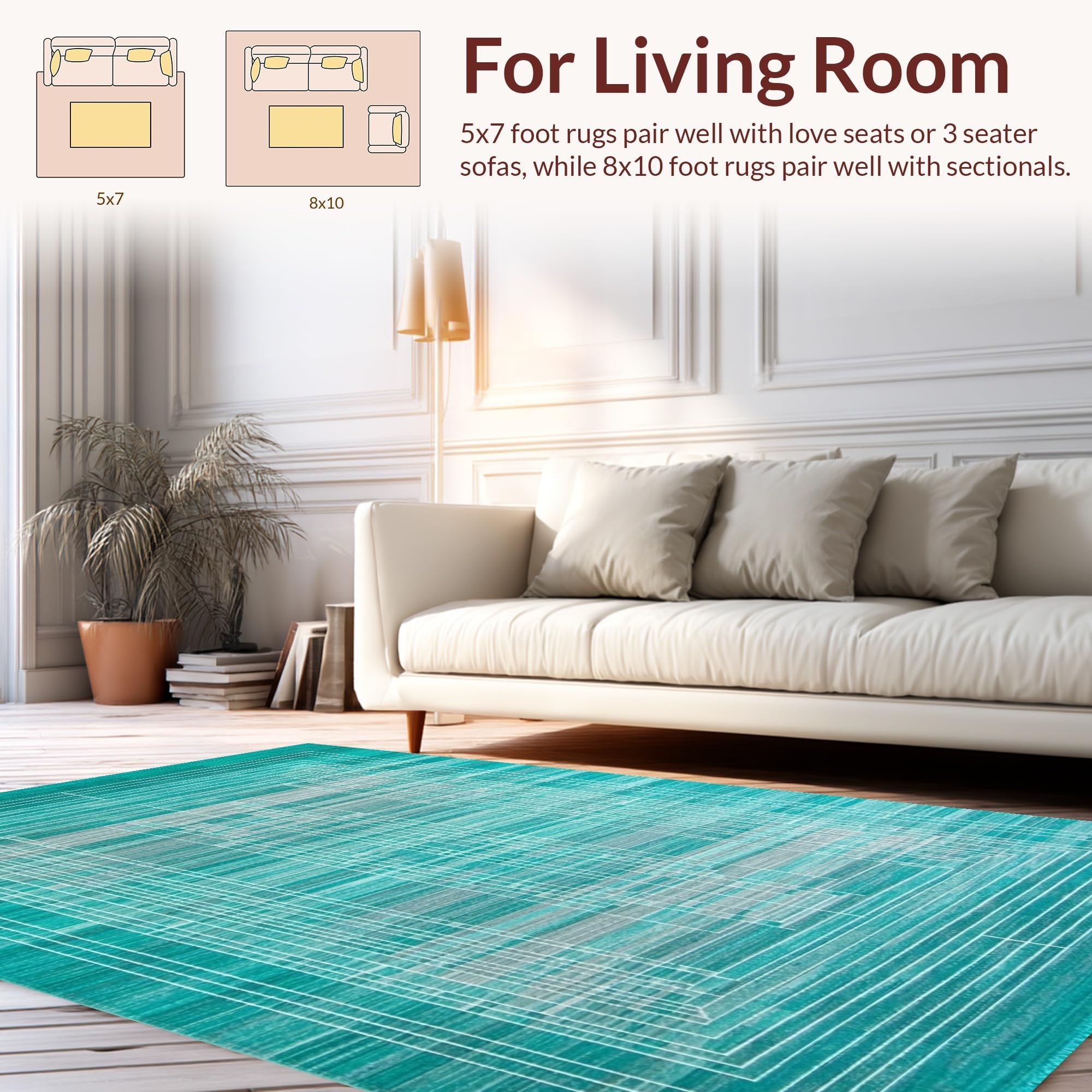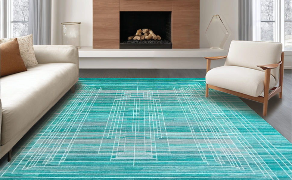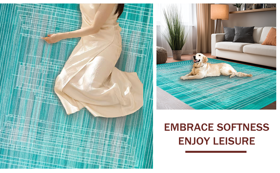 Ultra Soft Area Rug, Non Slip, Stain Resistant, Washable Area Rugs for Living Room, Bedroom, Contemporary Teal Abstract Waves(Blue) Overview: