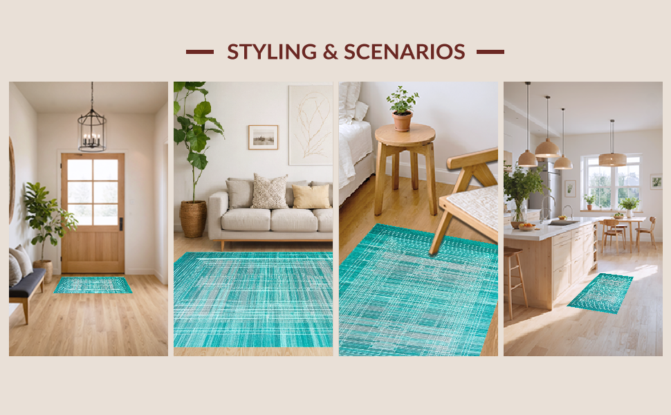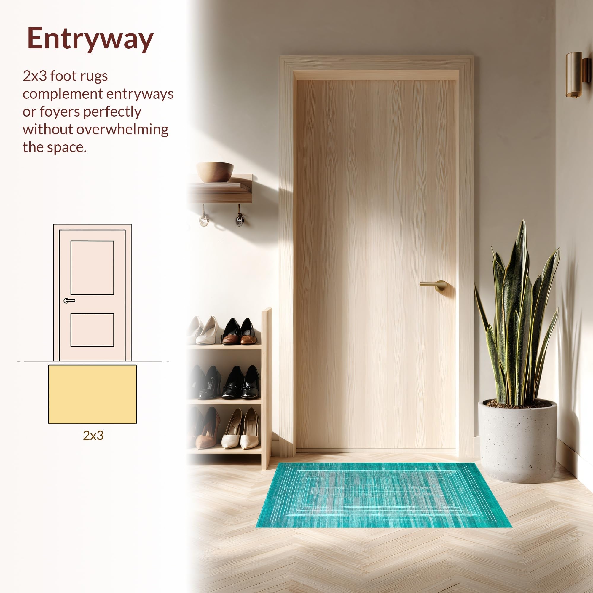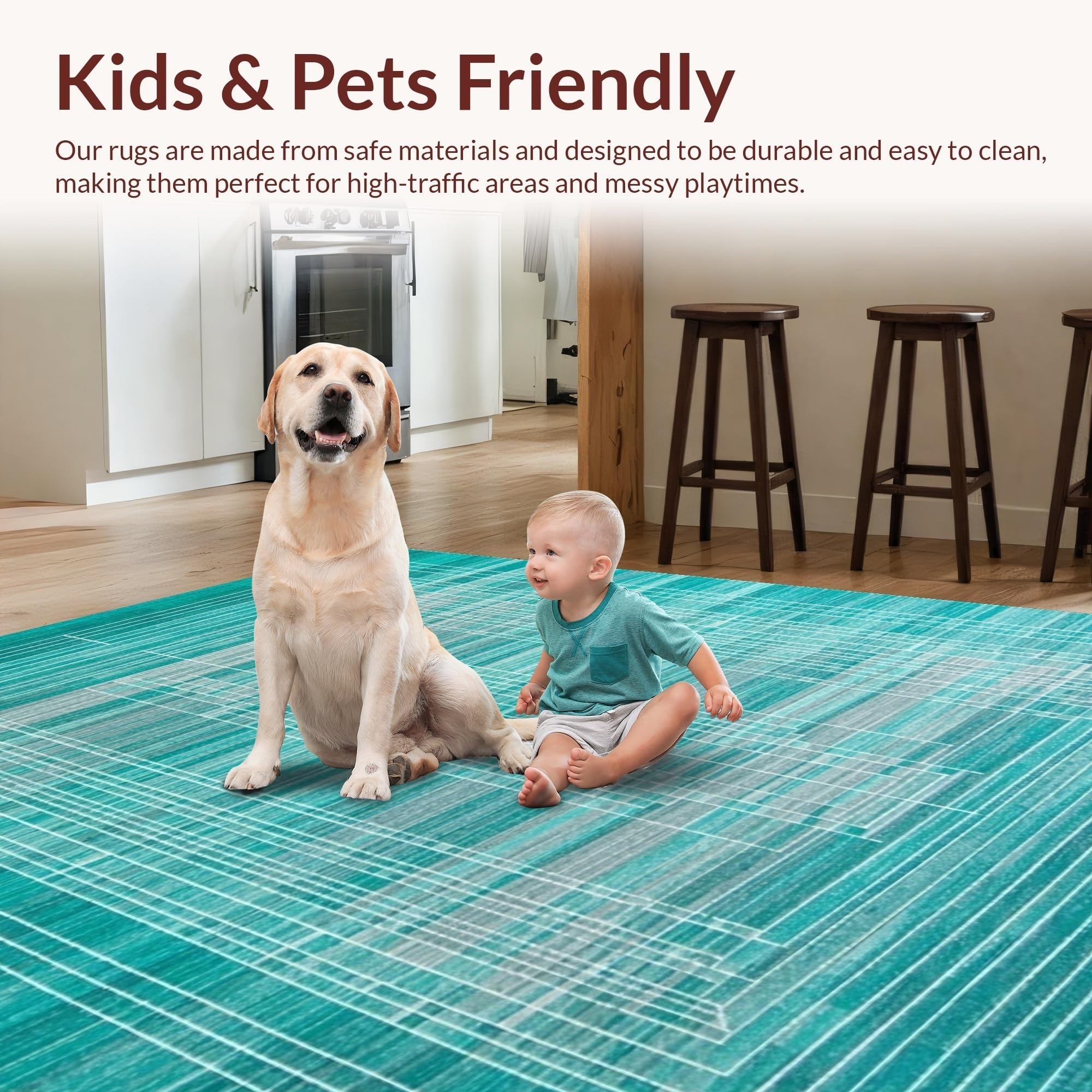 Ultra Soft Area Rug, Non Slip, Stain Resistant, Washable Area Rugs for Living Room, Bedroom, Contemporary Teal Abstract Waves(Blue) Overview: