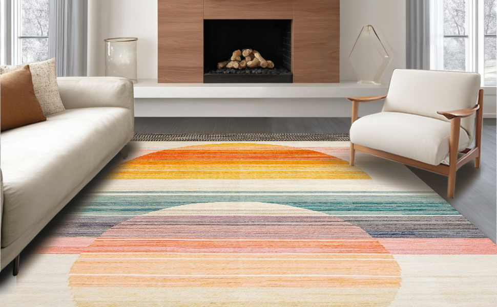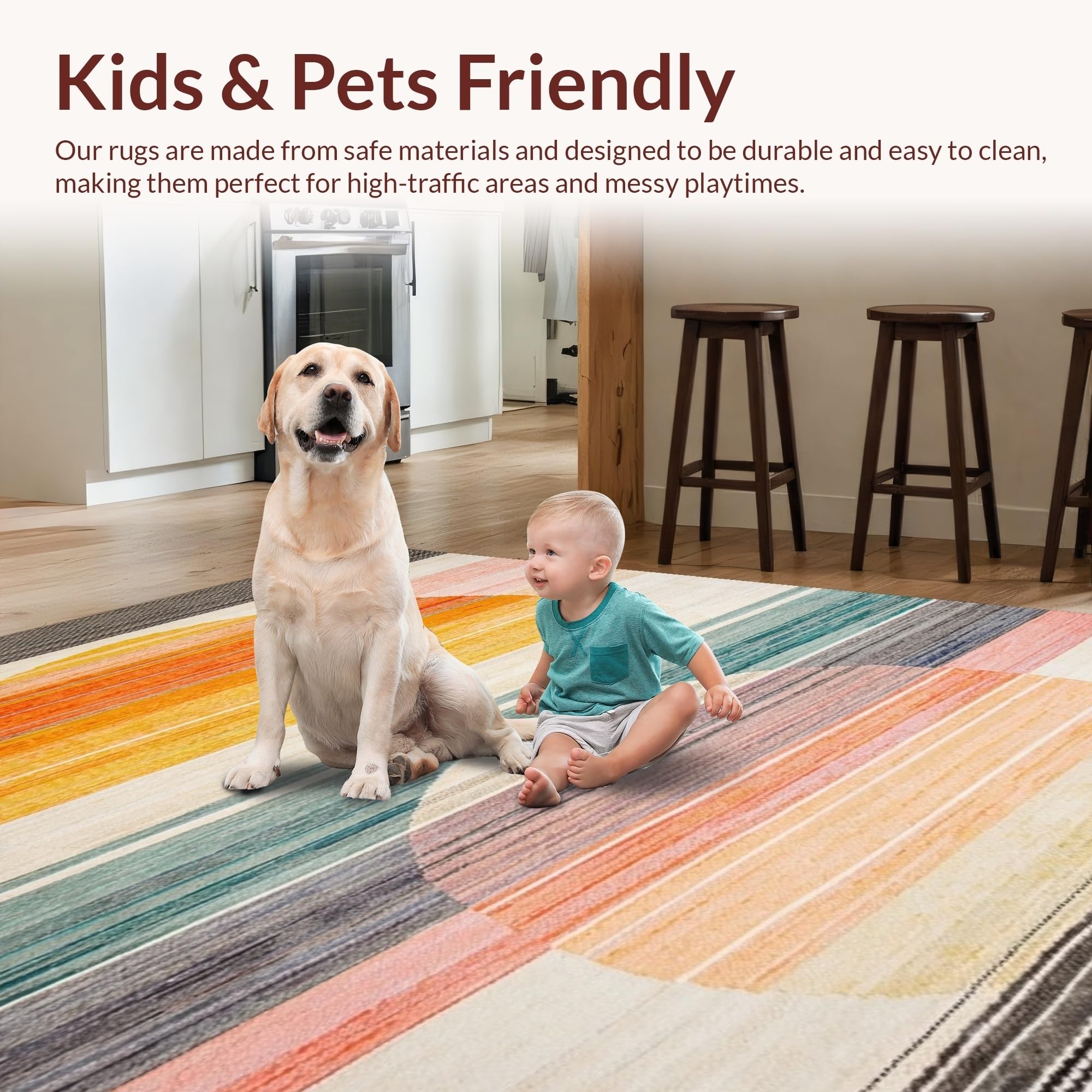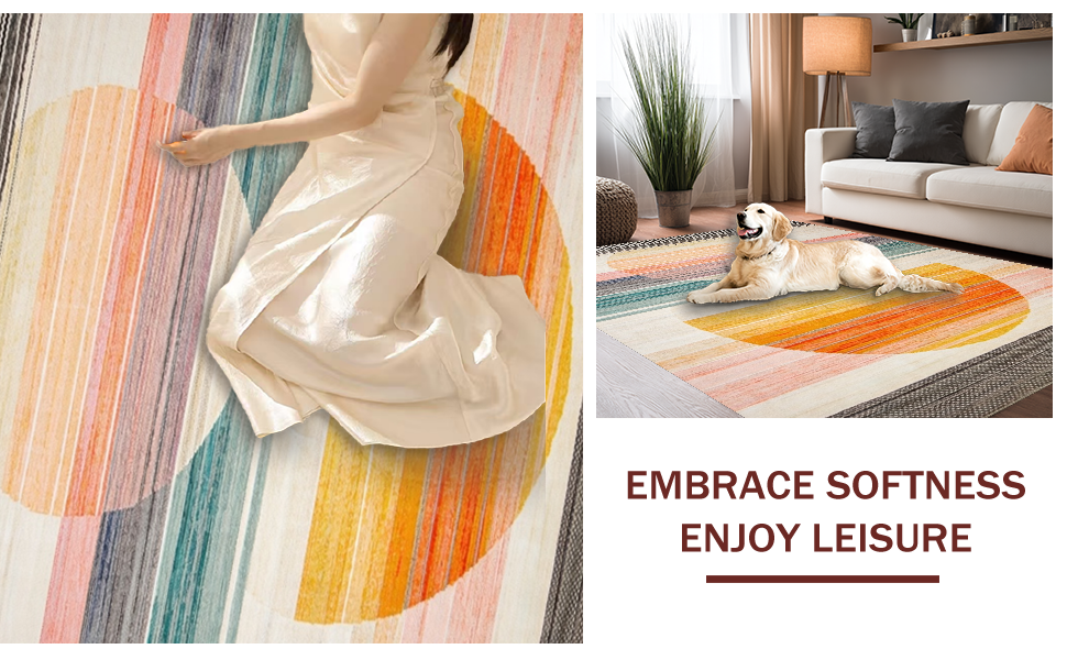 Ultra Soft Area Rug, Non Slip, Stain Resistant, Washable Area Rugs for Living Room, Bedroom, Contemporary Textured Linear Aesthetic(Yellow) Overview: