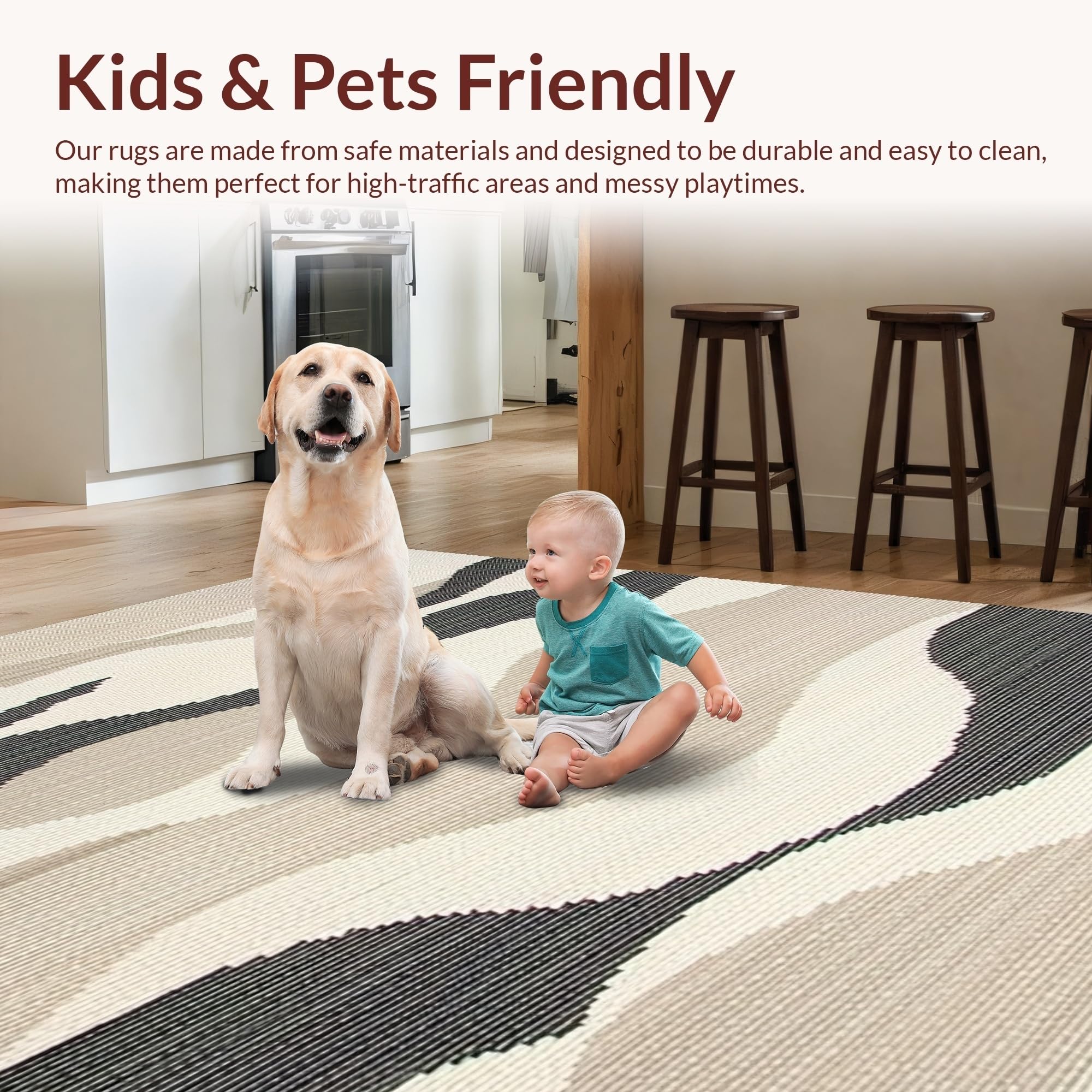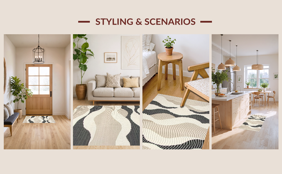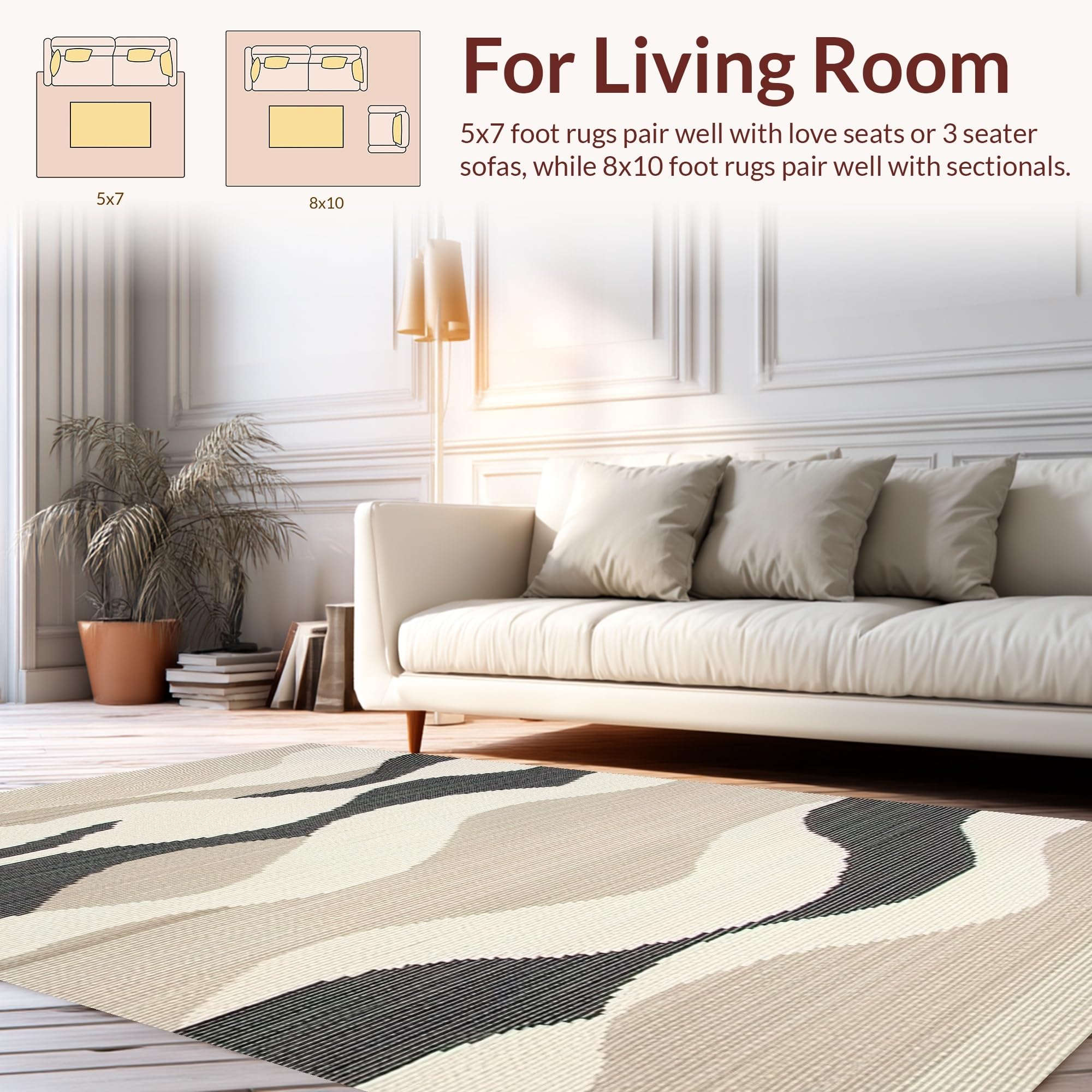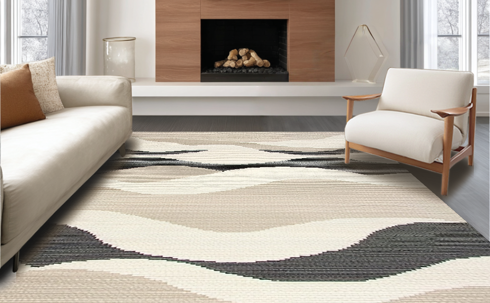 Ultra Soft Area Rug, Non Slip, Stain Resistant, Washable Area Rugs for Living Room, Bedroom, Contemporary Textured Scalloped Look(Beige) Overview: