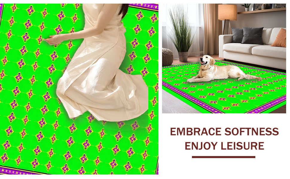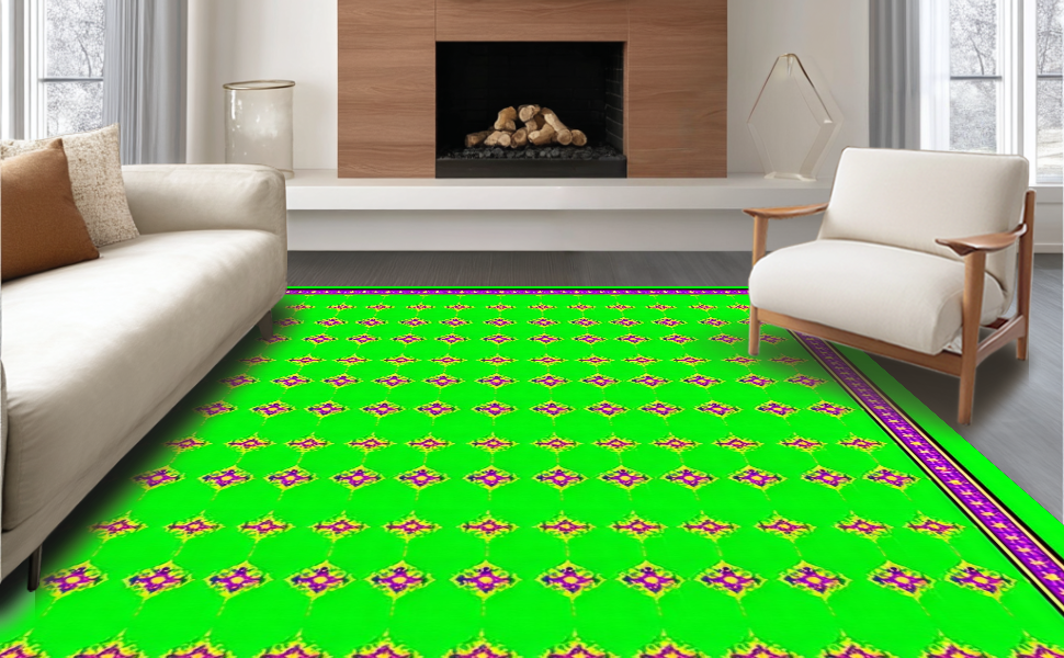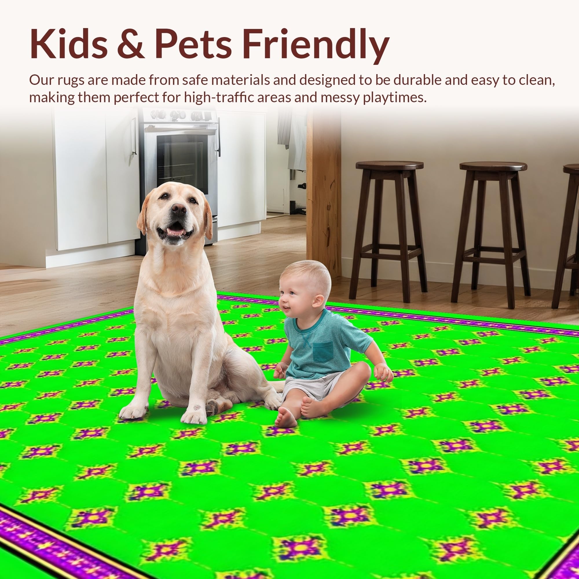 Ultra Soft Area Rug, Non Slip, Stain Resistant, Washable Area Rugs for Living Room, Bedroom, Contemporary Tiled Design with Flair(Green) Overview: