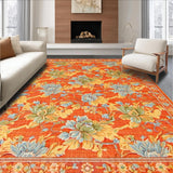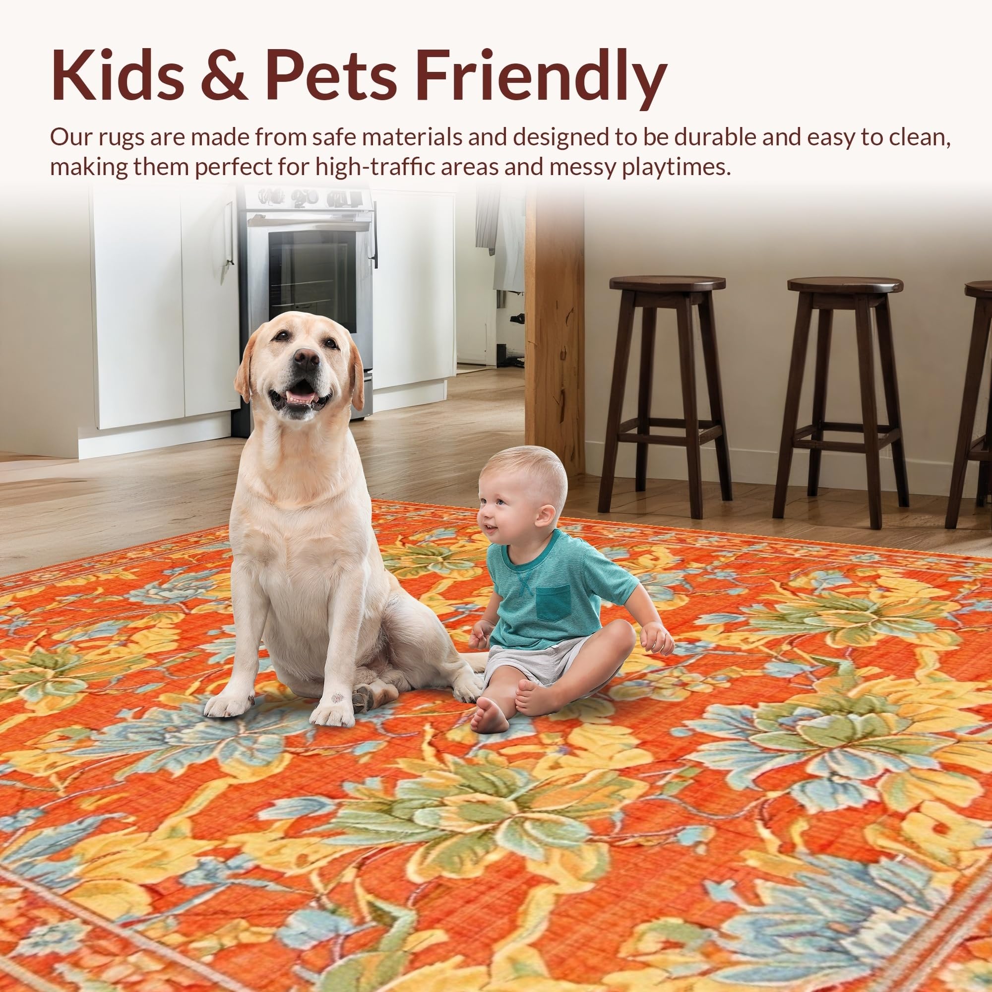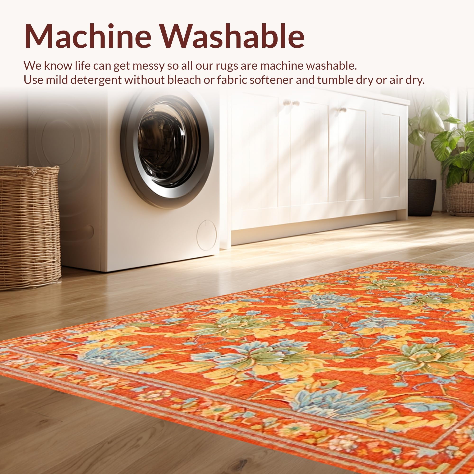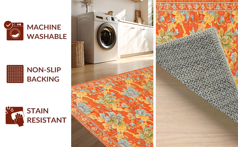 Ultra Soft Area Rug, Non Slip, Stain Resistant, Washable Area Rugs for Living Room, Bedroom, Contemporary Tropical Blossom Aesthetic(Orange) Overview: