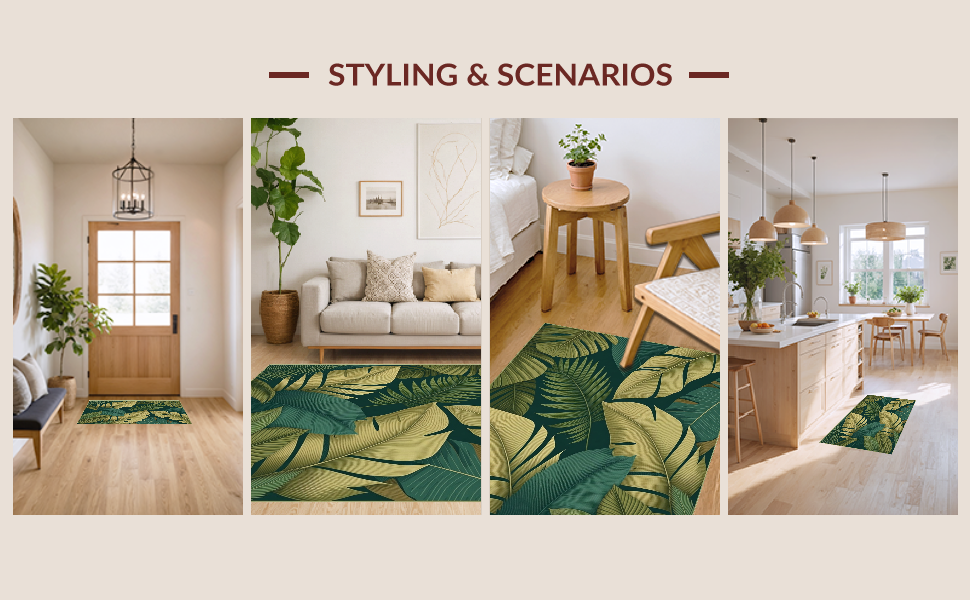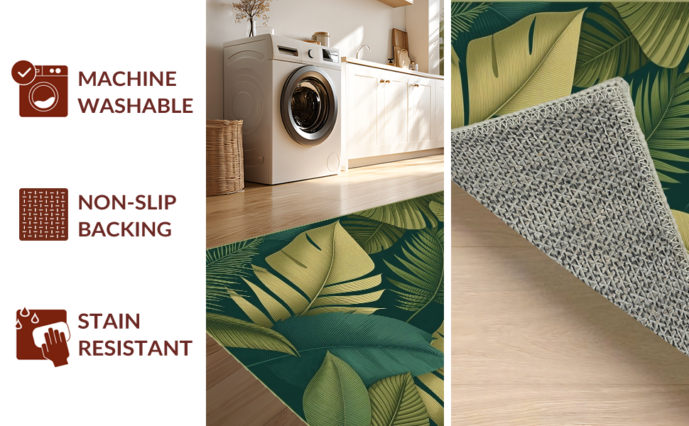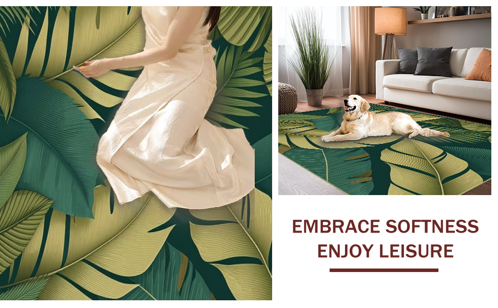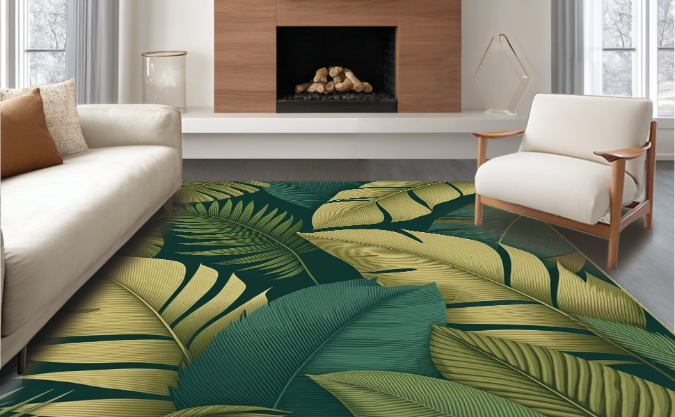 Ultra Soft Area Rug, Non Slip, Stain Resistant, Washable Area Rugs for Living Room, Bedroom, Contemporary Tropical Vibe Textile(Green) Overview: