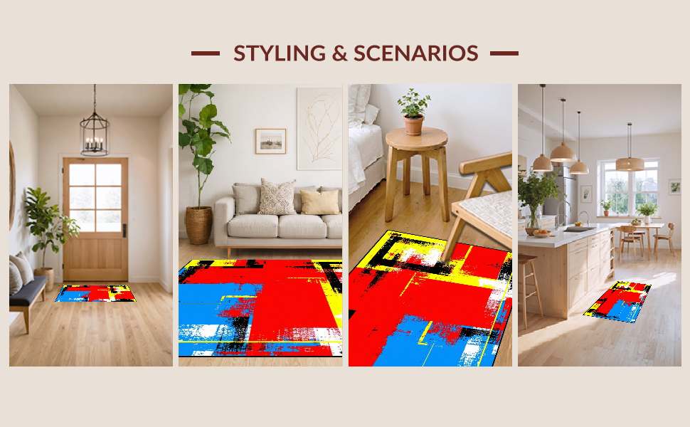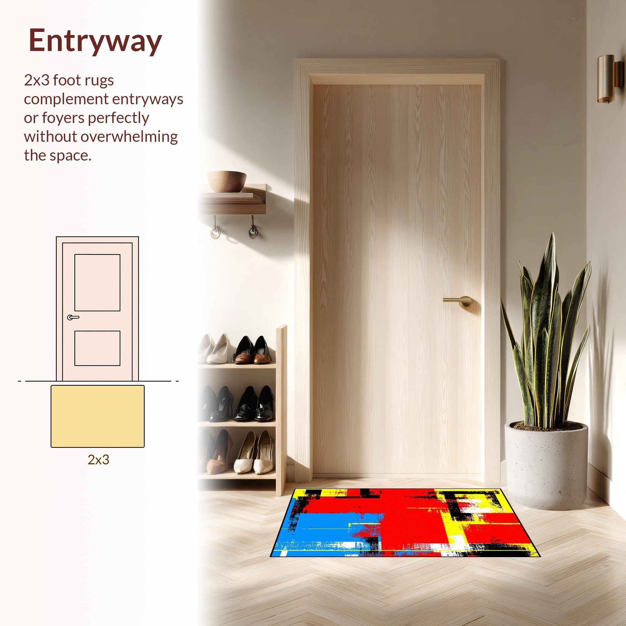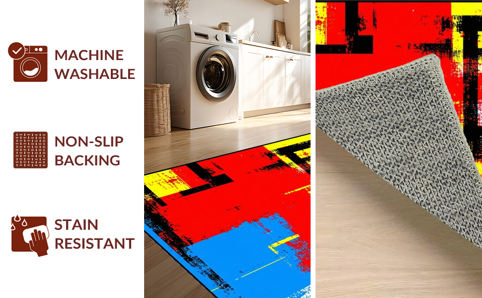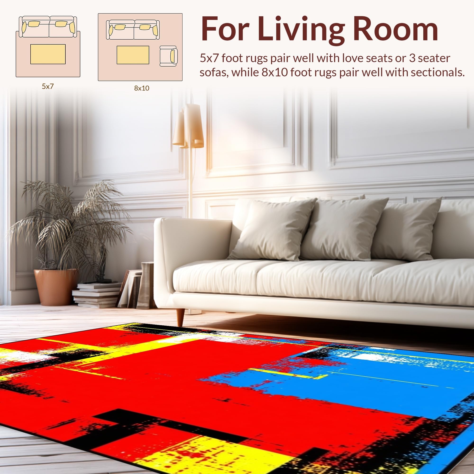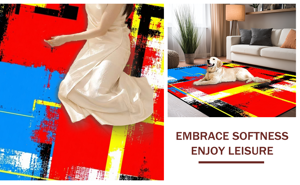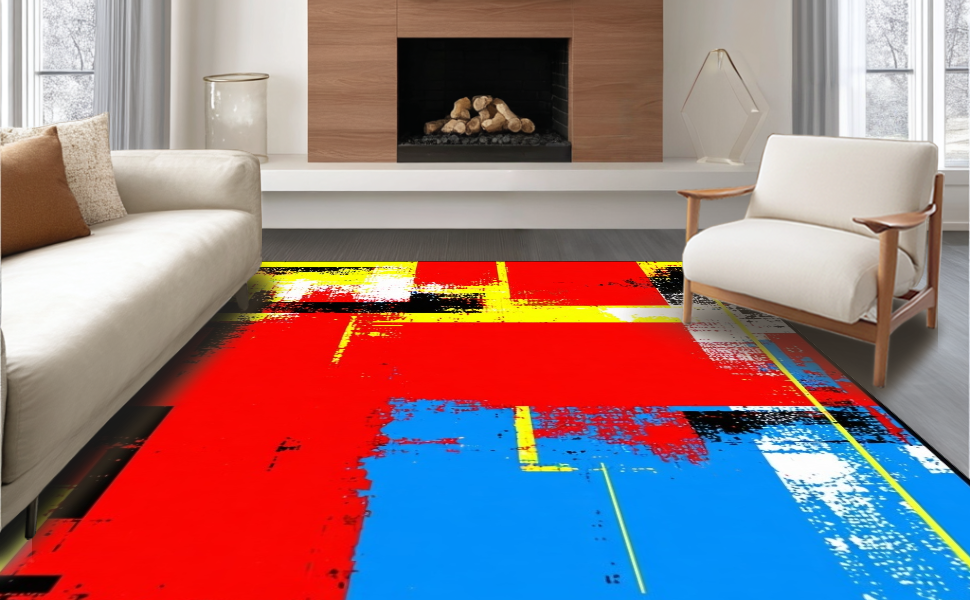 Ultra Soft Area Rug, Non Slip, Stain Resistant, Washable Area Rugs for Living Room, Bedroom, Contemporary Urban Art Vibe(Red) Overview: