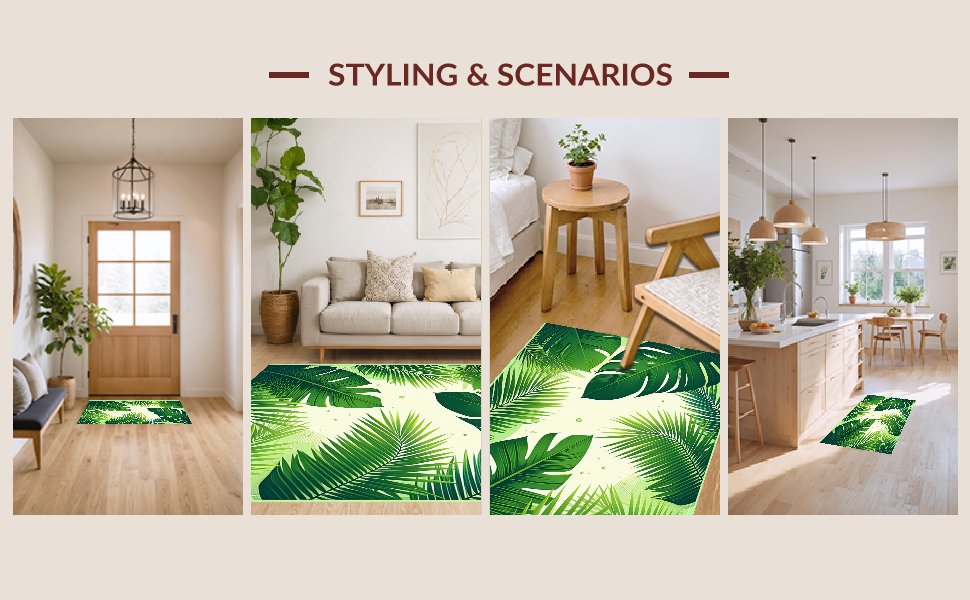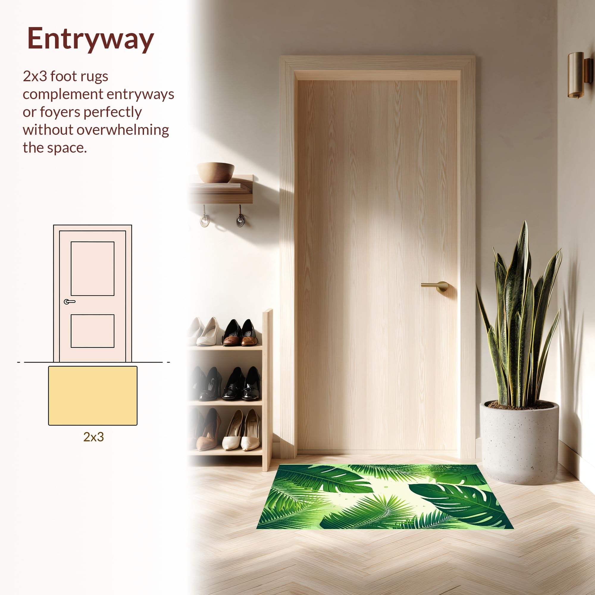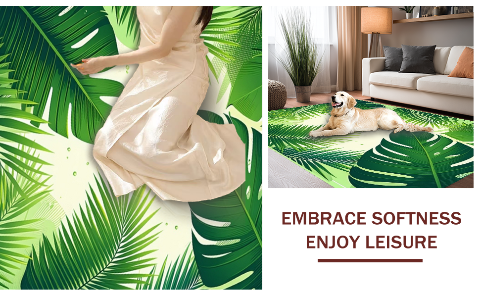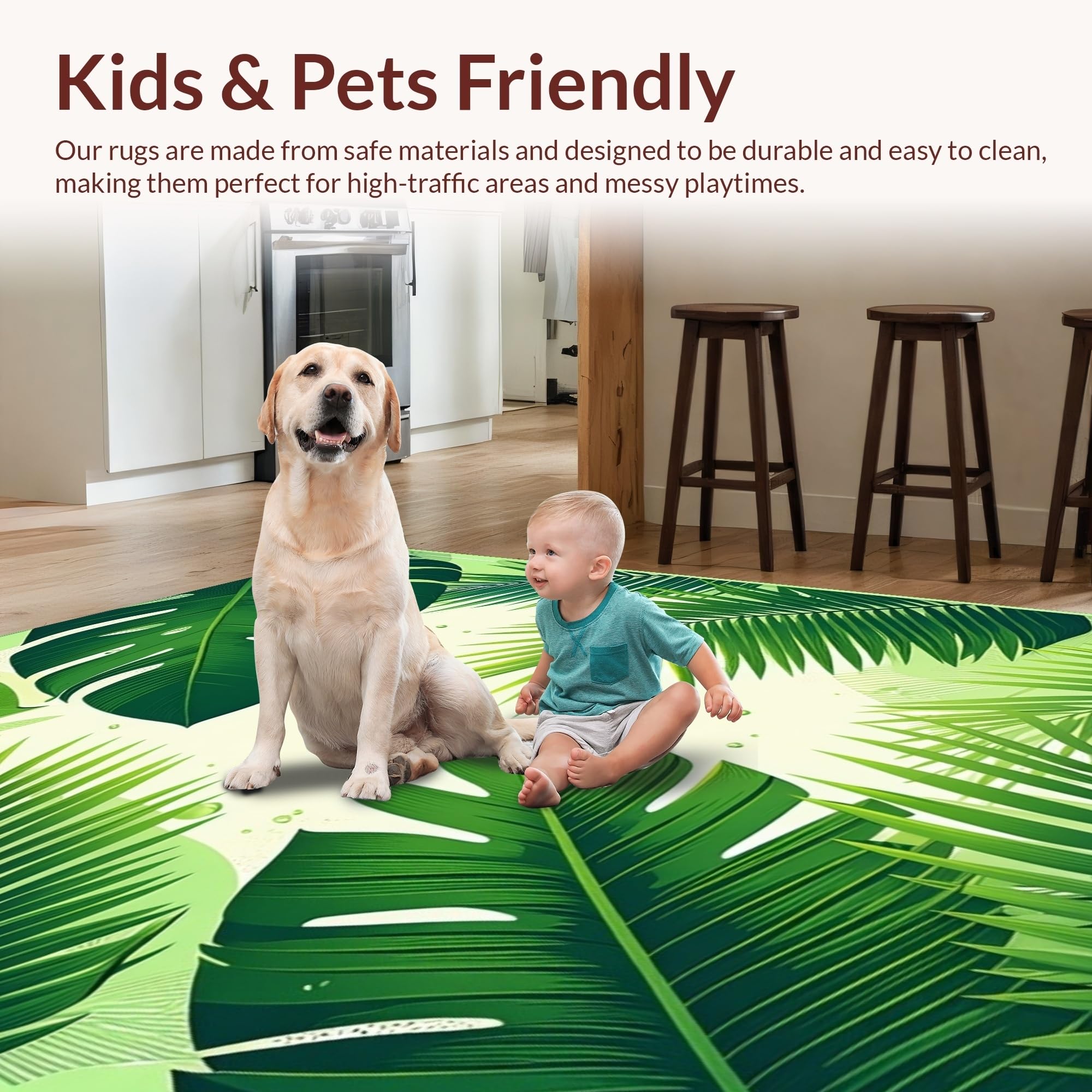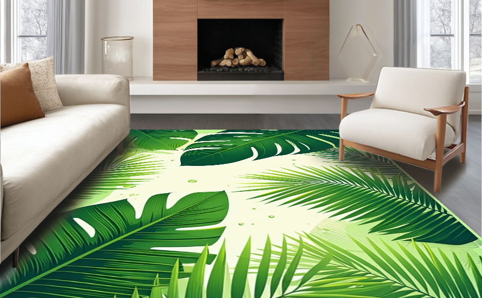 Ultra Soft Area Rug, Non Slip, Stain Resistant, Washable Area Rugs for Living Room, Bedroom, Contemporary Vibrant Foliage Theme(Green) Overview:
