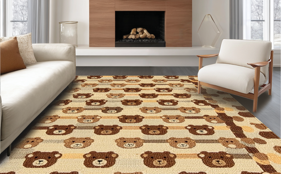 Ultra Soft Area Rug, Non Slip, Stain Resistant, Washable Area Rugs for Living Room, Bedroom, Contemporary Warm Brown Tones(Beige) Overview: