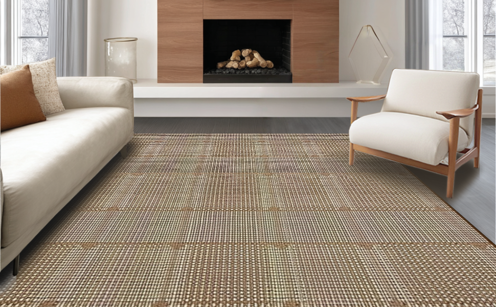 Ultra Soft Area Rug, Non Slip, Stain Resistant, Washable Area Rugs for Living Room, Bedroom, Contemporary Warm Neutral Grid Design(Beige) Overview: