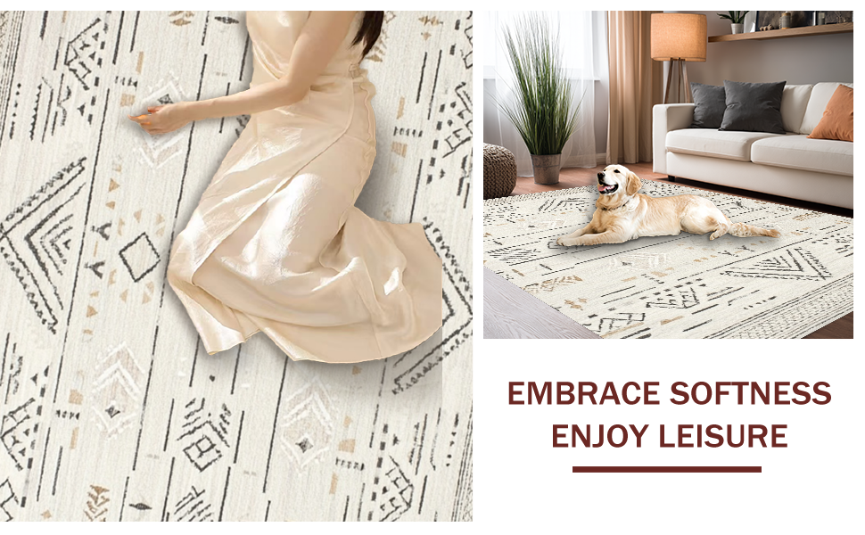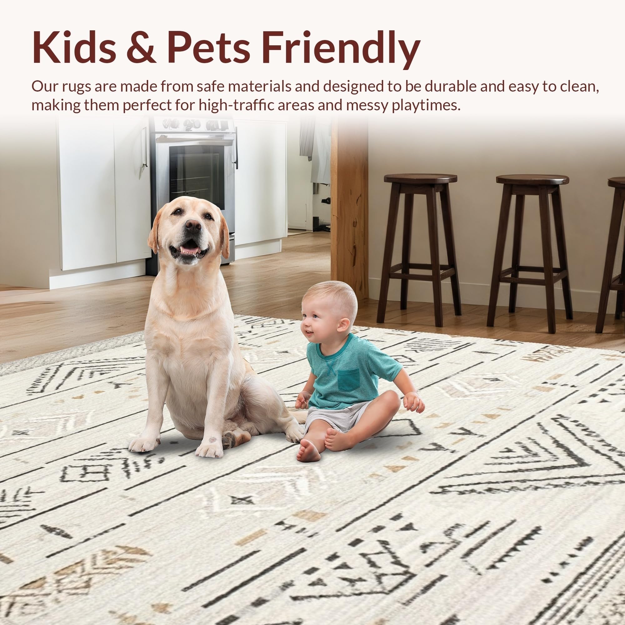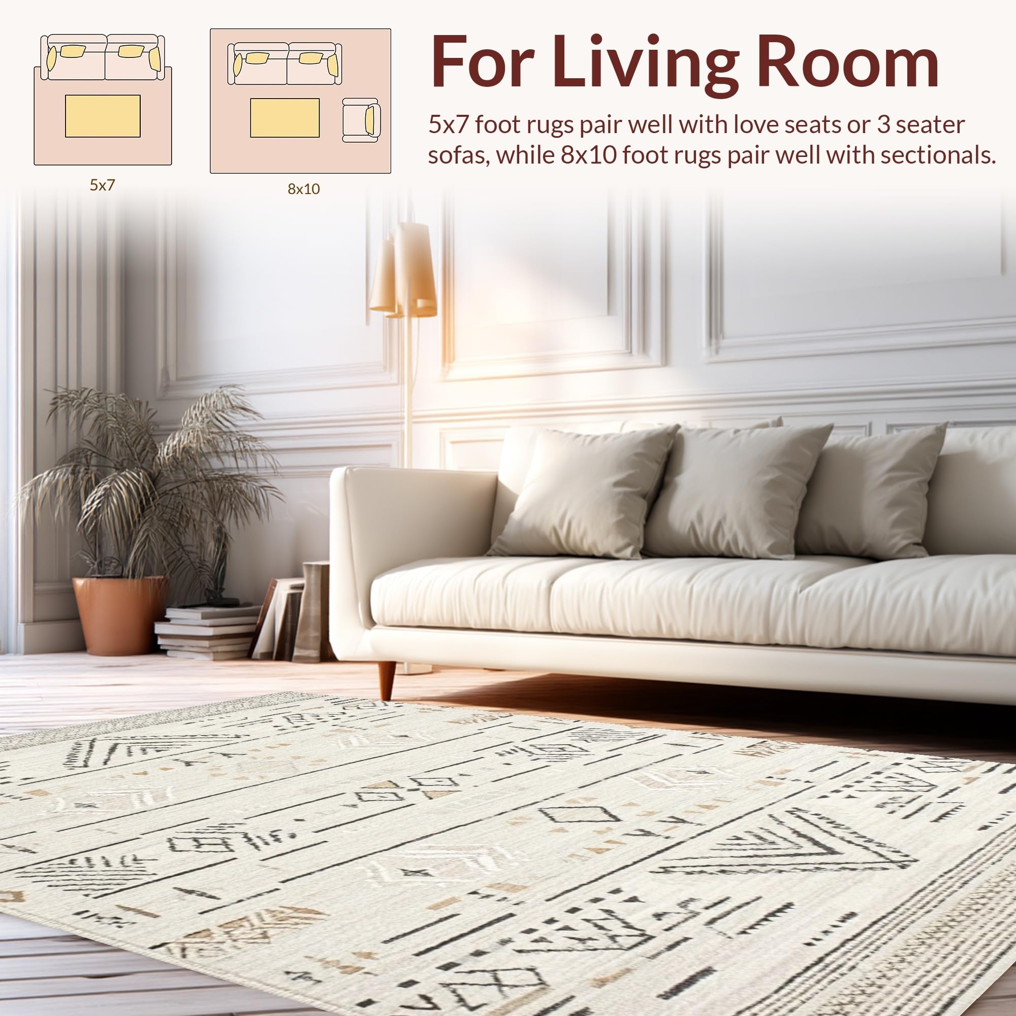 Ultra Soft Area Rug, Non Slip, Stain Resistant, Washable Area Rugs for Living Room, Bedroom, Contemporary Warm Neutral Palette(Beige) Overview:
