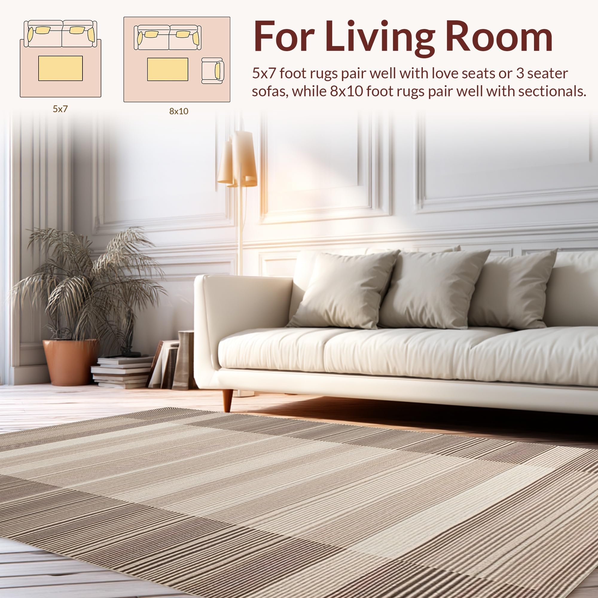 Ultra Soft Area Rug, Non Slip, Stain Resistant, Washable Area Rugs for Living Room, Bedroom, Contemporary Warm Neutrals Aesthetic(Beige) Overview: