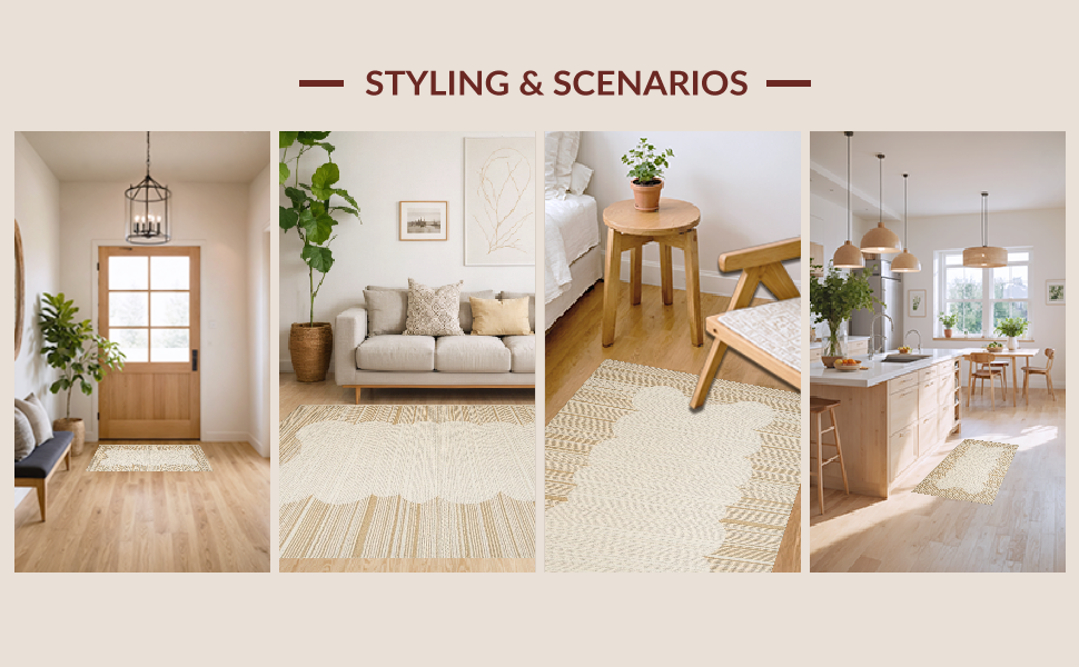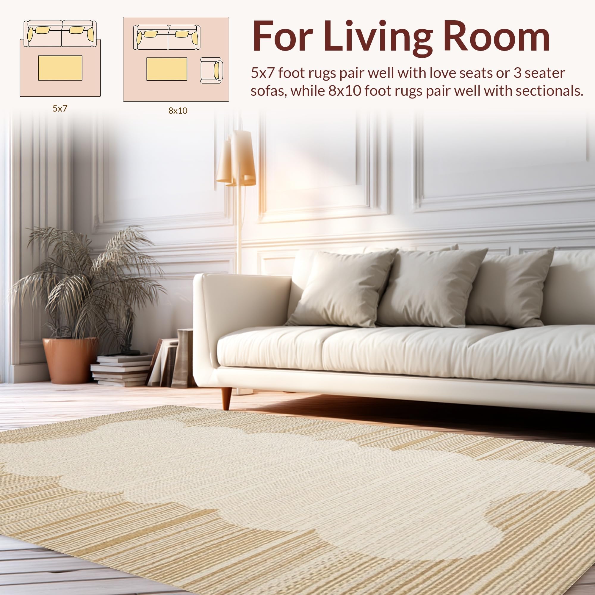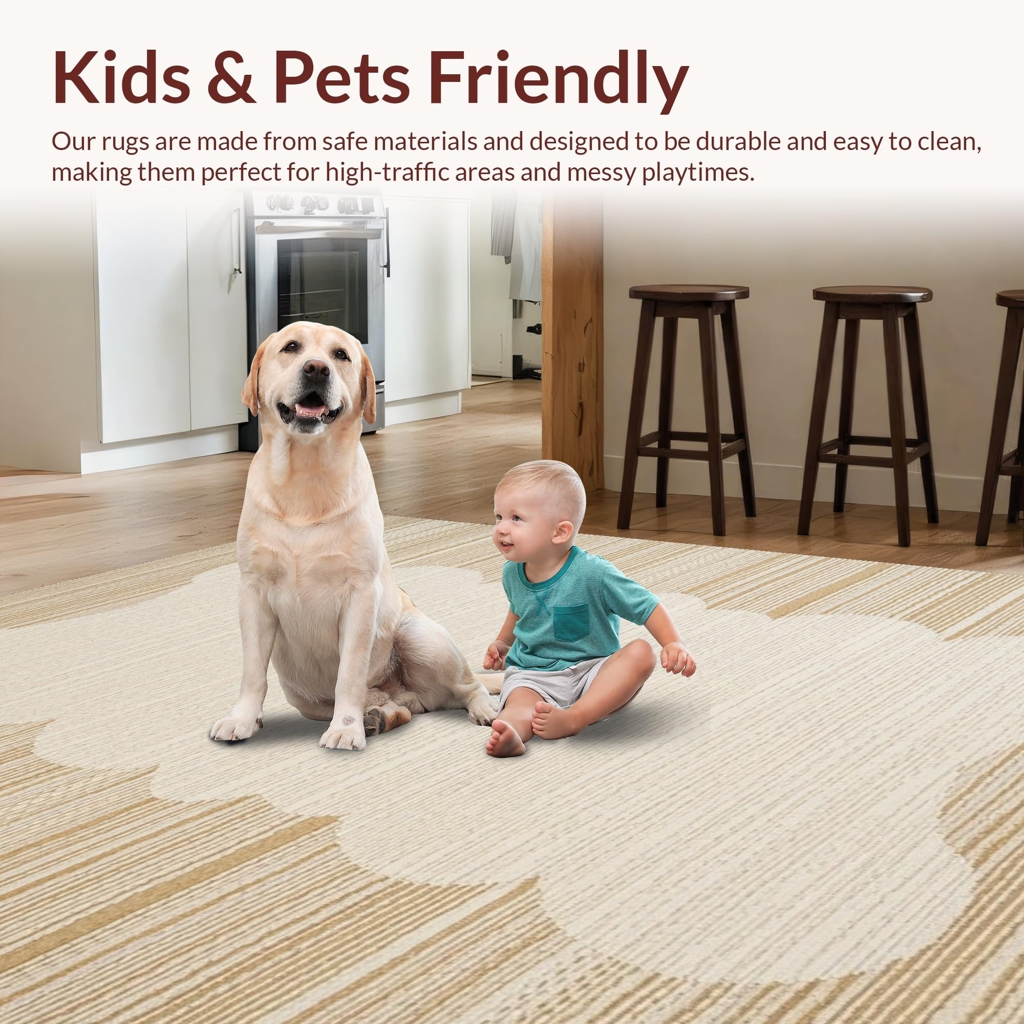 Ultra Soft Area Rug, Non Slip, Stain Resistant, Washable Area Rugs for Living Room, Bedroom, Contemporary Warm Tan Embellishment(Beige) Overview: