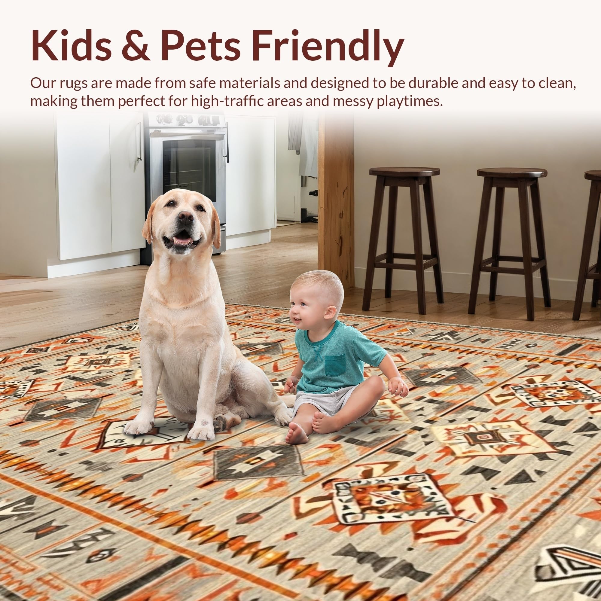 Ultra Soft Area Rug, Non Slip, Stain Resistant, Washable Area Rugs for Living Room, Bedroom, Contemporary Warm Toned Trellis Style(Gray) Overview: