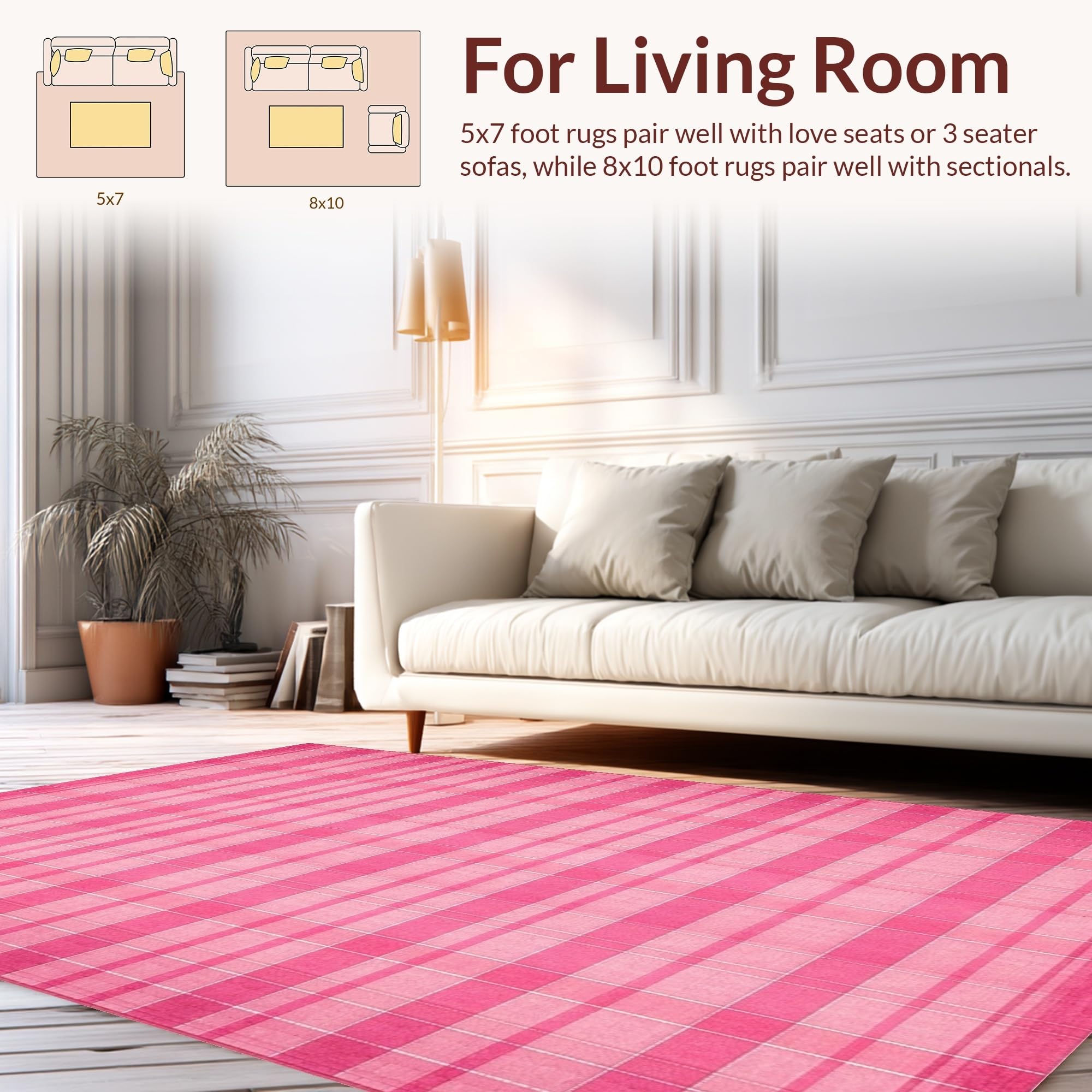 Ultra Soft Area Rug, Non Slip, Stain Resistant, Washable Area Rugs for Living Room, Bedroom, Contemporary Whimsical Shaggy Motif(Pink) Overview: