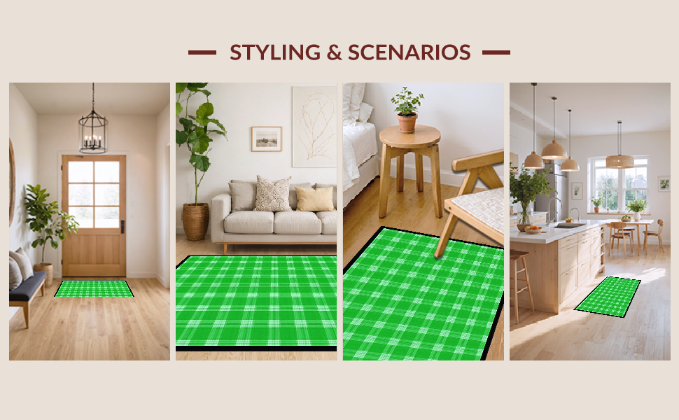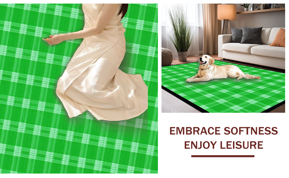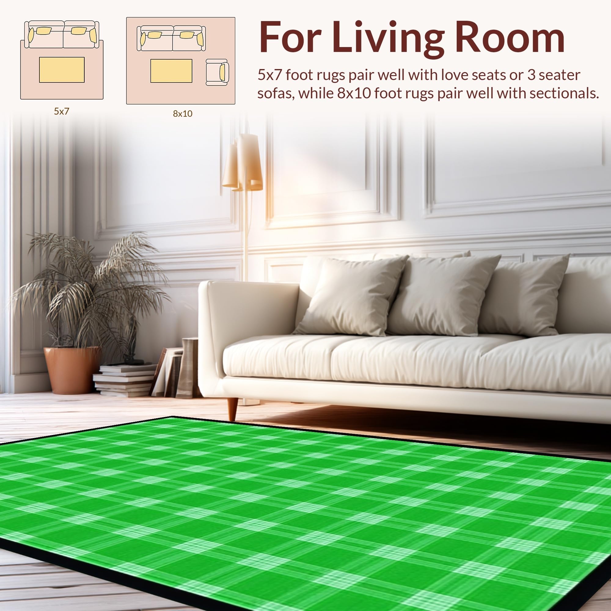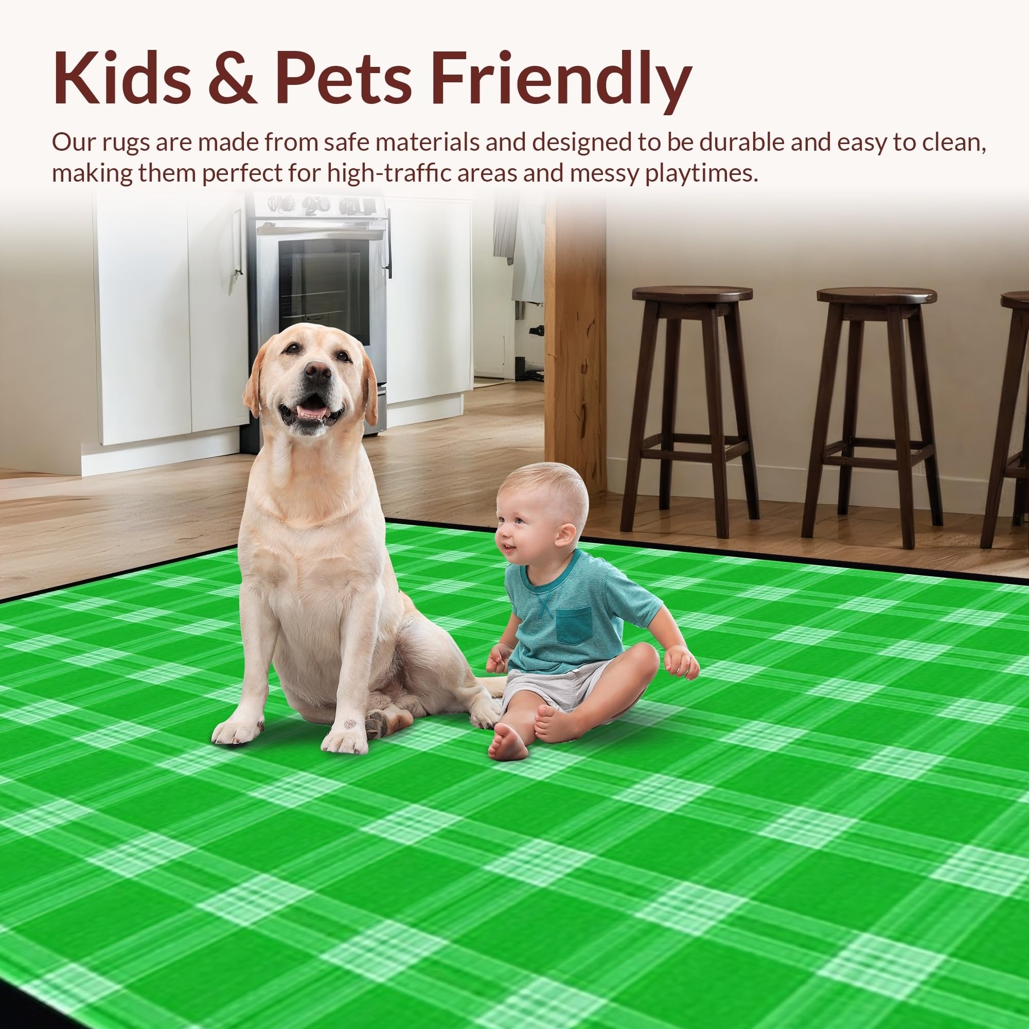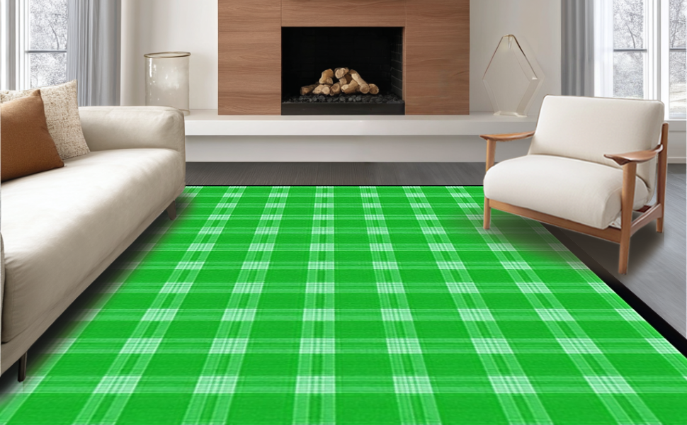 Ultra Soft Area Rug, Non Slip, Stain Resistant, Washable Area Rugs for Living Room, Bedroom, Contemporary White Checkerboard Aesthetic(Green) Overview: