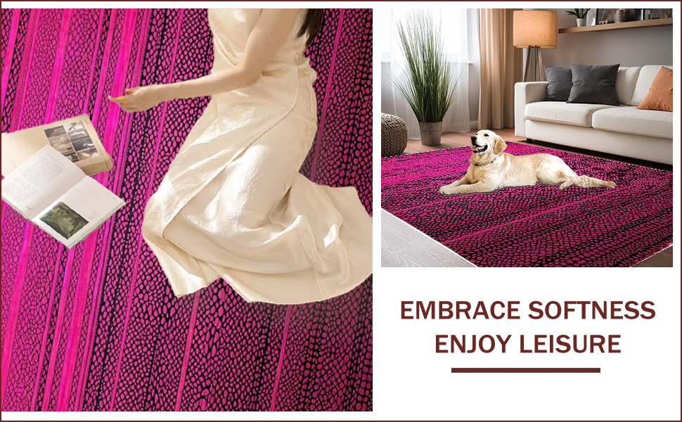 Ultra Soft Area Rug, Non Slip, Stain Resistant, Washable Area Rugs for Living Room, Bedroom, Contemporary Wild Motif Aesthetic(Pink) Overview: