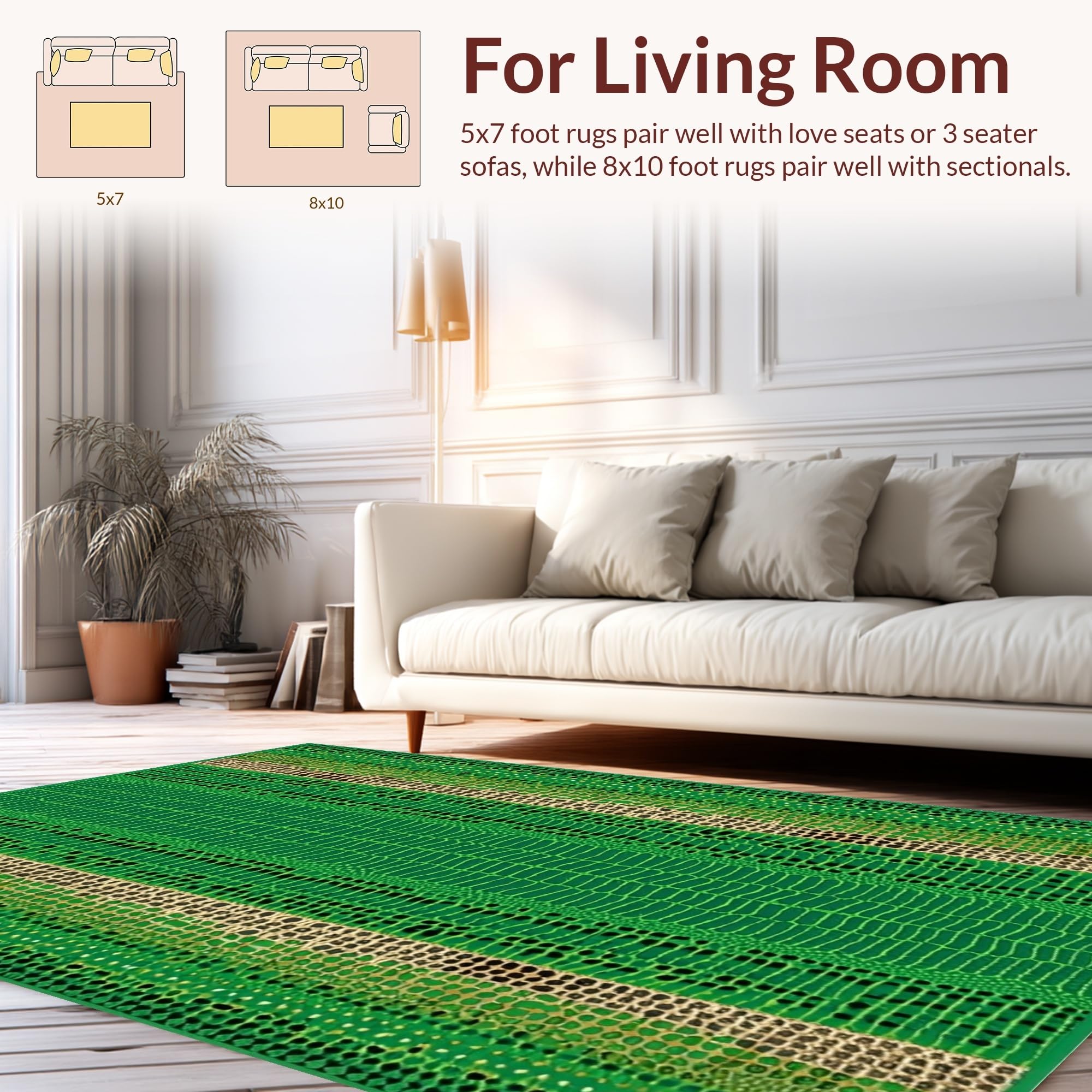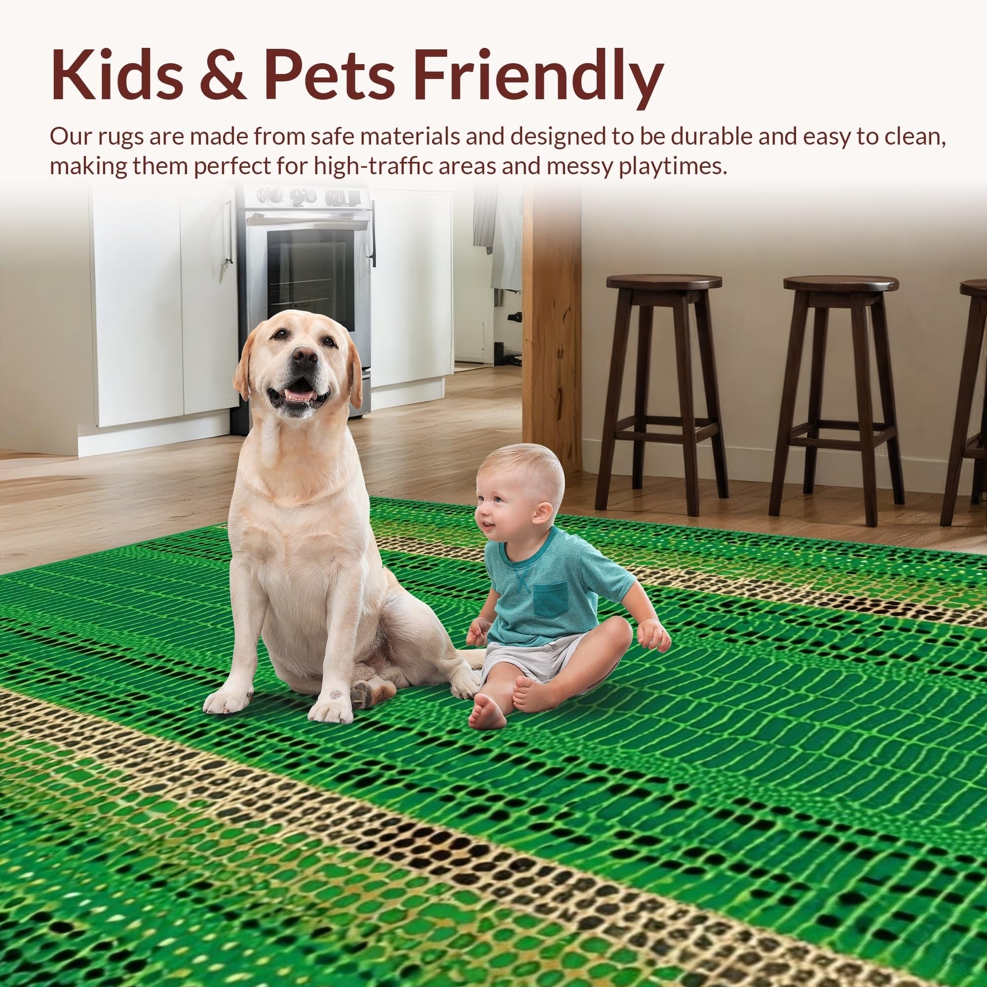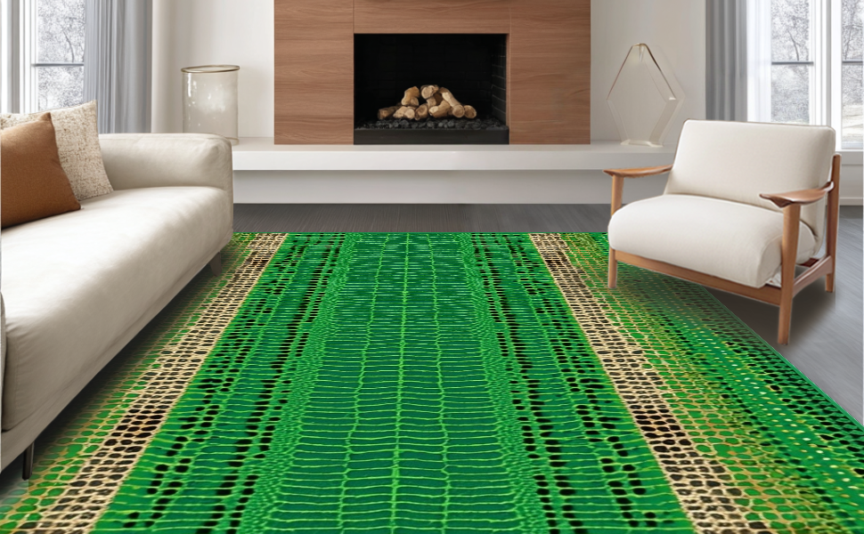 Ultra Soft Area Rug, Non Slip, Stain Resistant, Washable Area Rugs for Living Room, Bedroom, Contemporary Wildlife Pattern Showcase(Green) Overview: