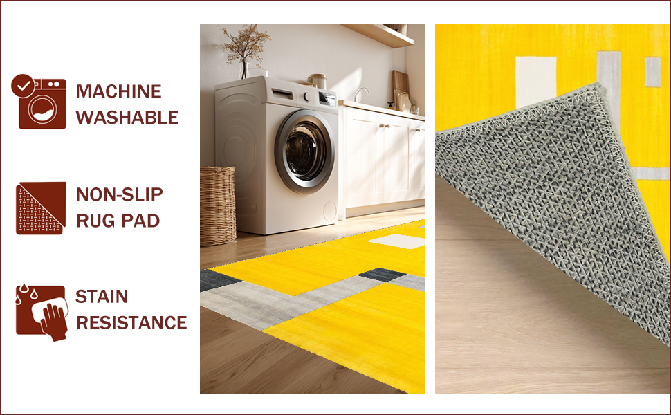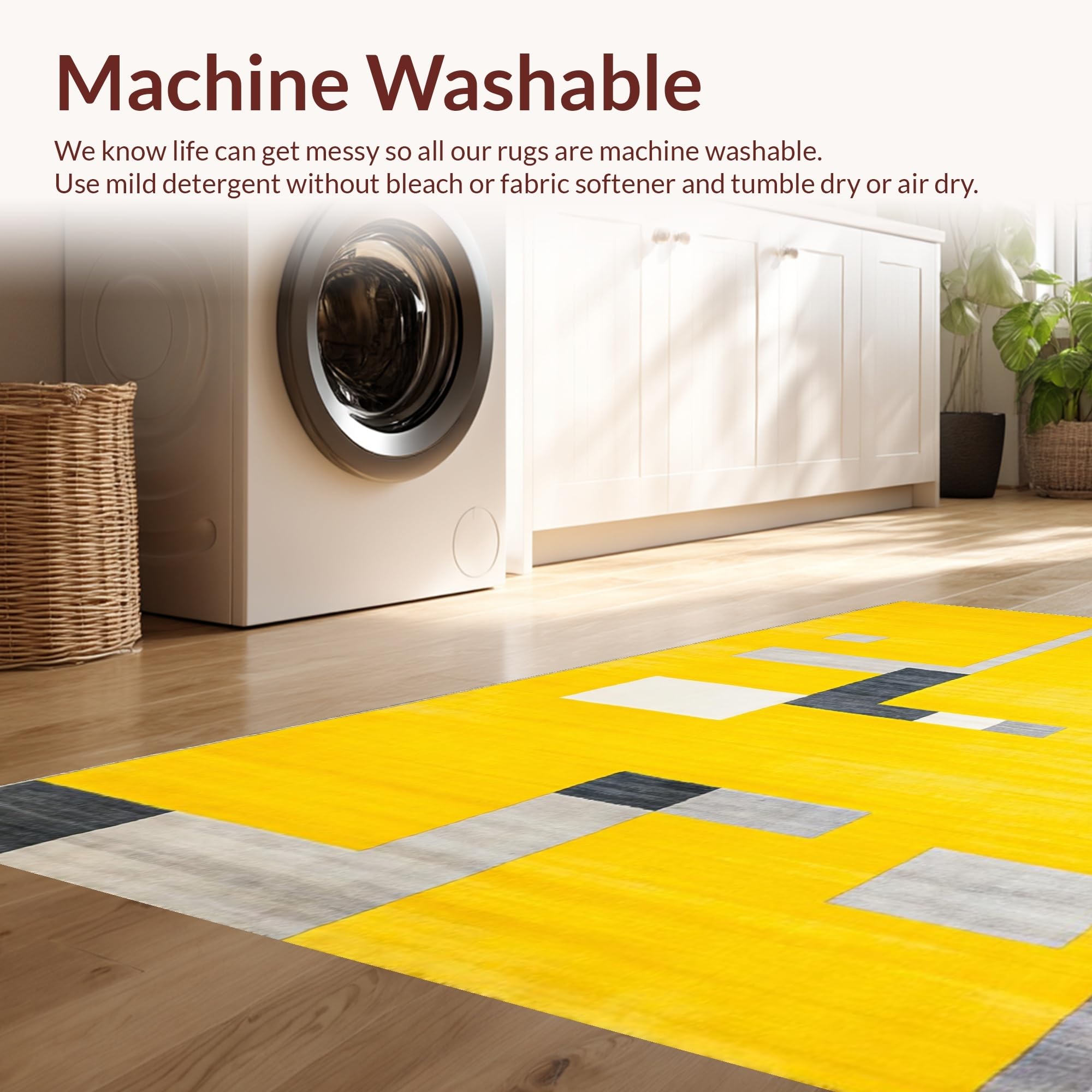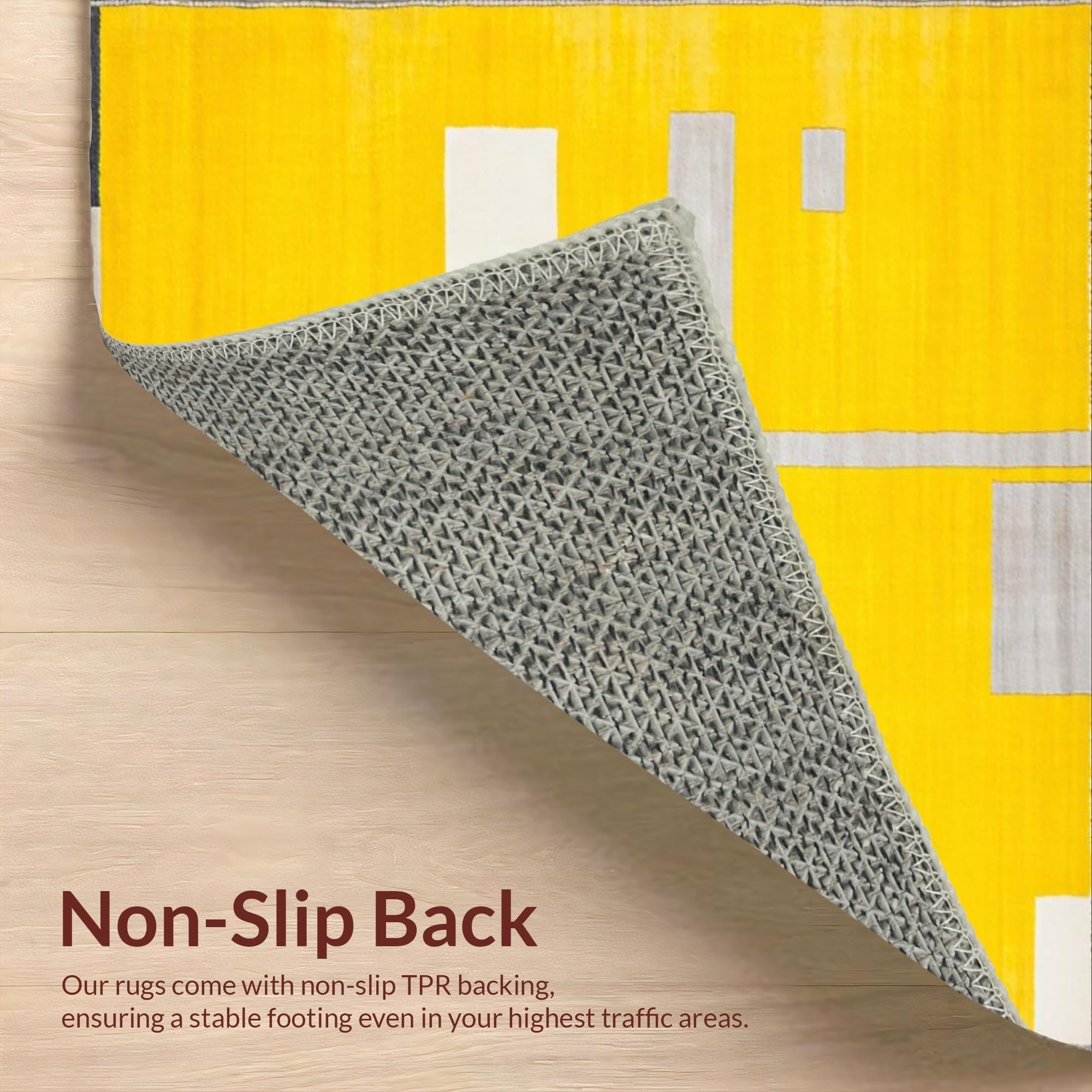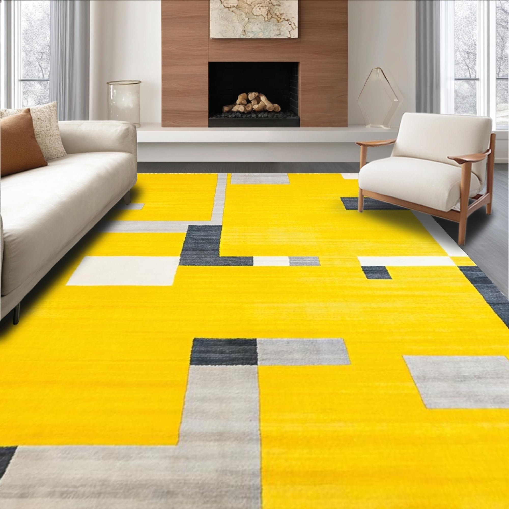 Ultra Soft Area Rug, Non Slip, Stain Resistant, Washable Area Rugs for Living Room, Bedroom, Contemporary Yellow Boxed Design(Yellow) Overview: