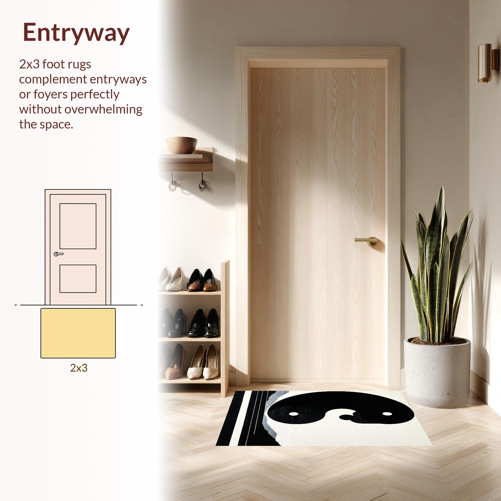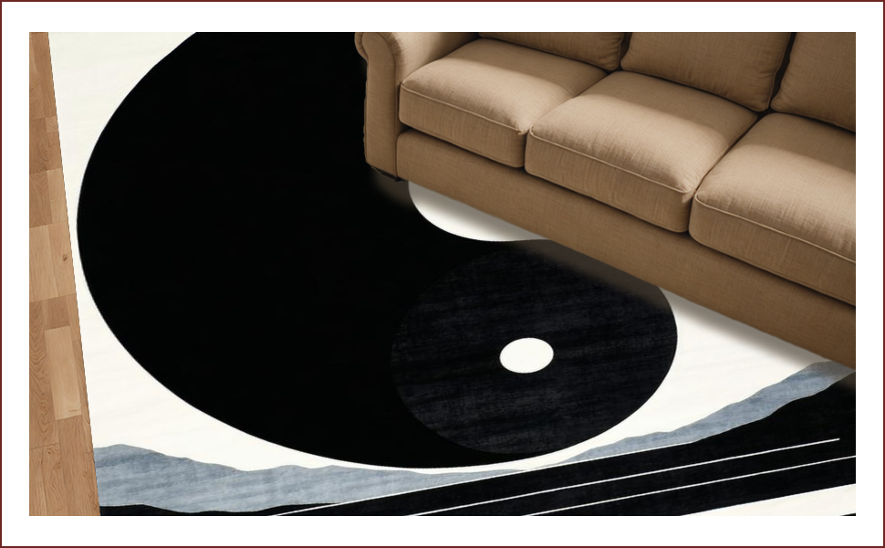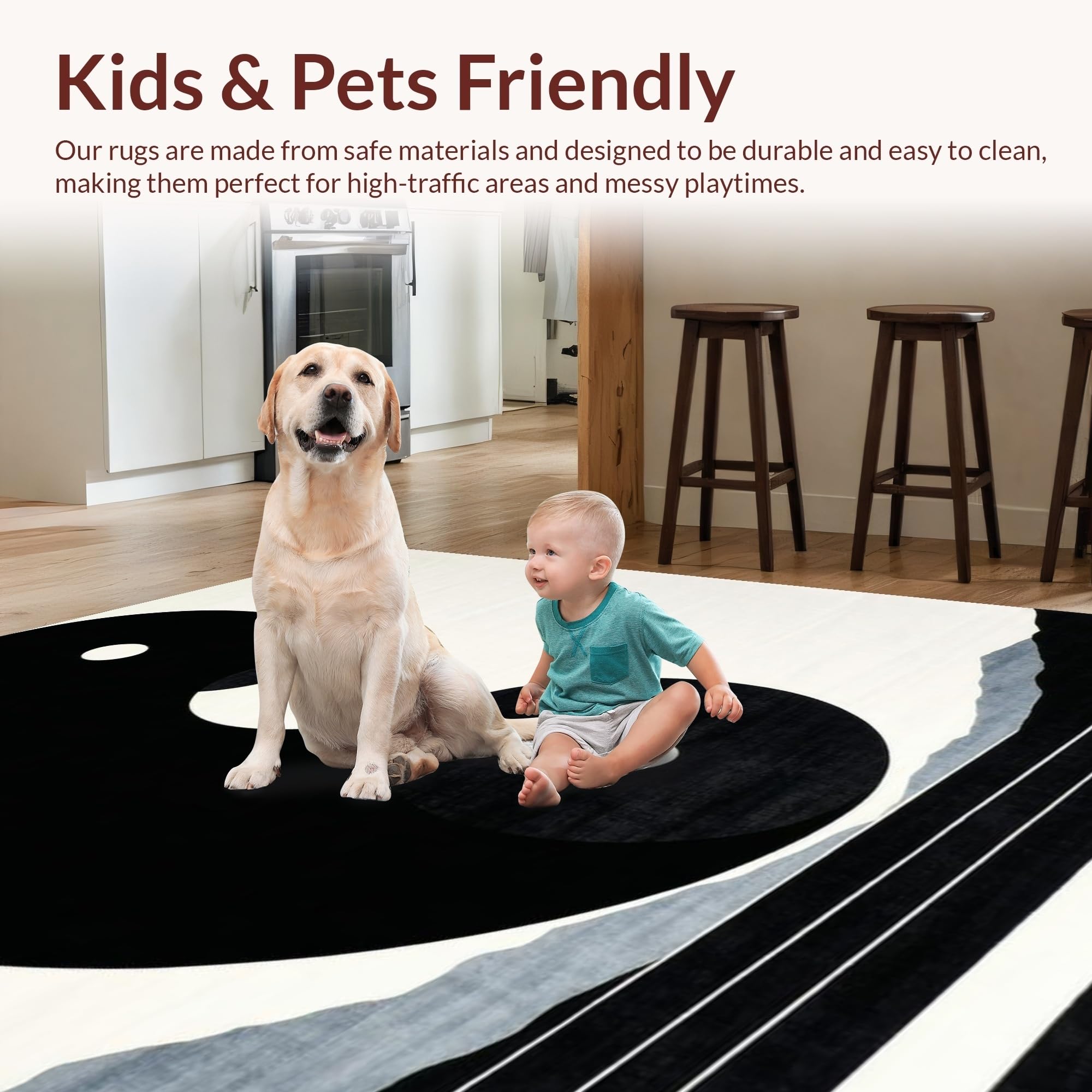 Ultra Soft Area Rug, Non Slip, Stain Resistant, Washable Area Rugs for Living Room, Bedroom, Contemporary Yin Yang Motif Accent(Black) Overview: