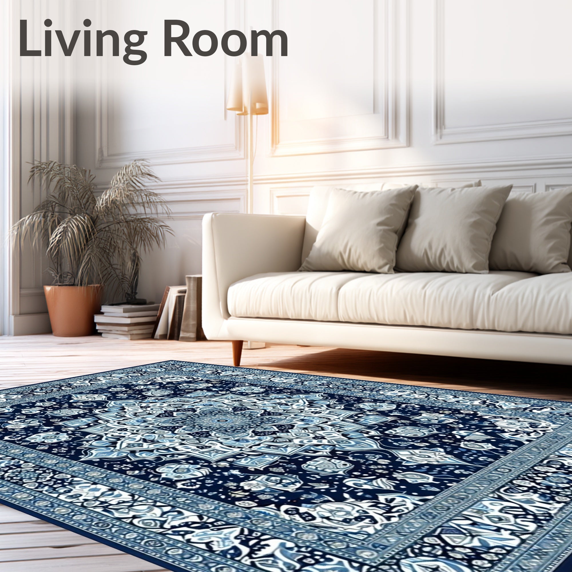 Ultra Soft Area Rug, Non Slip, Stain Resistant, Washable Area Rugs for Living Room, Bedroom, Contemporary(Blue) Overview: