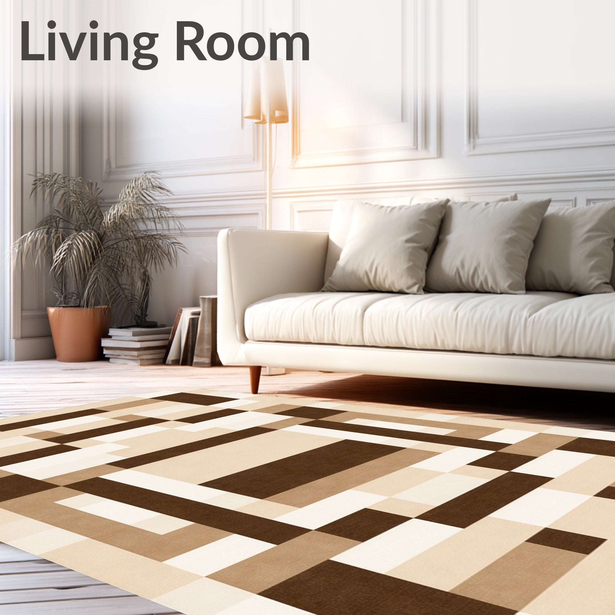 Ultra Soft Area Rug, Non Slip, Stain Resistant, Washable Area Rugs for Living Room, Bedroom, Contour Chequered Area Modern Brown Beige Palette(Beige) Overview: