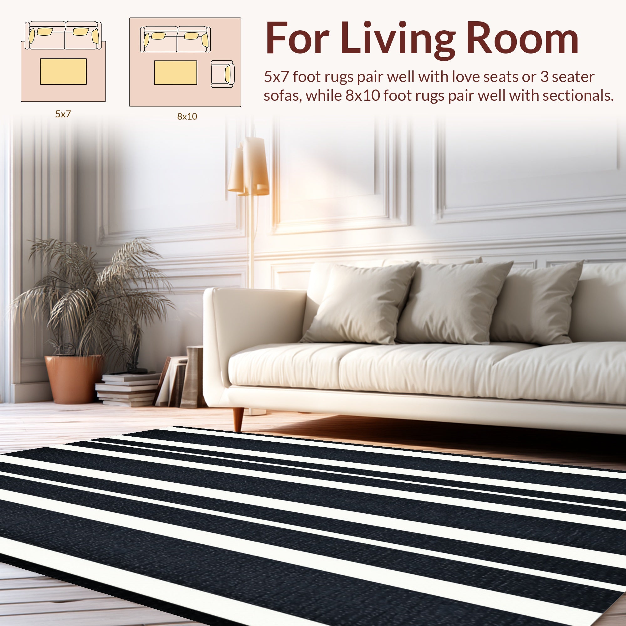 Ultra Soft Area Rug, Non Slip, Stain Resistant, Washable Area Rugs for Living Room, Bedroom, Contrasting stripe accent piece(Black) Overview: