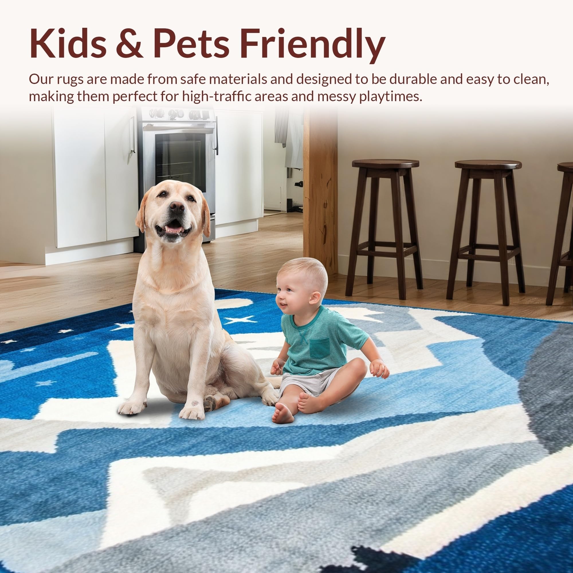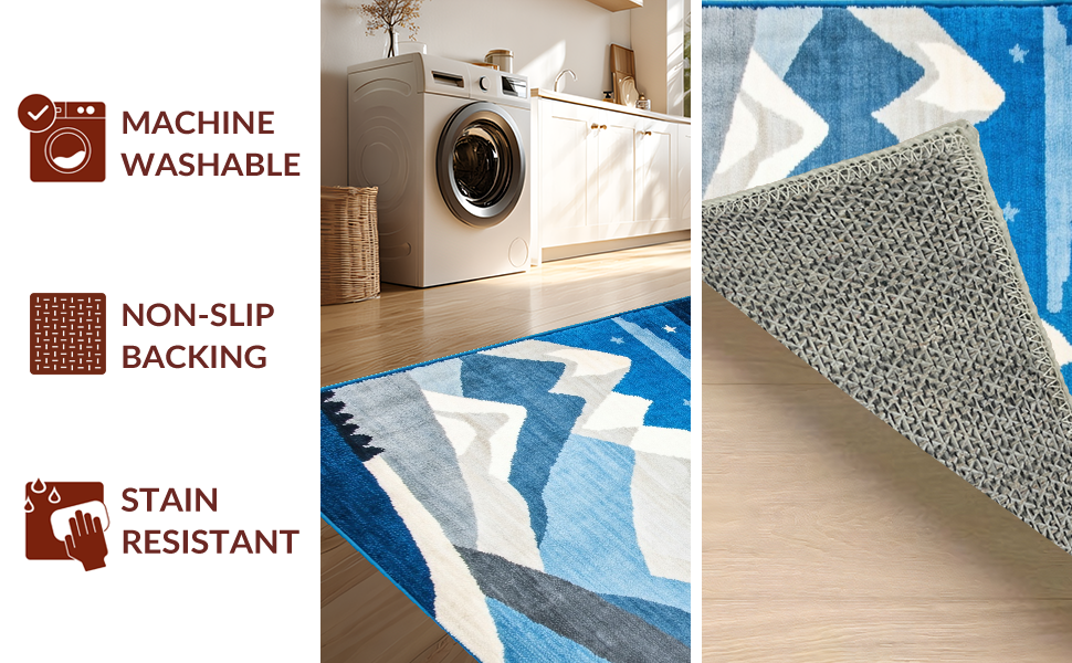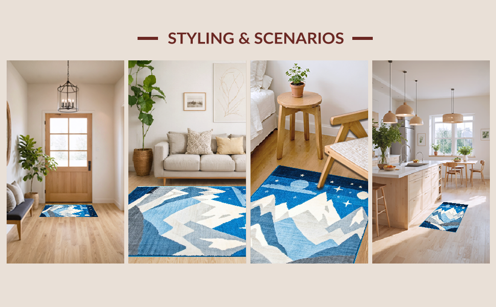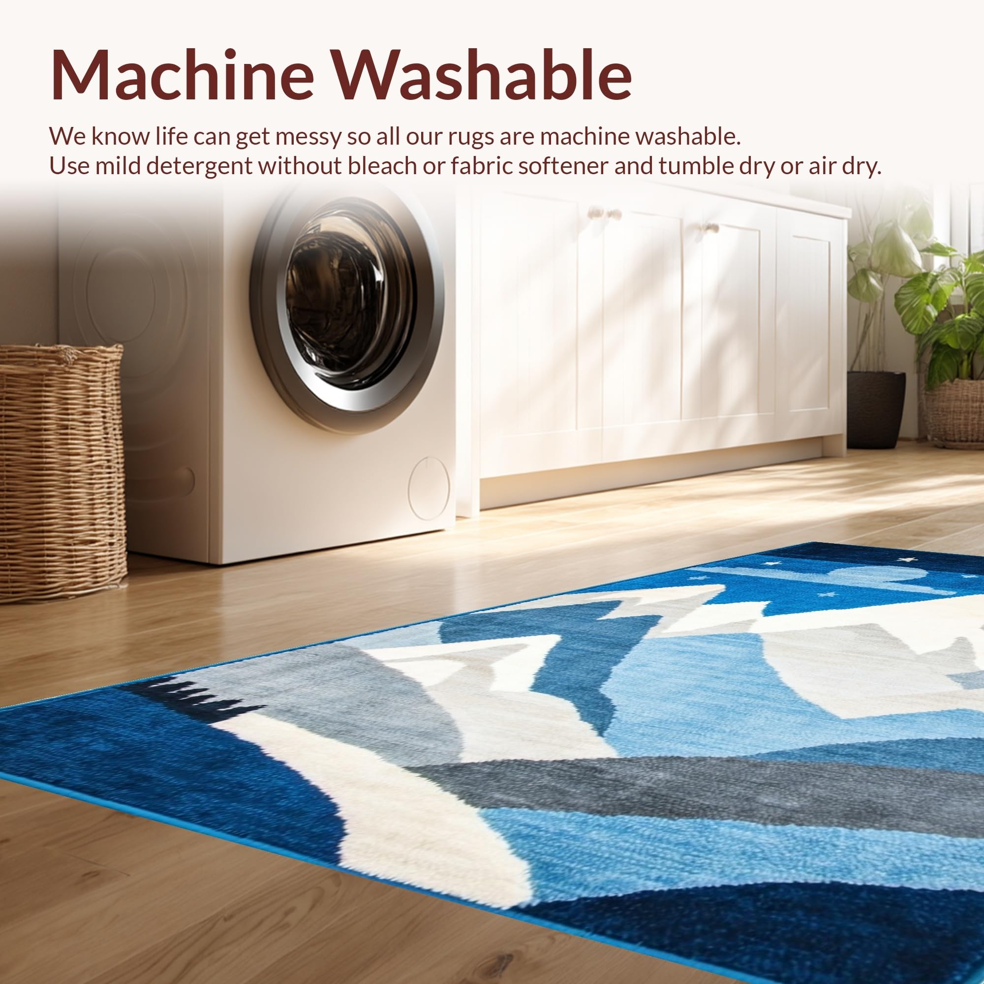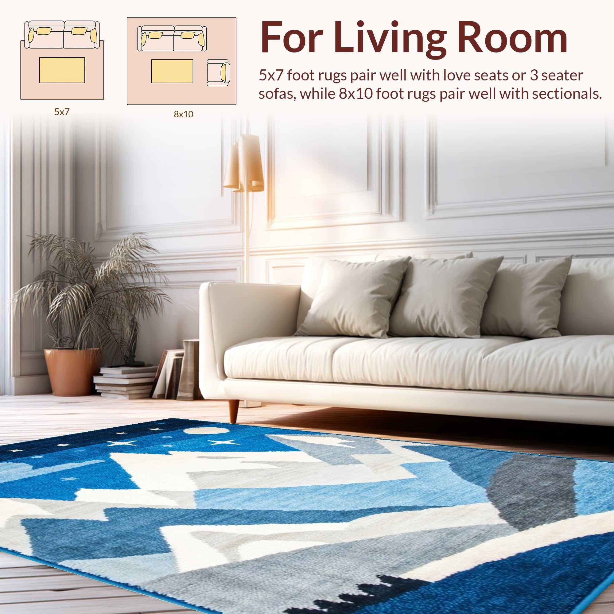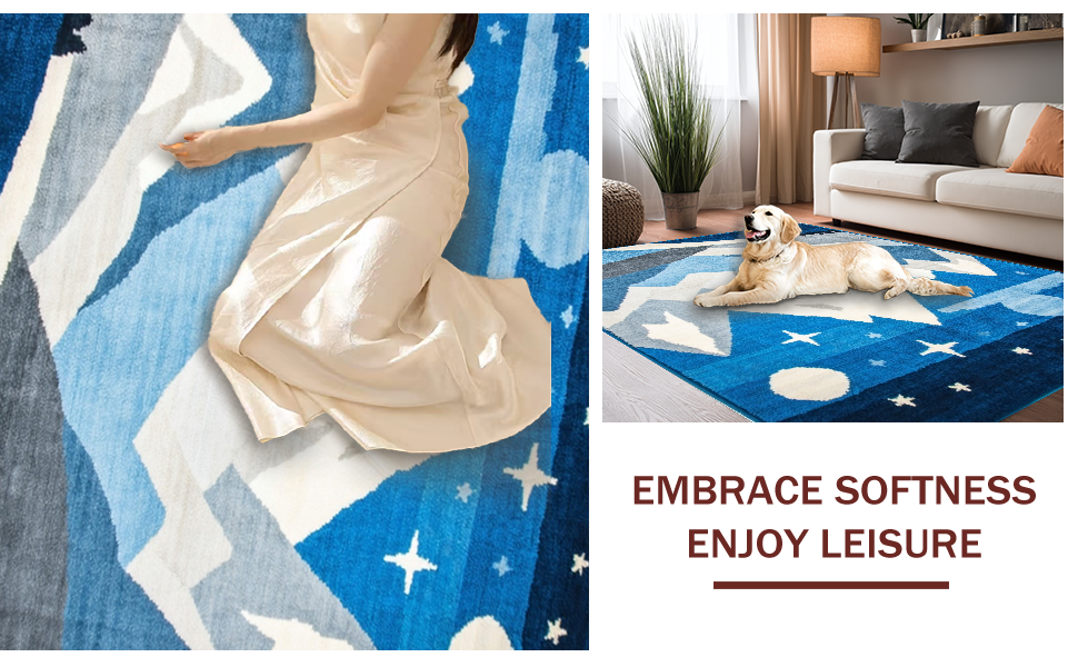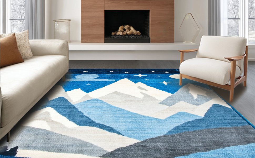 Ultra Soft Area Rug, Non Slip, Stain Resistant, Washable Area Rugs for Living Room, Bedroom, Cool Toned Cozy Atmosphere(Blue) Overview: